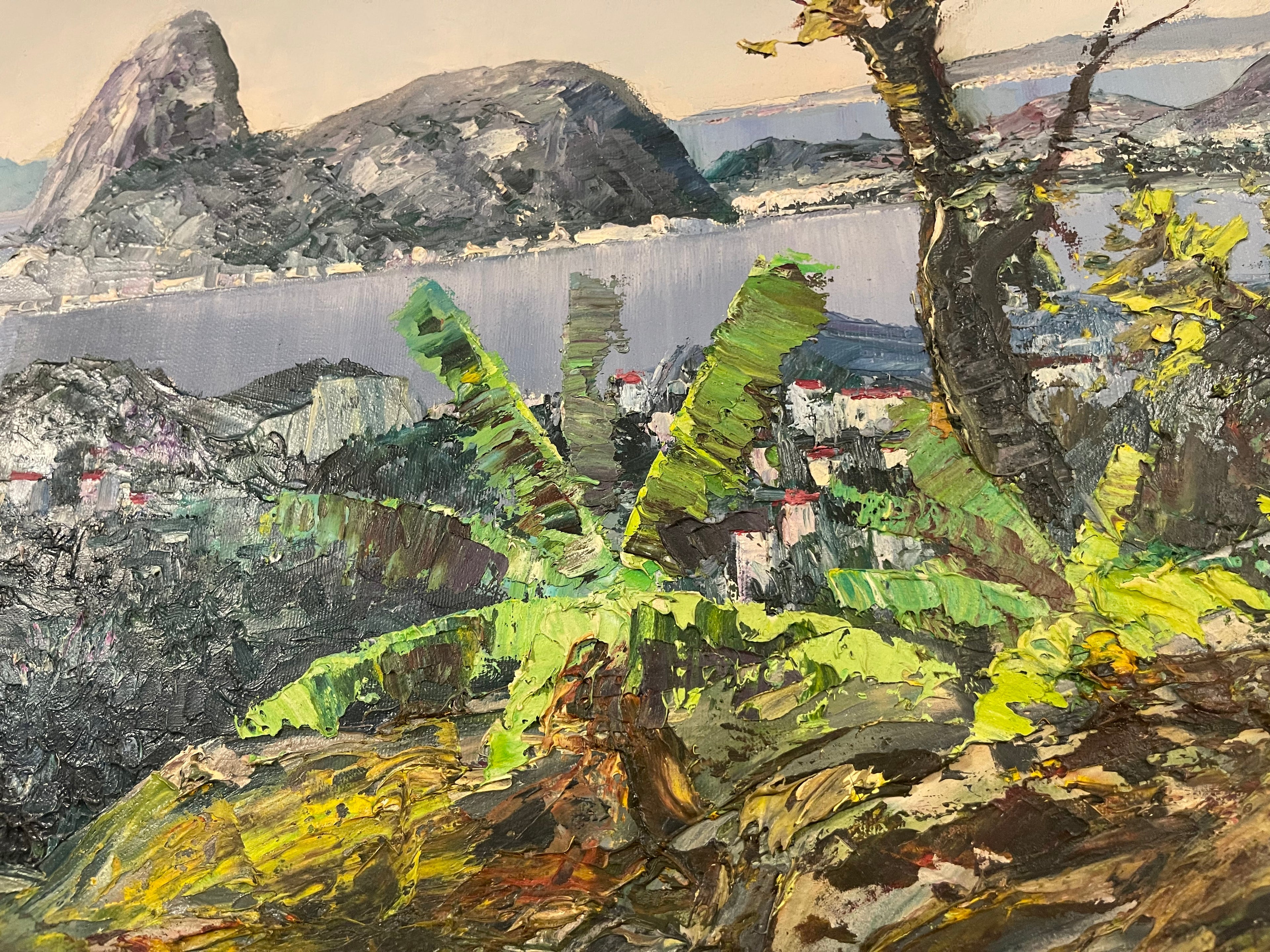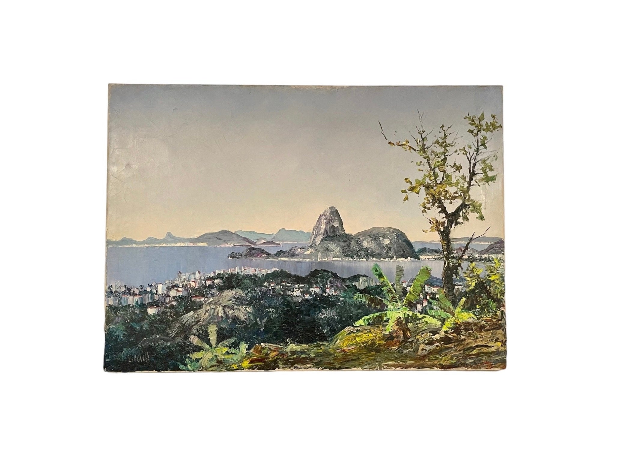 Alexander Lebedeff Oil on Canvas Overlooking the Harbor in Rio De Janiero, Brazil