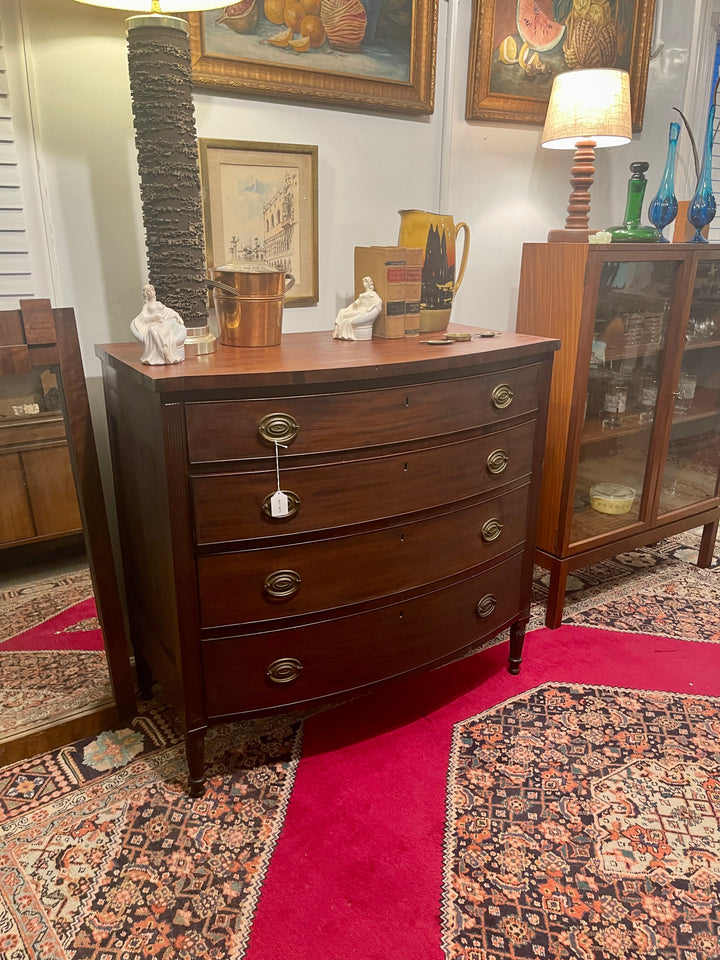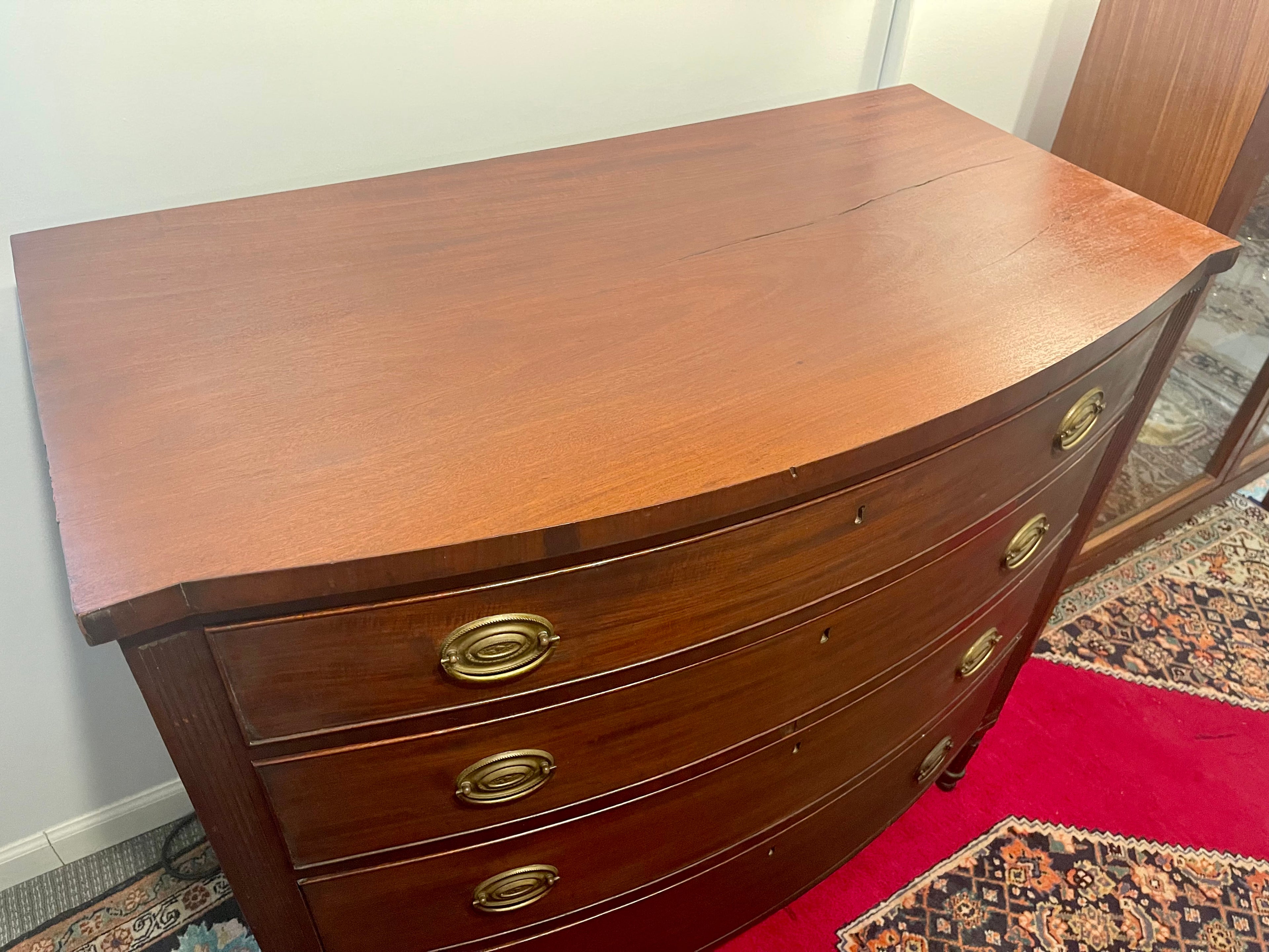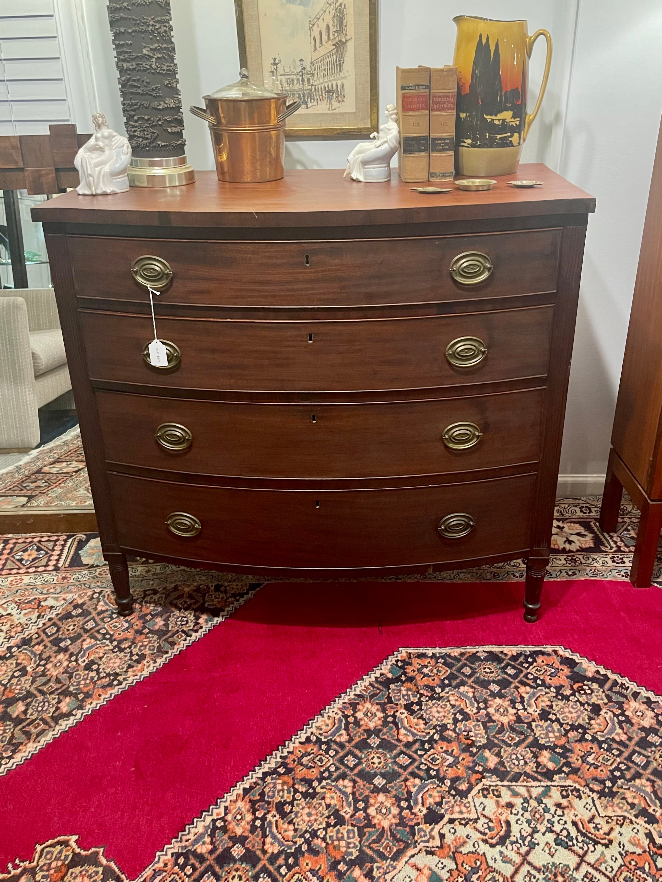 There is simply no replacing the richness and beauty of an authentic antique piece of mahogany furniture. This example, likely made in the late 19th century, is no exception. This chest of drawers is in the “American Empire” style, which drew inspiration from 17th and 18th century French design.