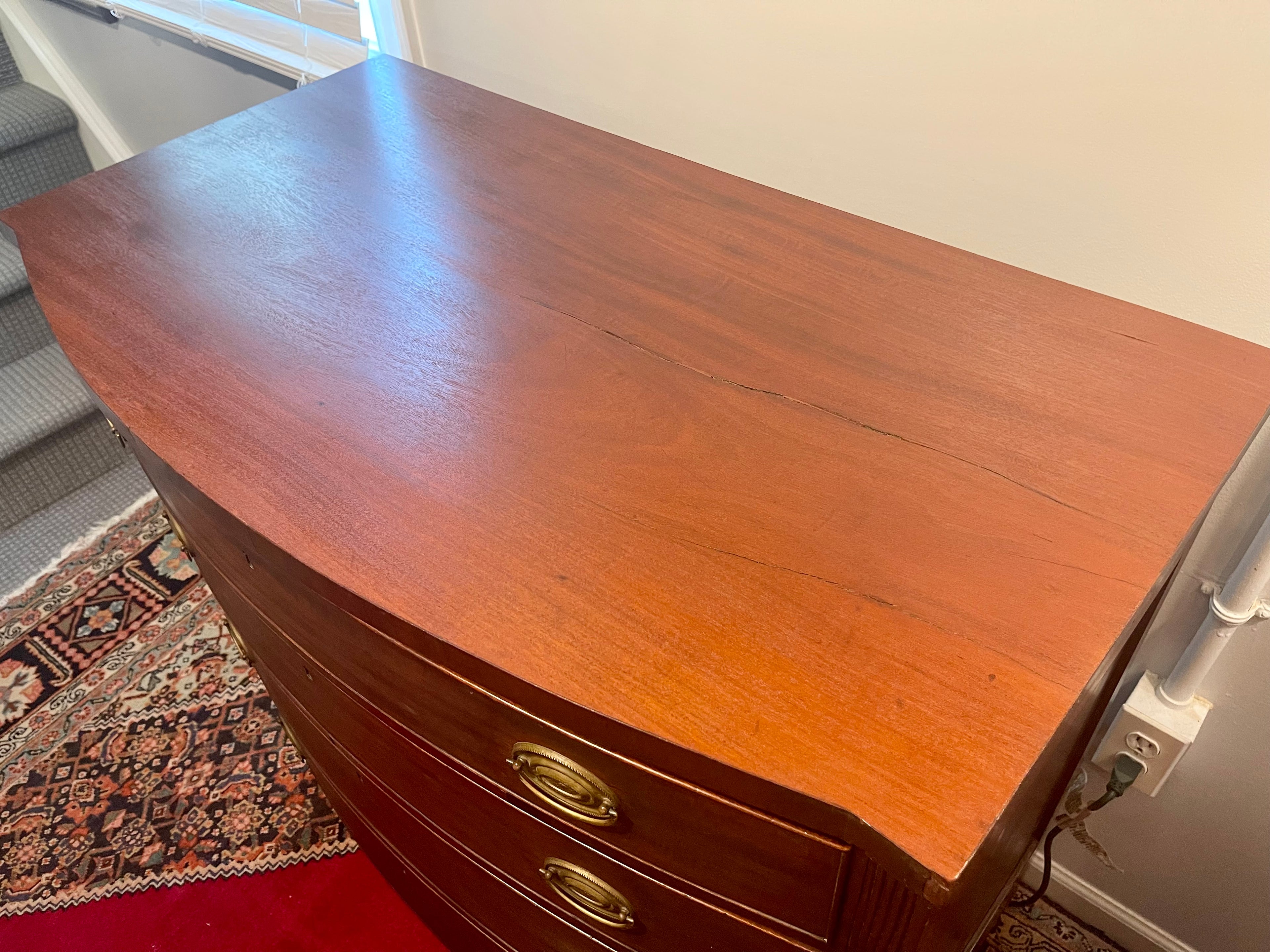 Four spacious drawers make this pieces equally functional as well as historical. Our team has carefully restored this piece and it is in excellent antique condition. The cracks along the top, rather than detracting from the piece, are an indication of the piece’s authenticity and age and do not affect the function whatsoever.