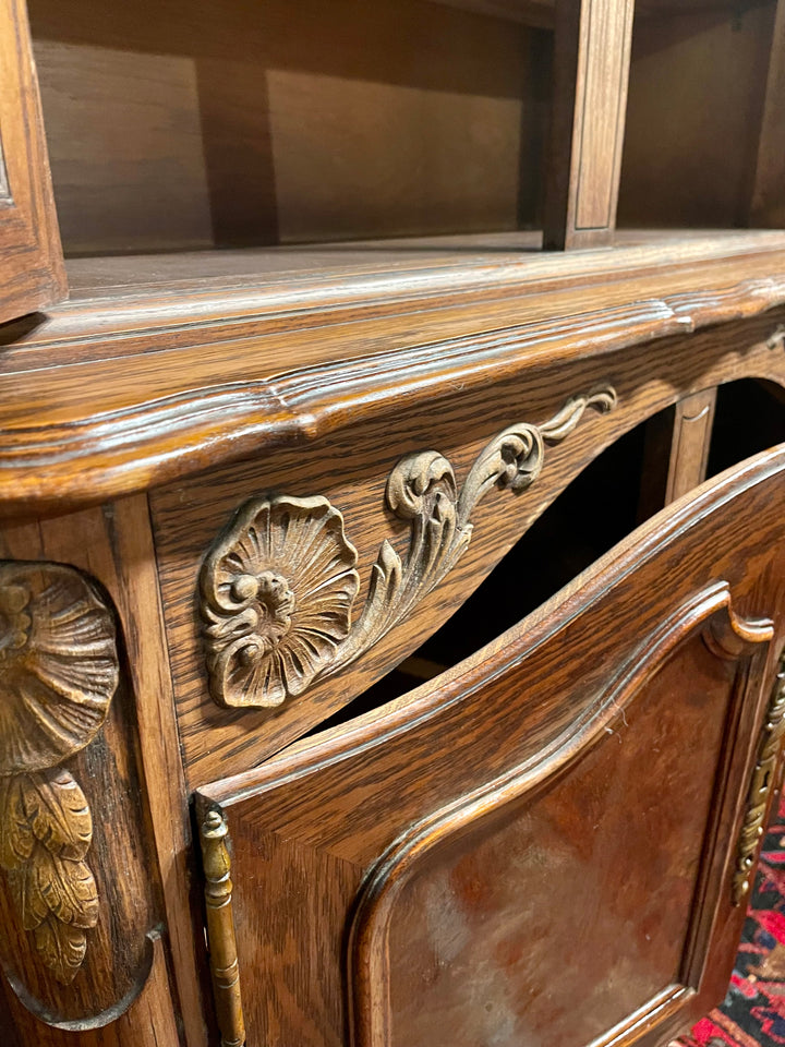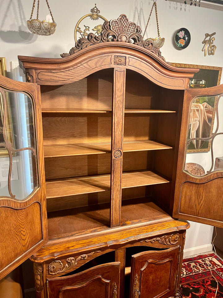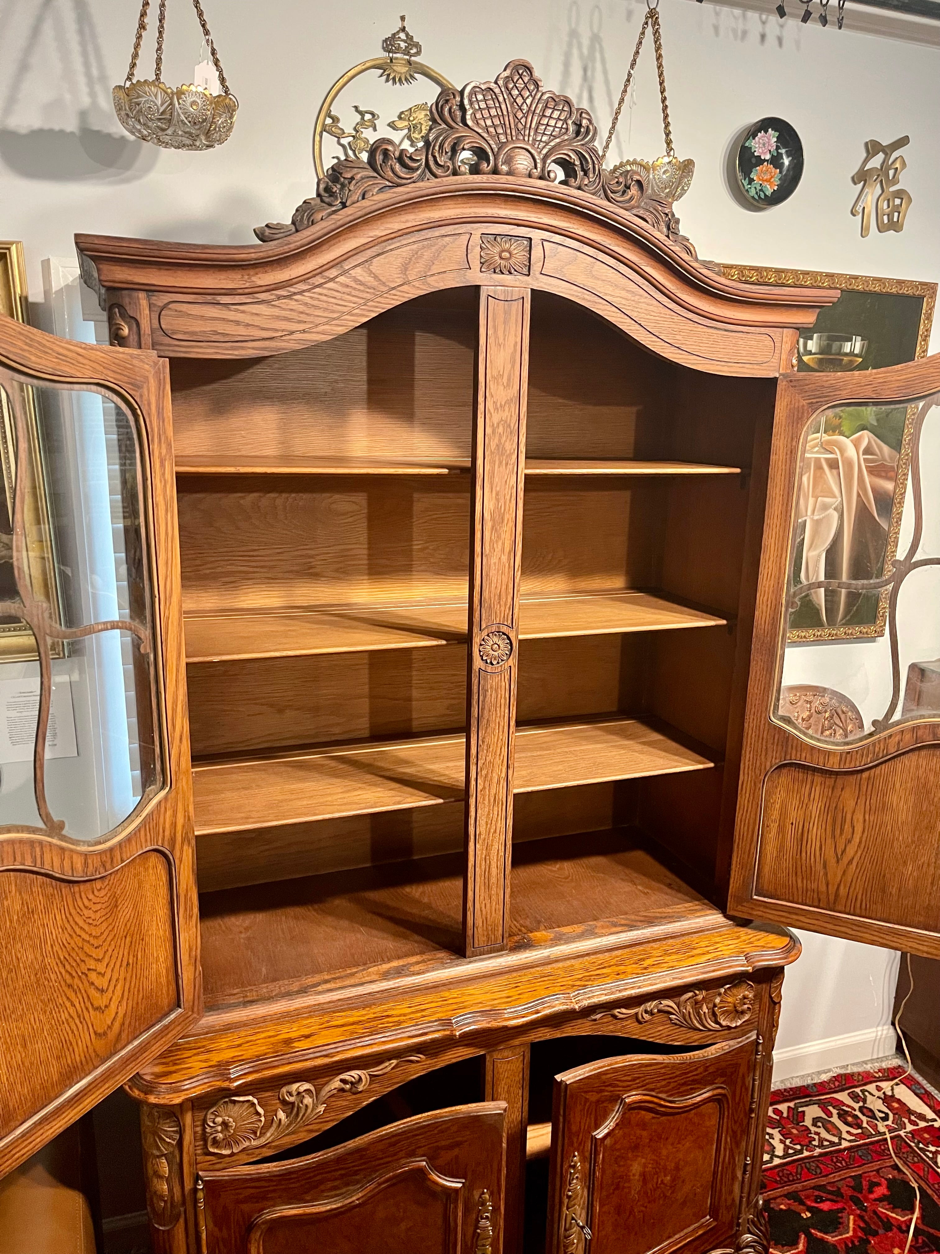 Antique French Oak Art Nouveau Style Glass Fronted Cabinet