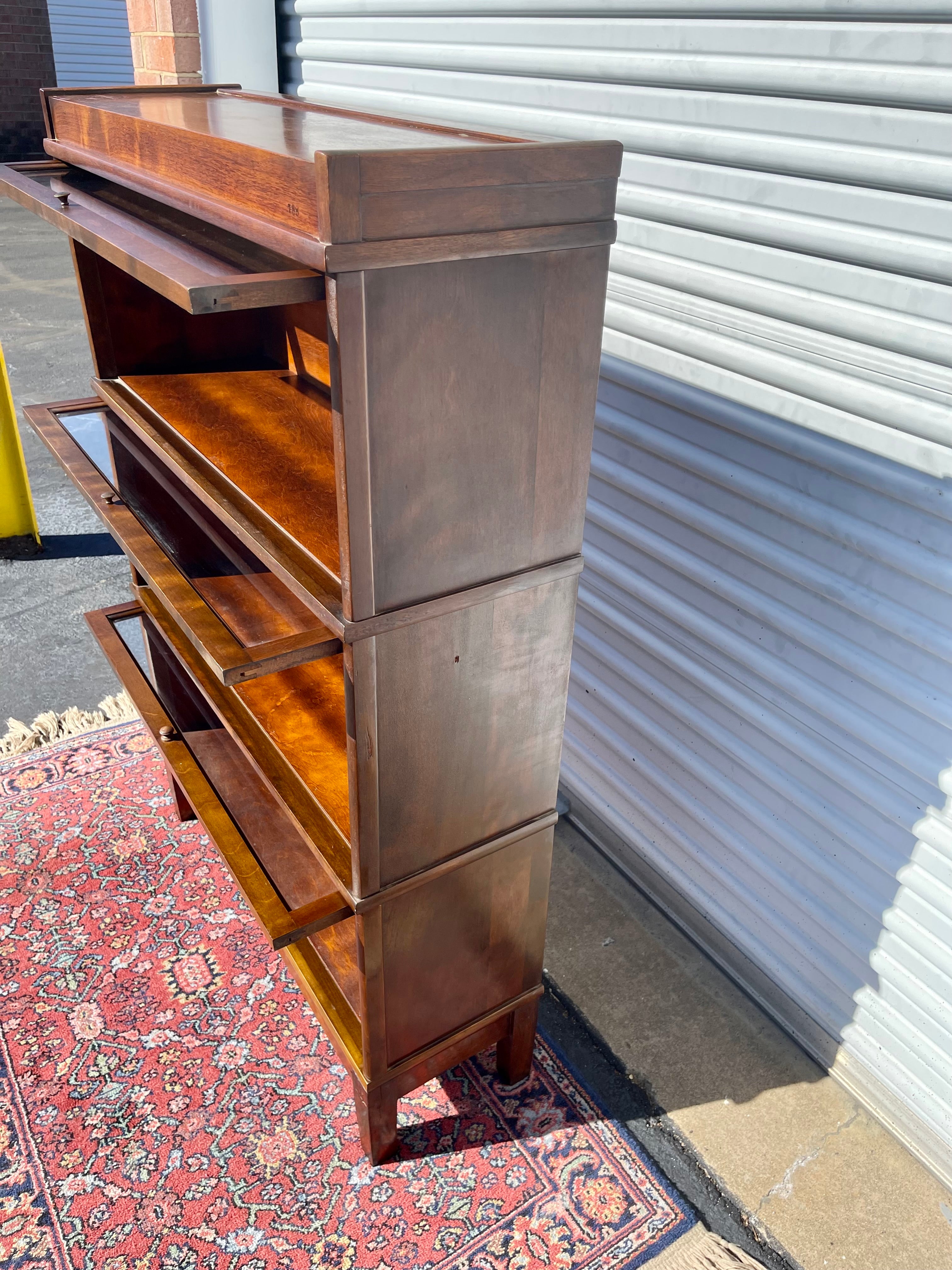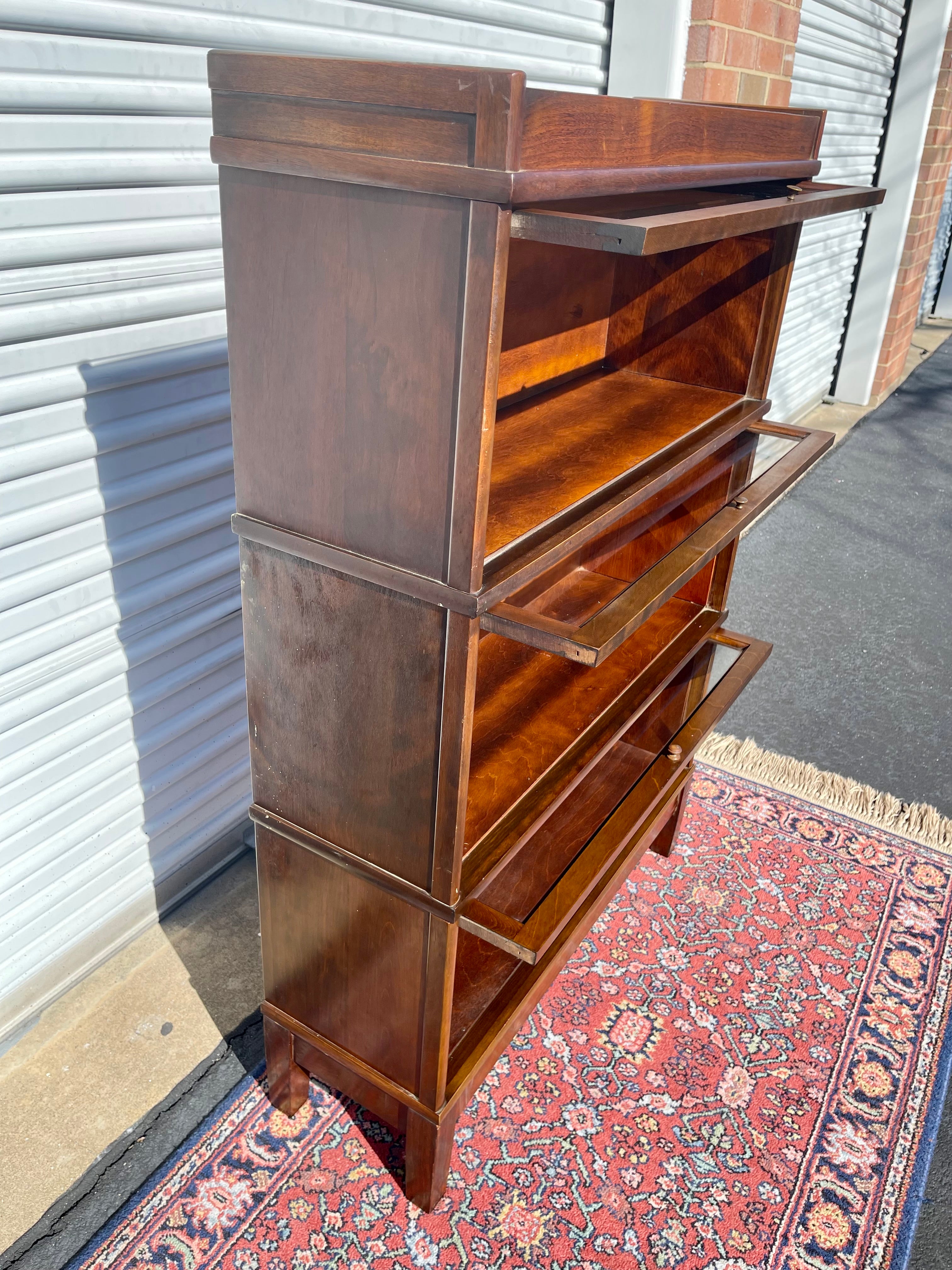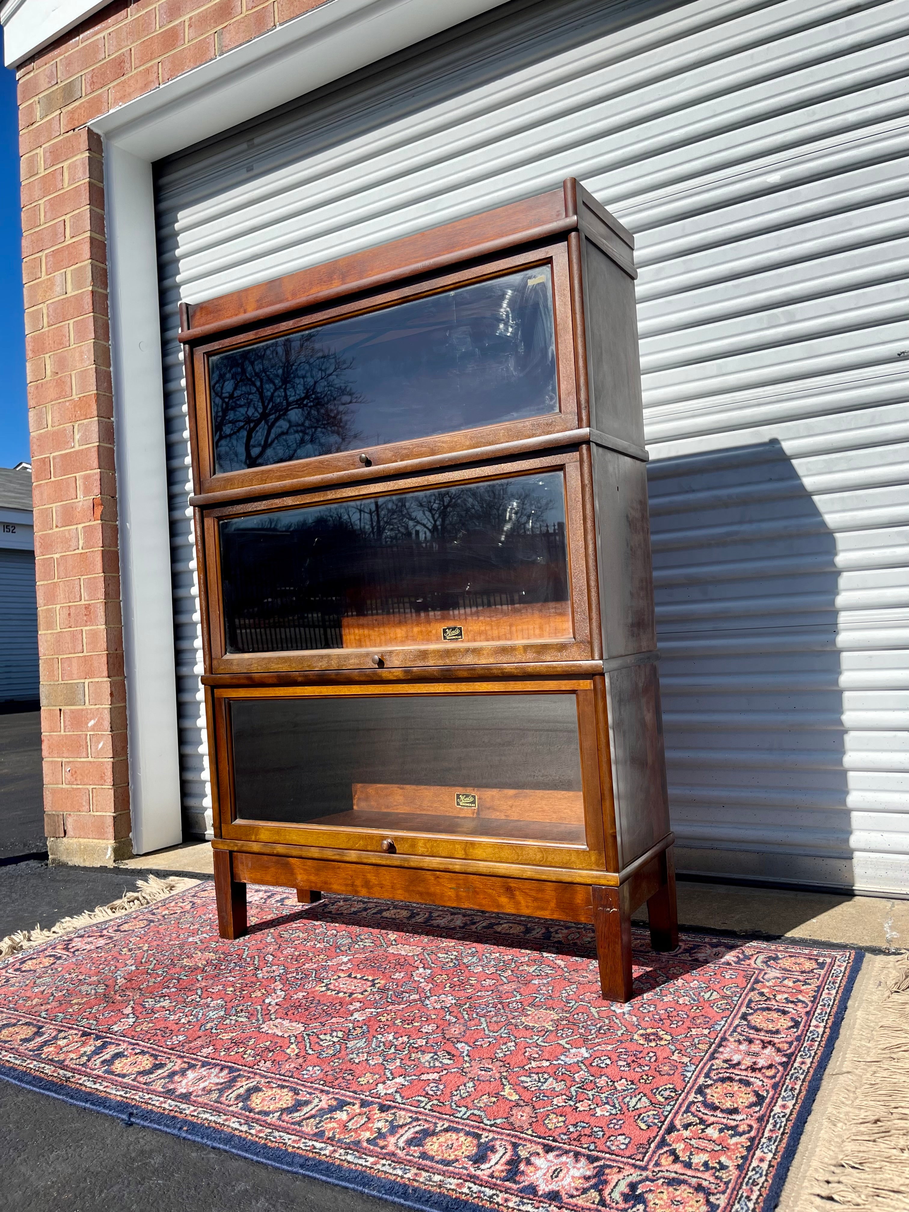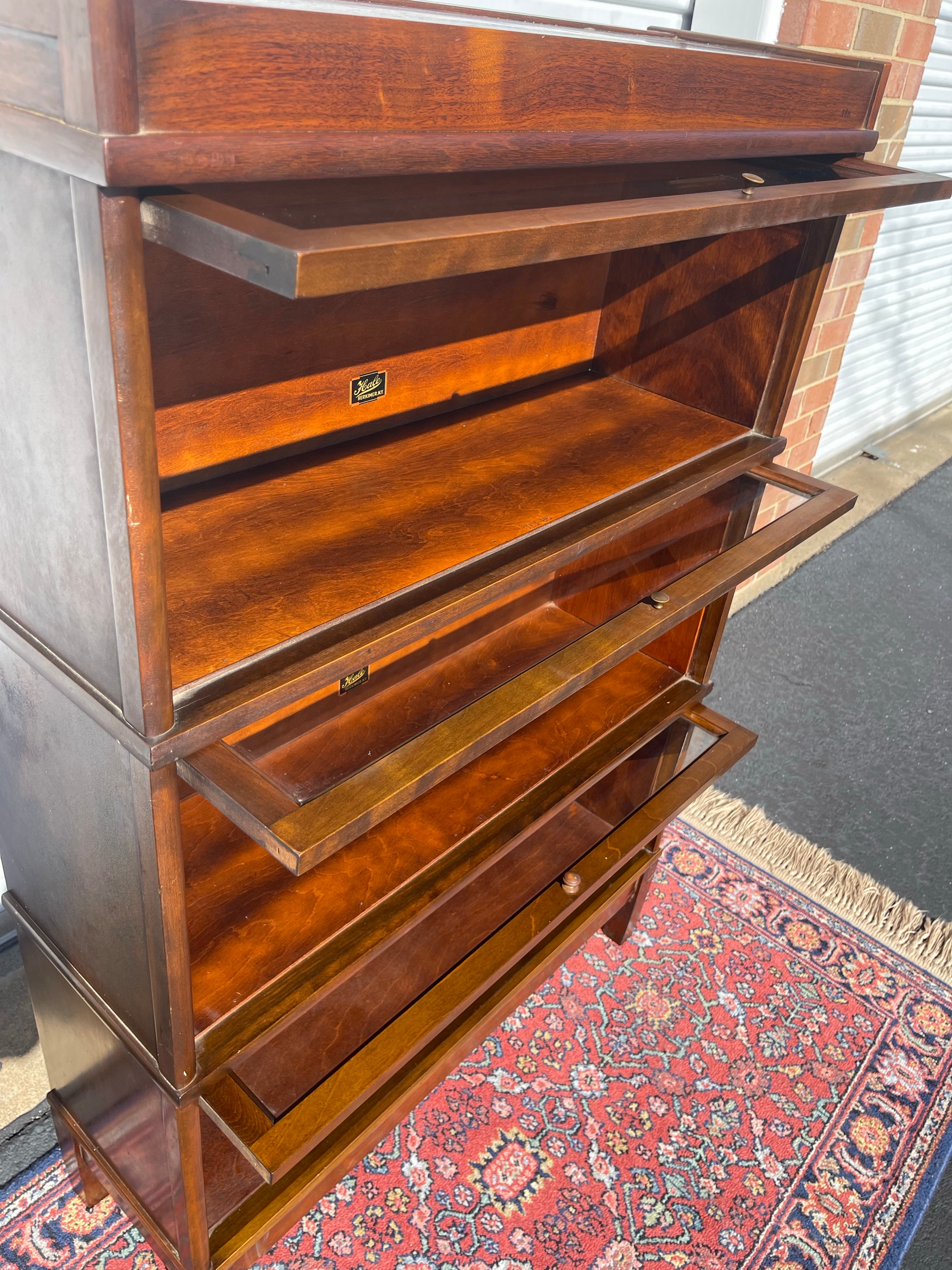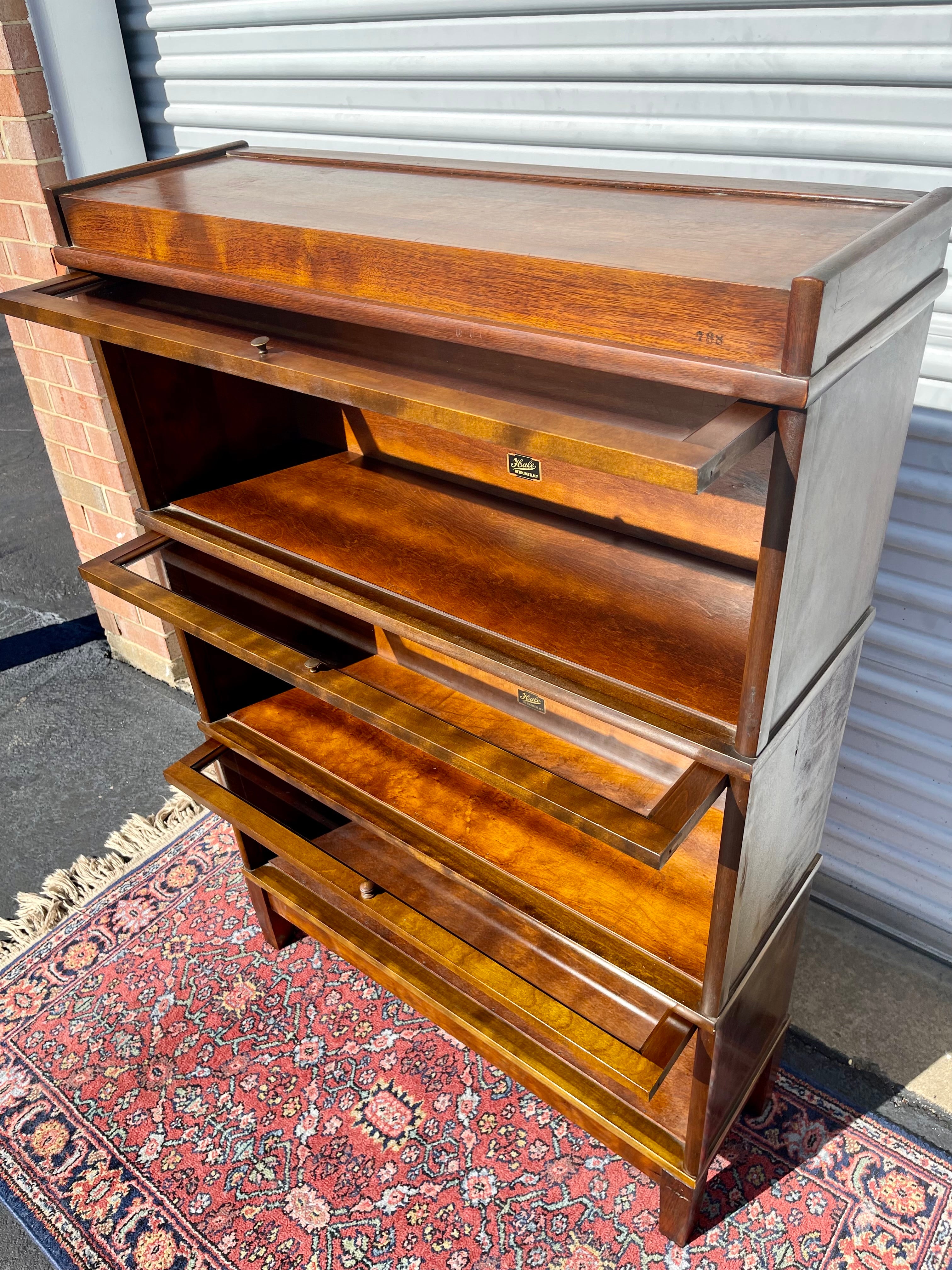What a beautiful piece of American furniture history! This Antique Hale Barrister Bookcase has been meticulously restored and is looking great for a piece that is likely nearly 100 years old! 3 stacking individual units plus a base and top comprise this piece. All hardware is in perfect working order.