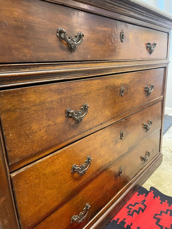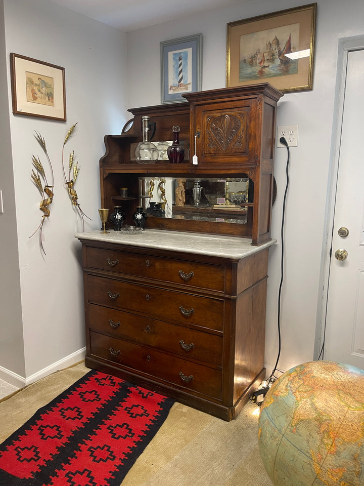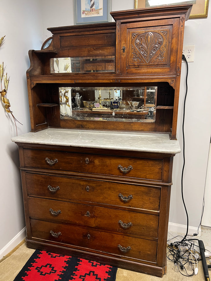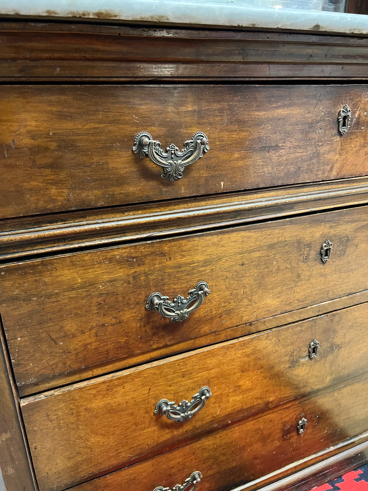 Beautiful antique with large marble countertop. Would be absolutely fabulous as a kitchen display/extra storage. Could be used in a variety of settings with spacious drawers.