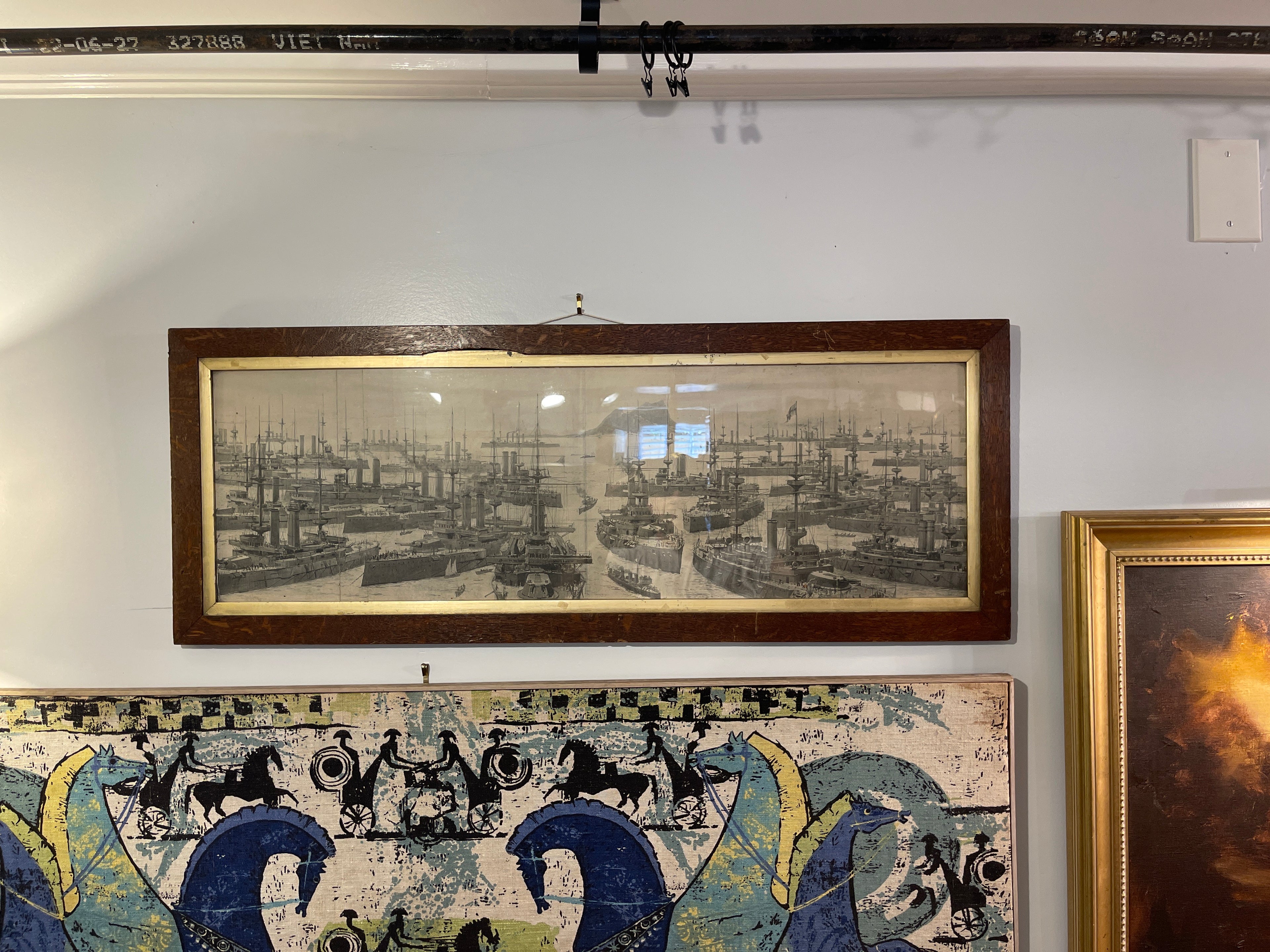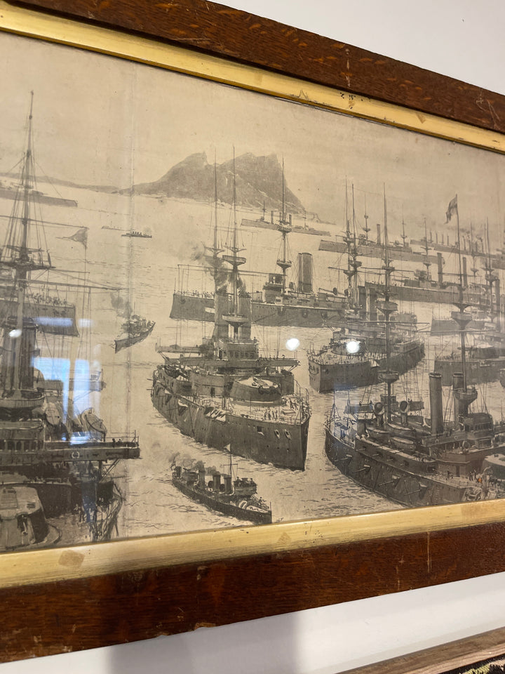 Antique Ship & Rock of Gibraltar Framed Artwork