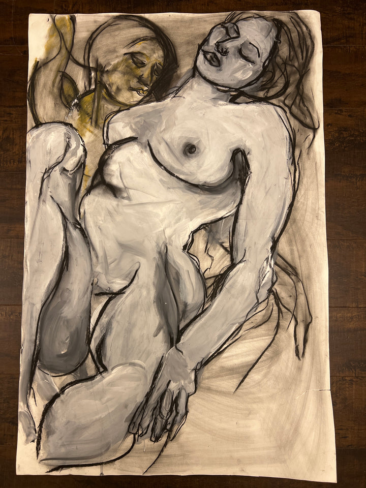 Black White and Gold Women Nude Charcoal and Acrlyic (Nina Gelin-Meier Collection)