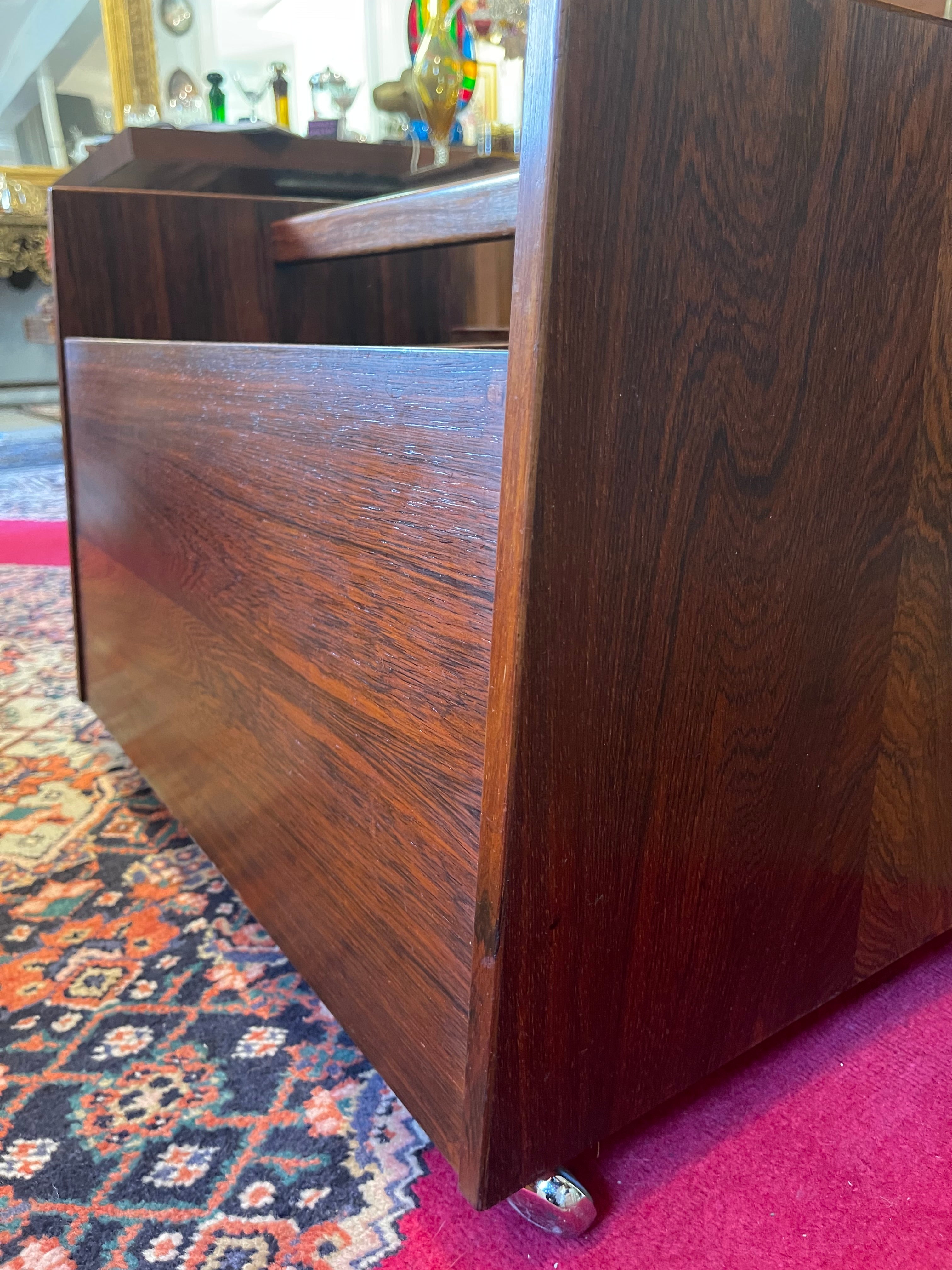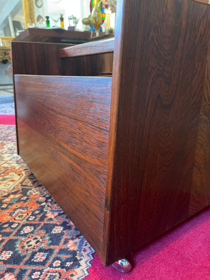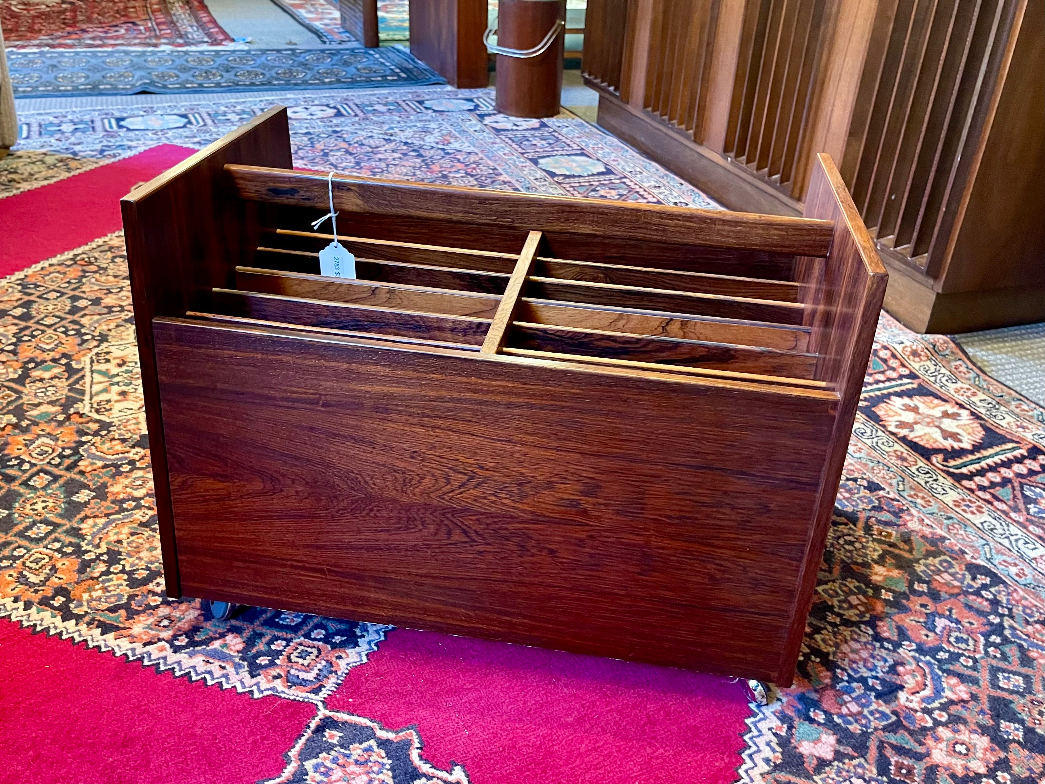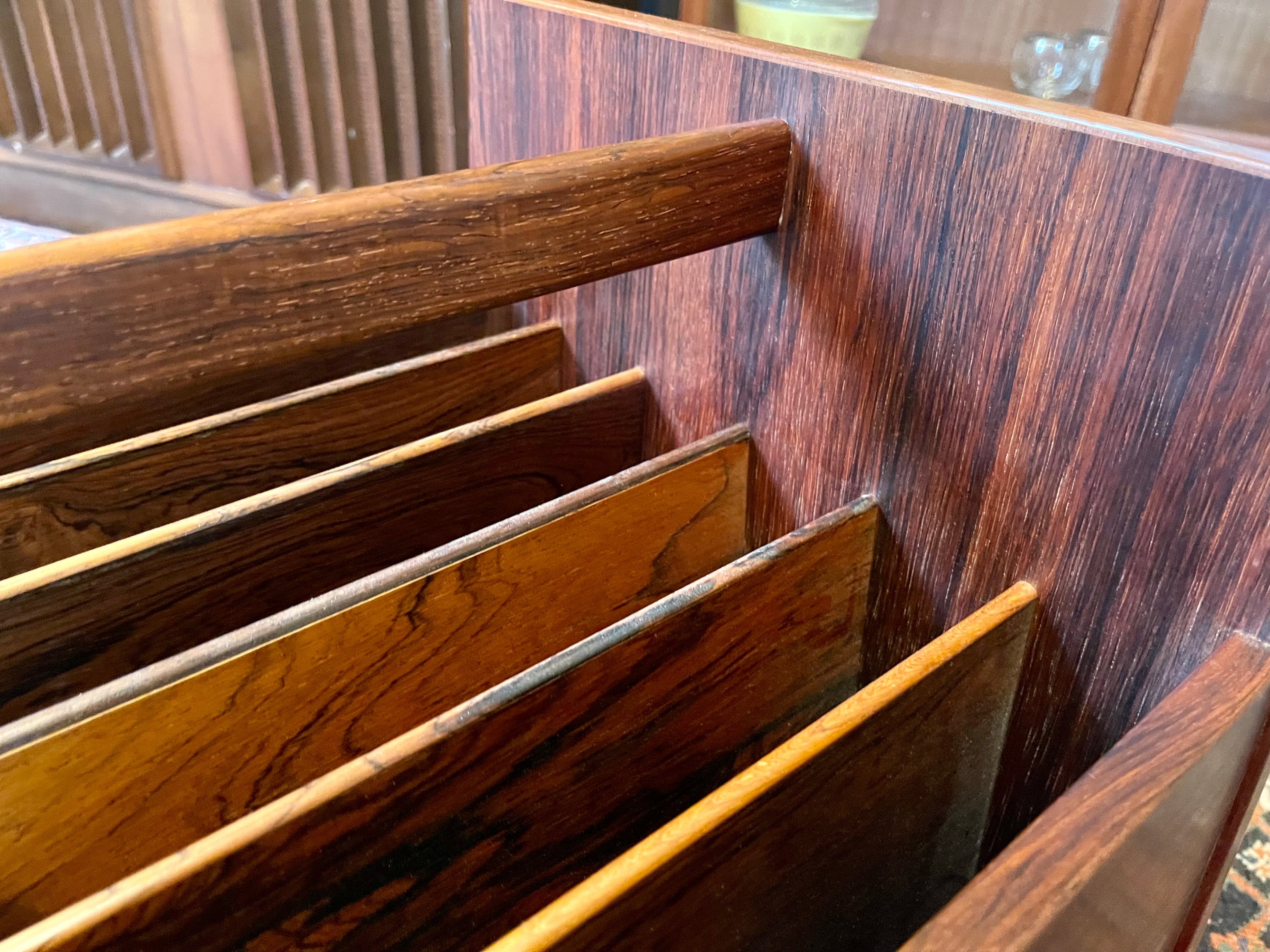 Made in Norway, this stunning rosewood magazine rack is from the highly desirable designer Bruksbro. Beautiful rosewood on every surface, a true design work of art.