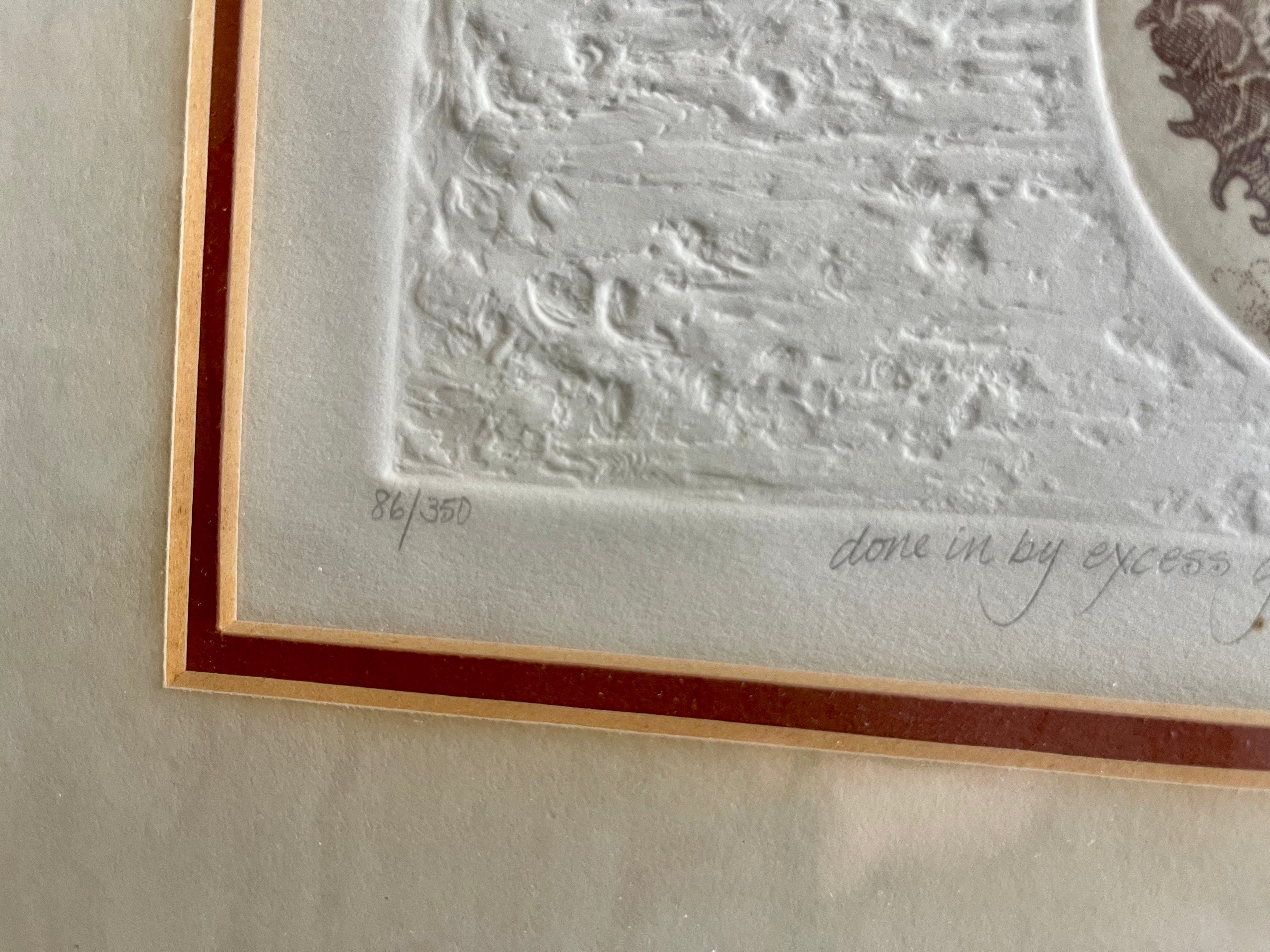 Artist Carol Travers Lummus of Cape Cod uses brass presses to create beautiful and uniquely styled colored etchings. These etchings, often depicting folks from the Victorian era, often include elements of social commentary and humorous titles.