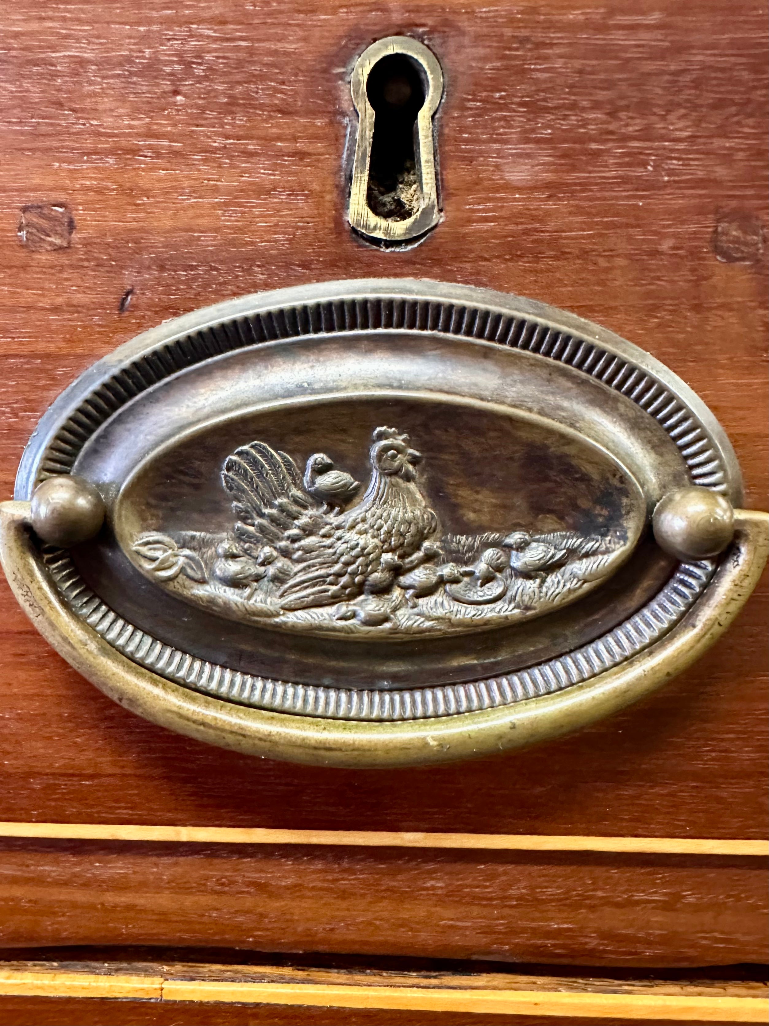 Charming Mahogany Dresser with whimsical chicken drawer pulls! Made in mid 1800’s in fantastic condition.
