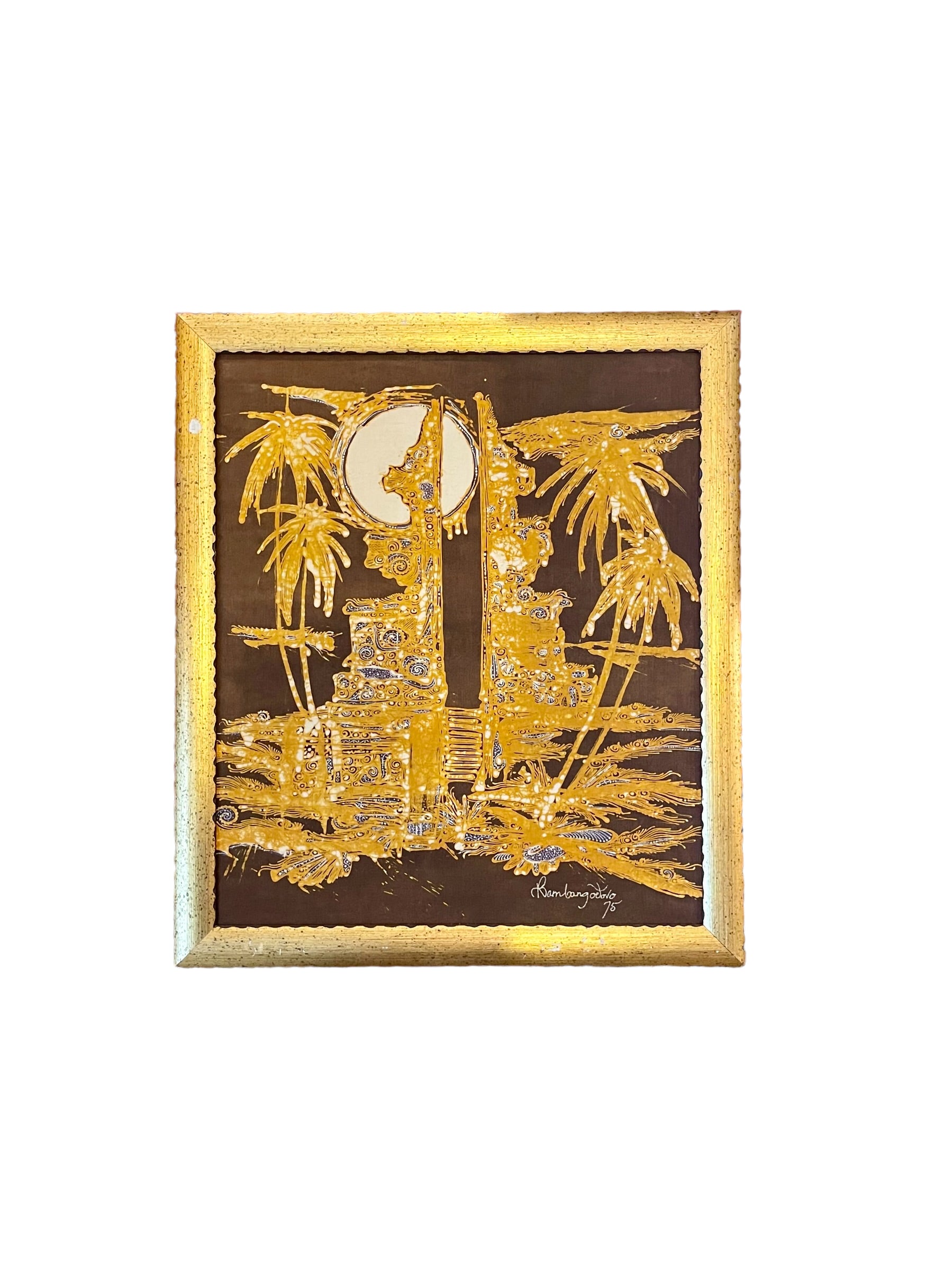 Gold Tropical Batik Signed and Dated 1975