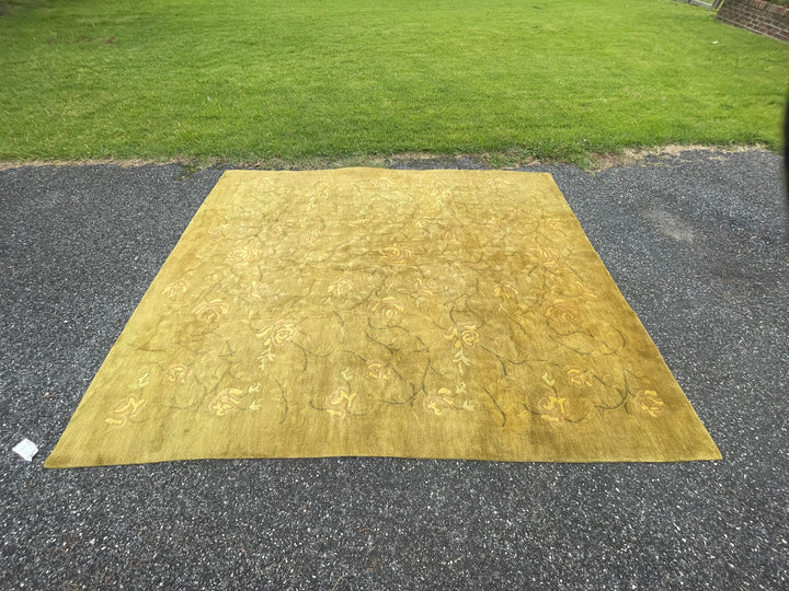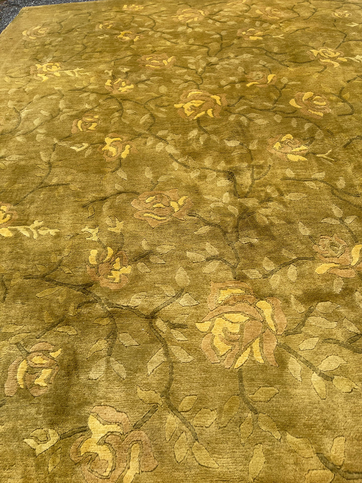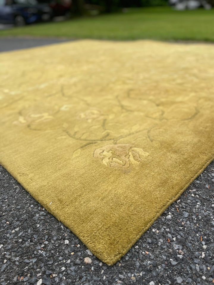 Hand-Knotted 100% Wool Green Floral Area Rug