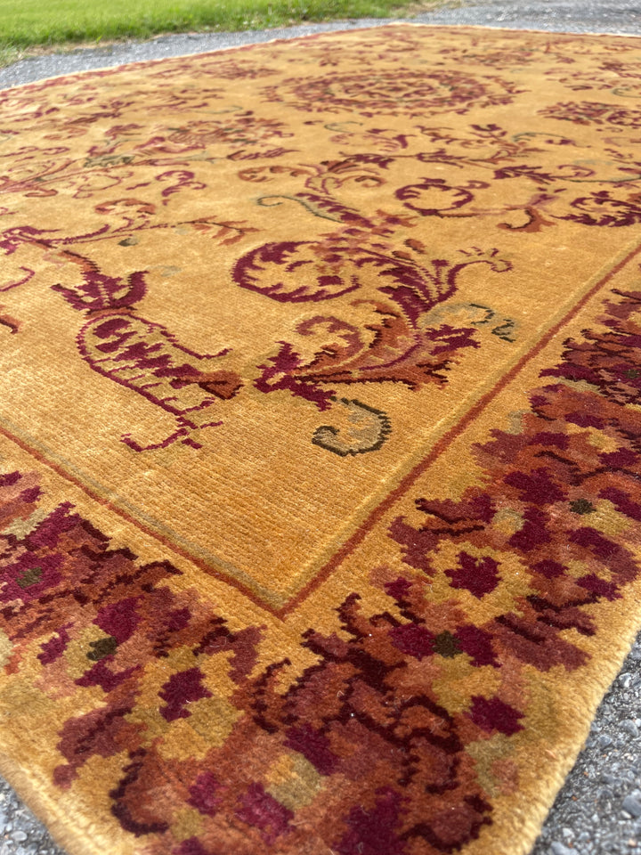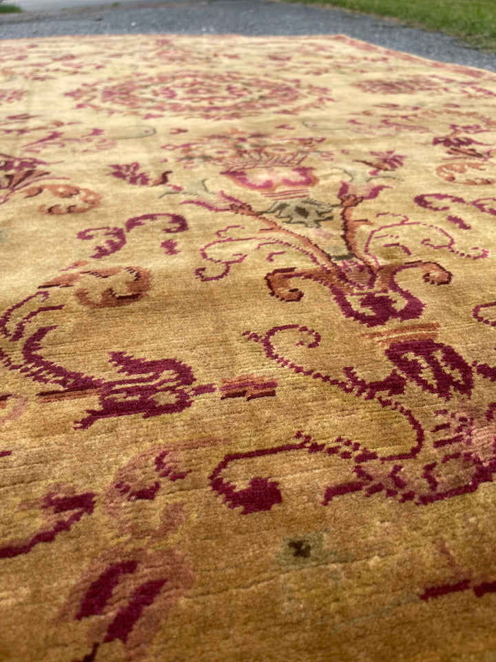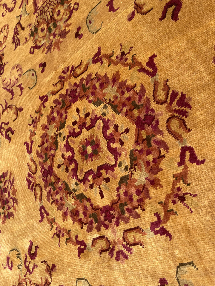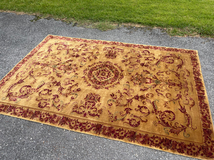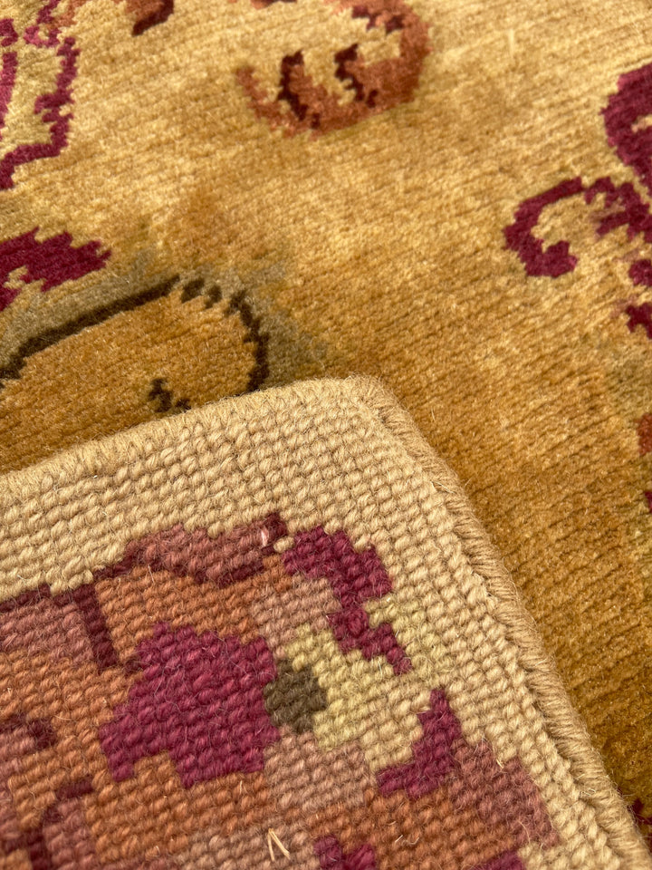 Hand-knotted Vintage French Aubusson Area Rug (Gold and Pink)