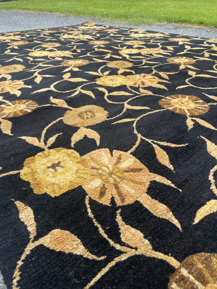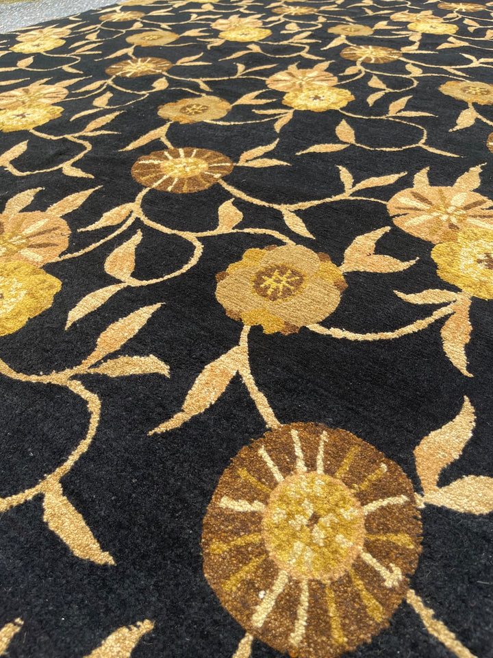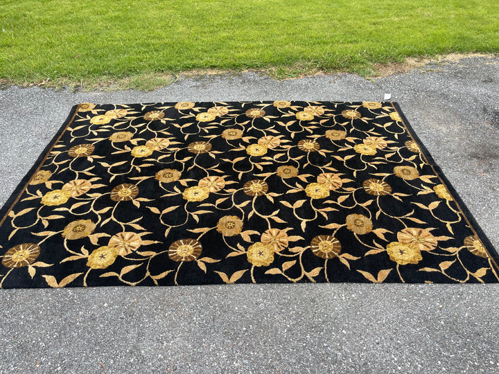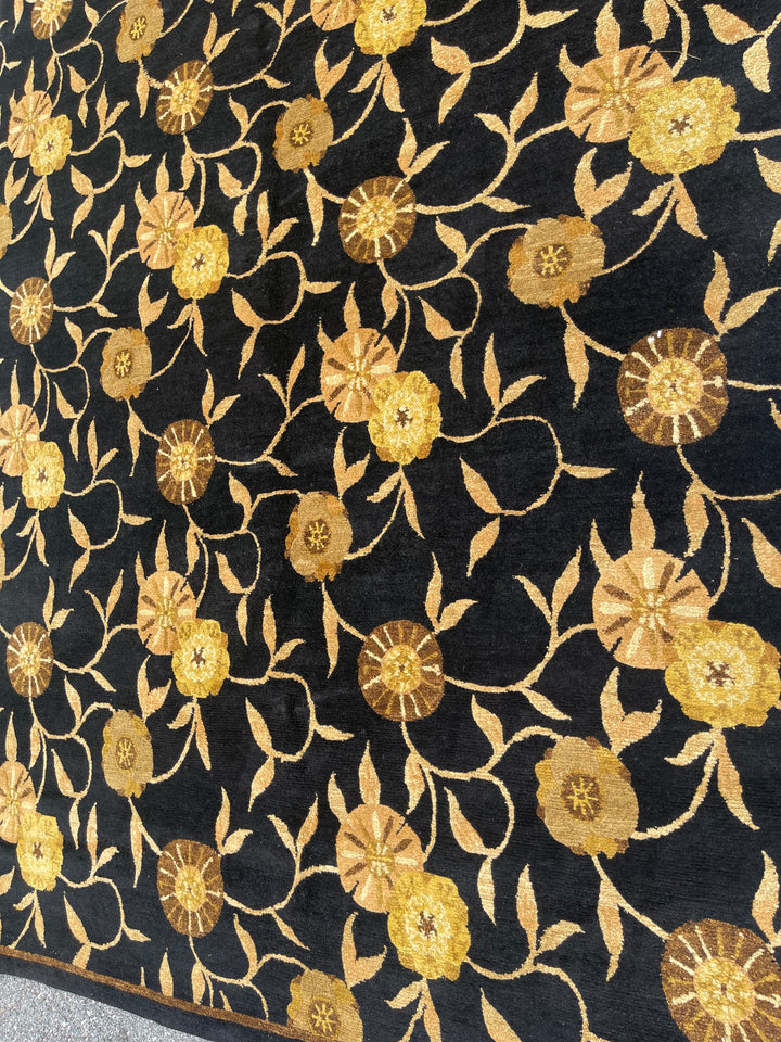 Handwoven Wool Tibetan Rug (Black and Gold)