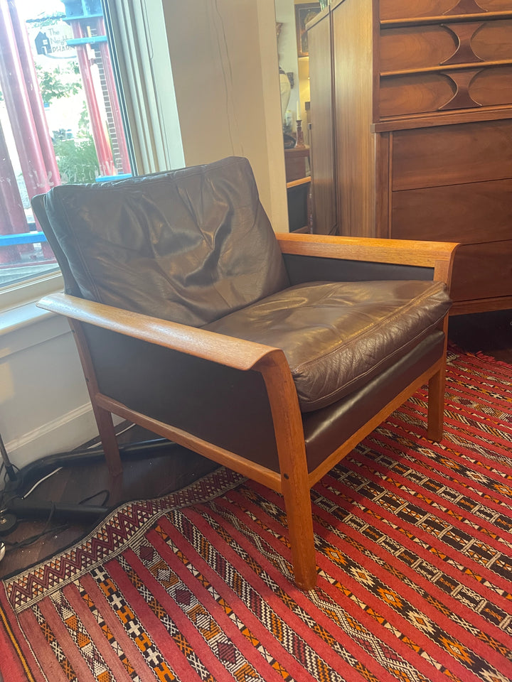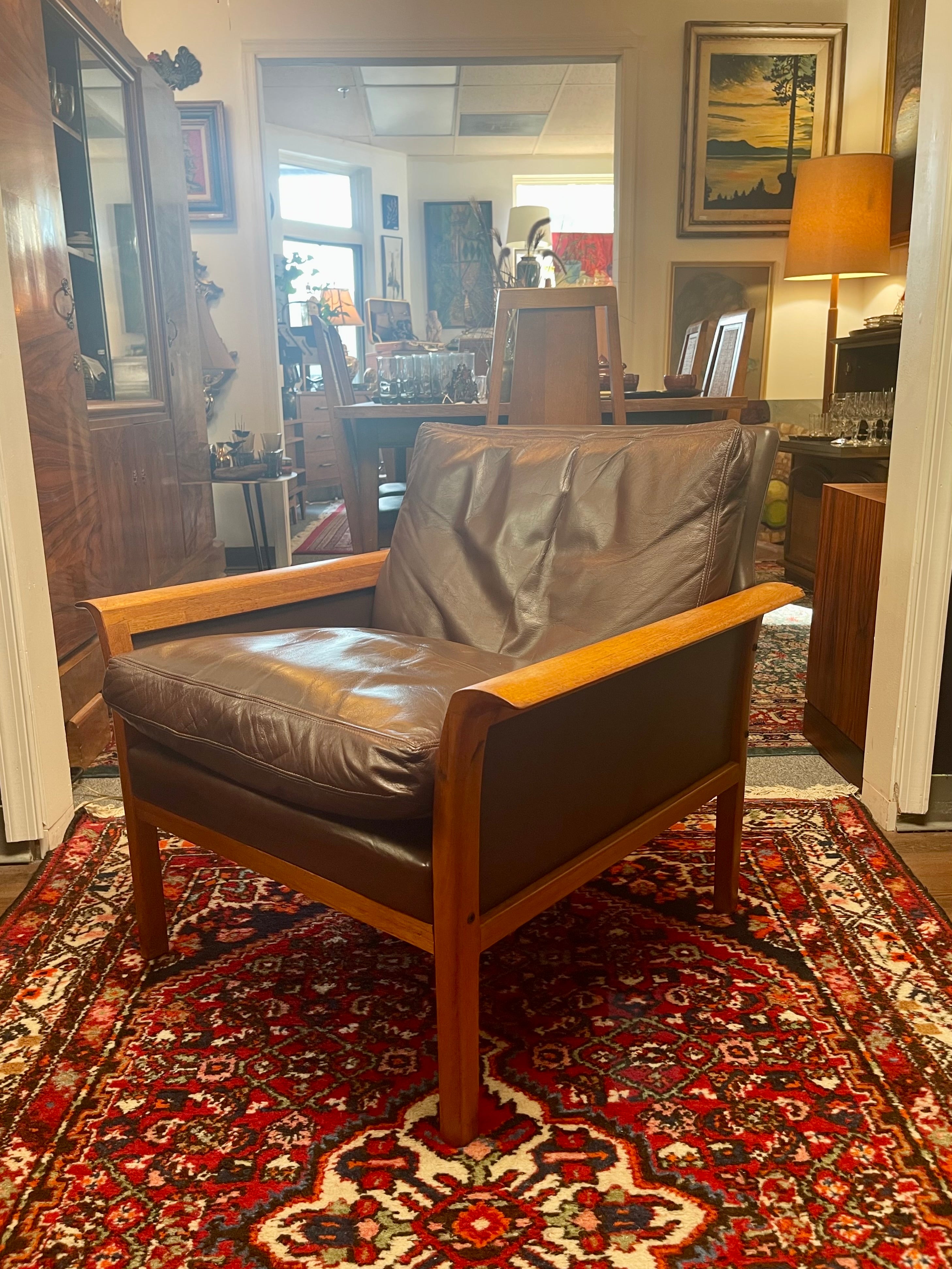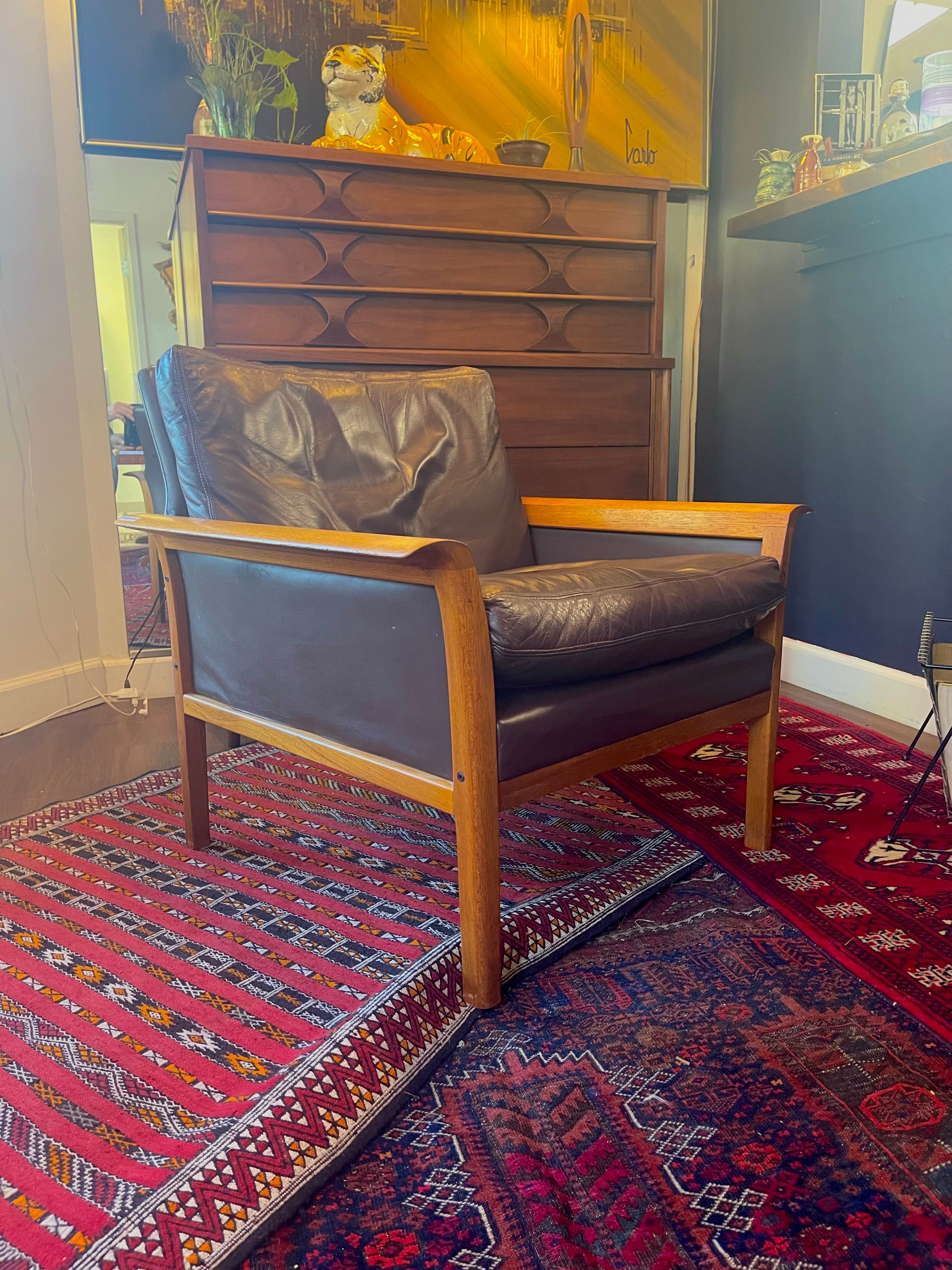 Knut Sæter for Vatne Møbler Scandinavian Modern Brown Leather & Teak Lounge Chair