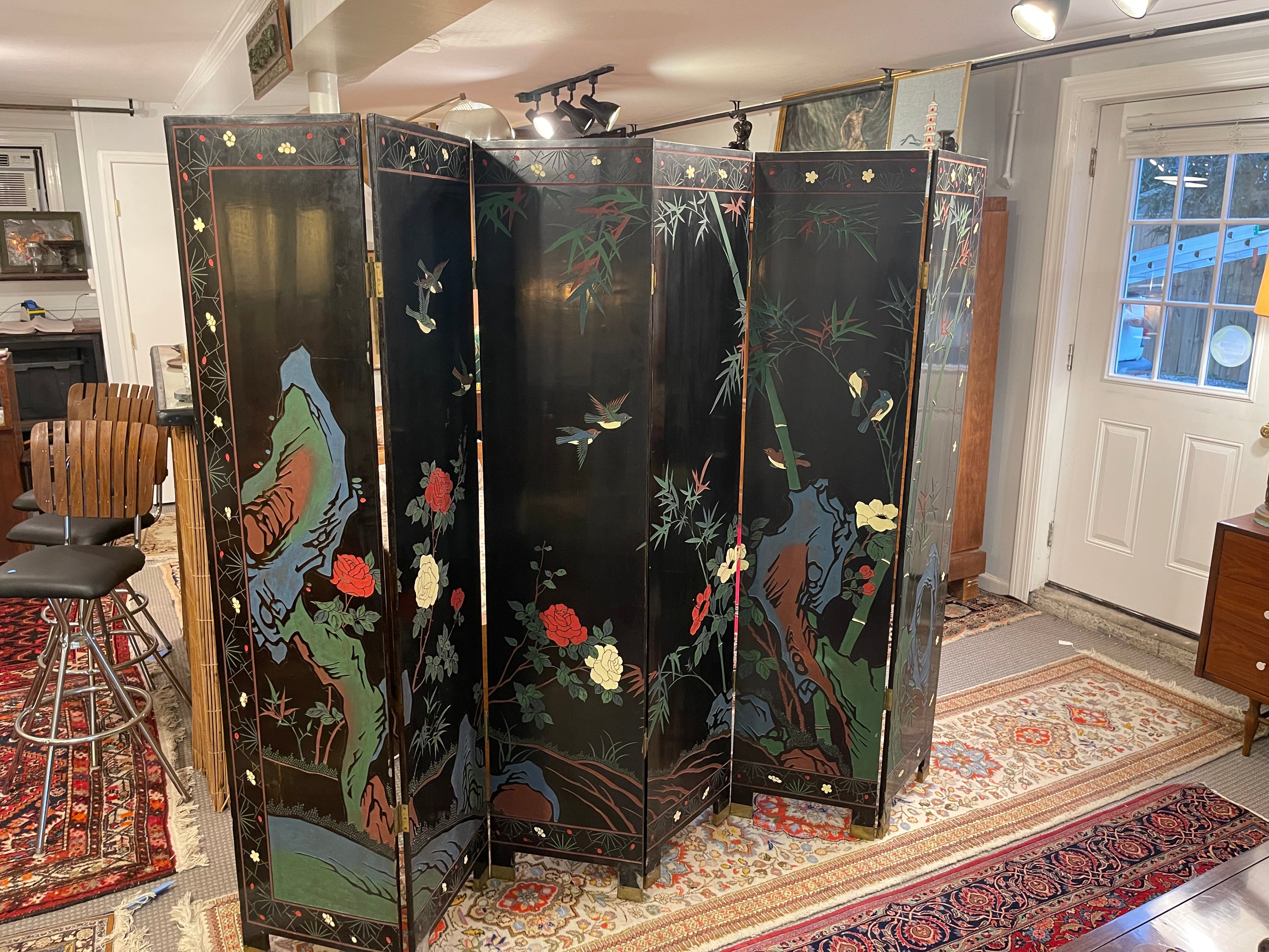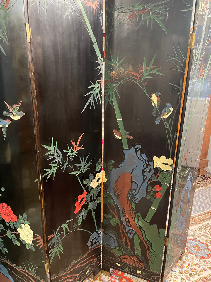 Asiatic Black Lacquer Floor Screens