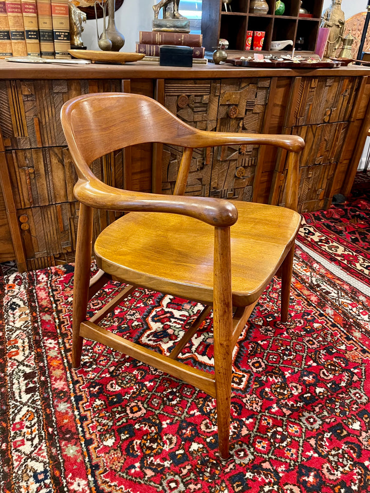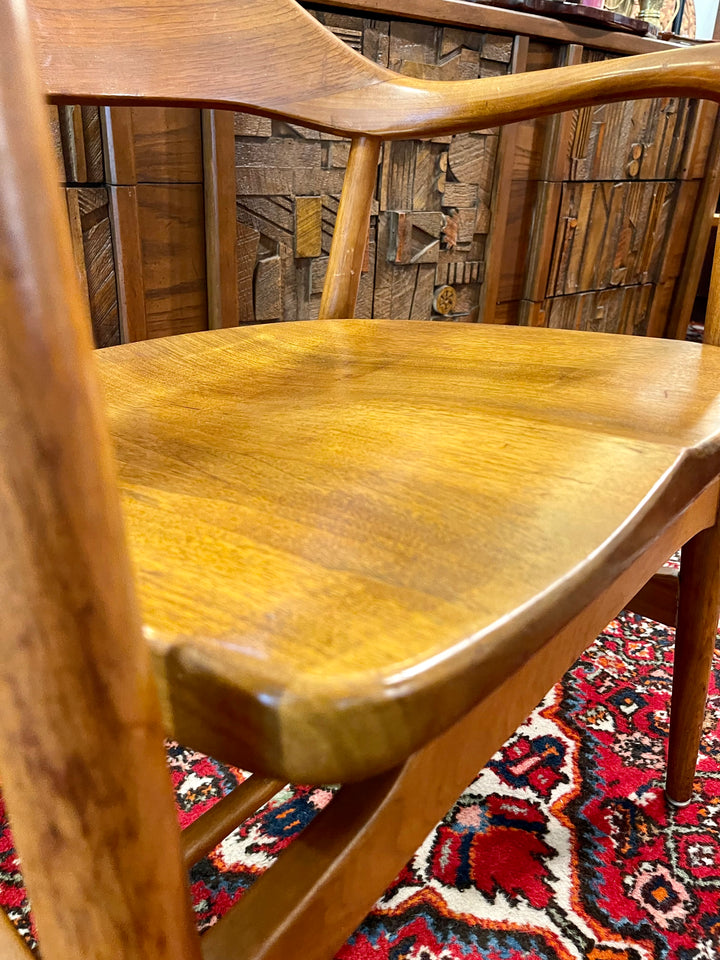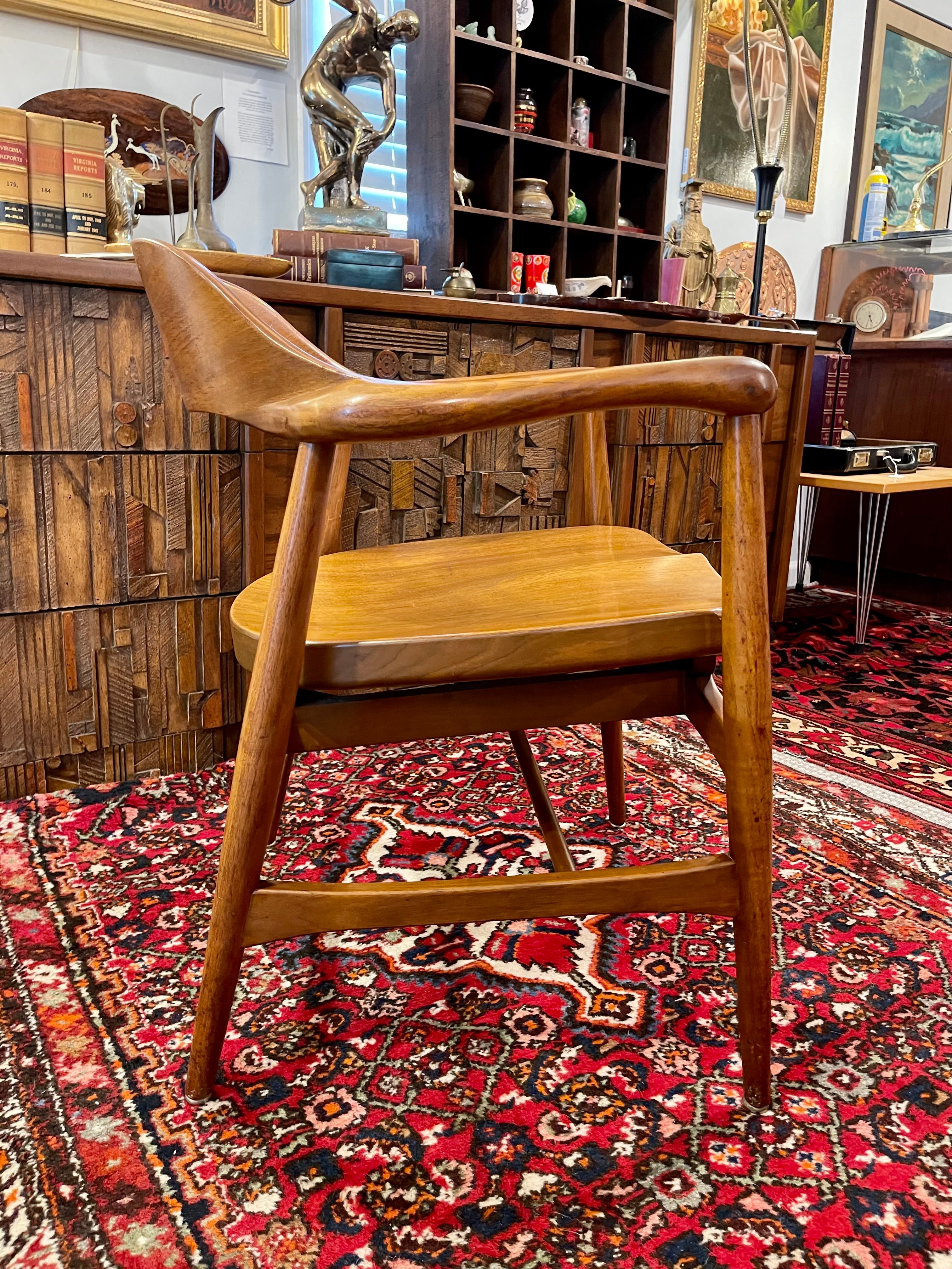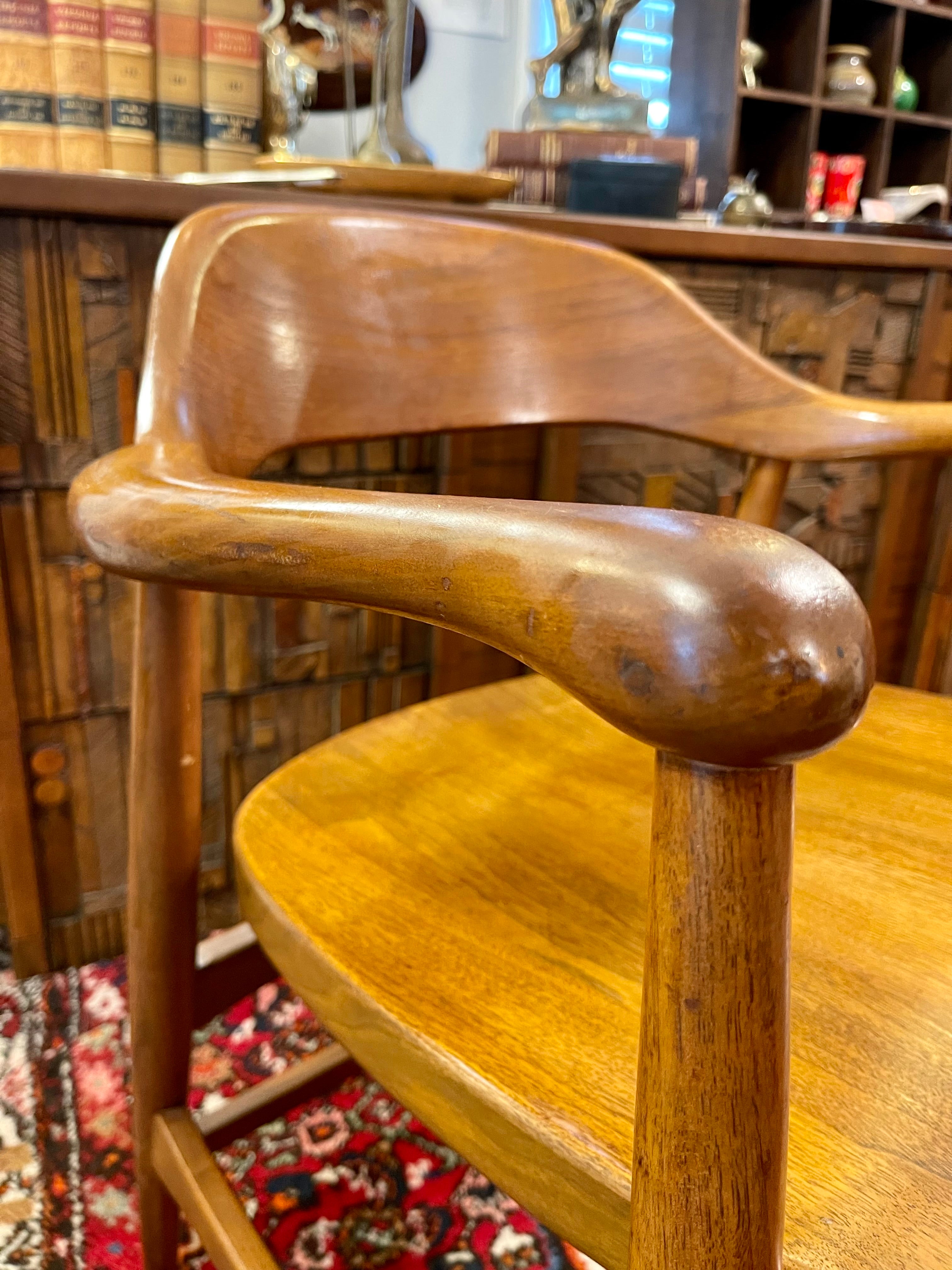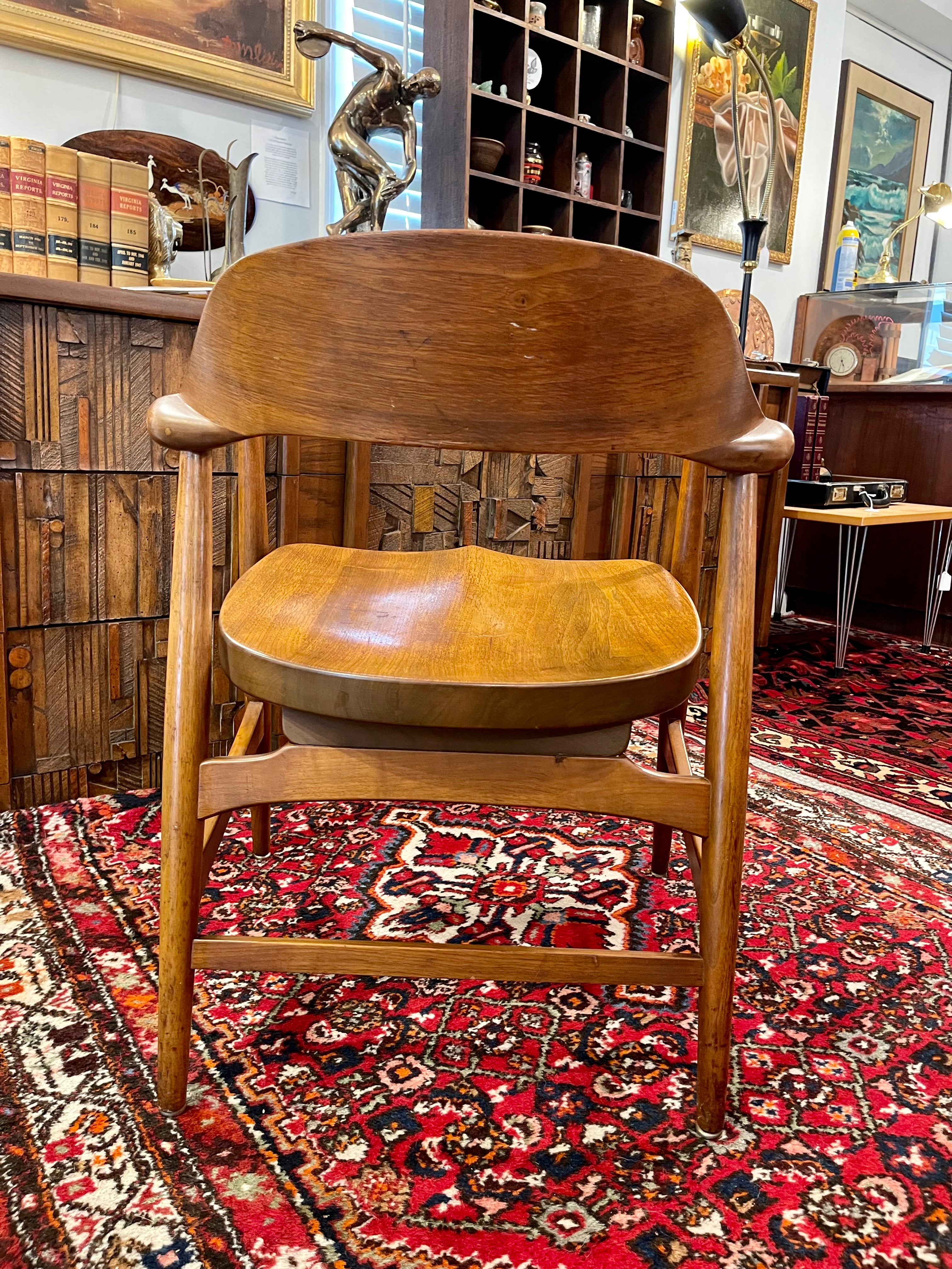 This authentic, vintage arm chair by Johnson Furniture is labeled “The Business Chair,” but with these classic midcentury lines they are perfect in any setting. The quality of the design and manufacturing of this piece is evident at first glance. Vintage chairs on solid walnut are exceedingly difficult to source.