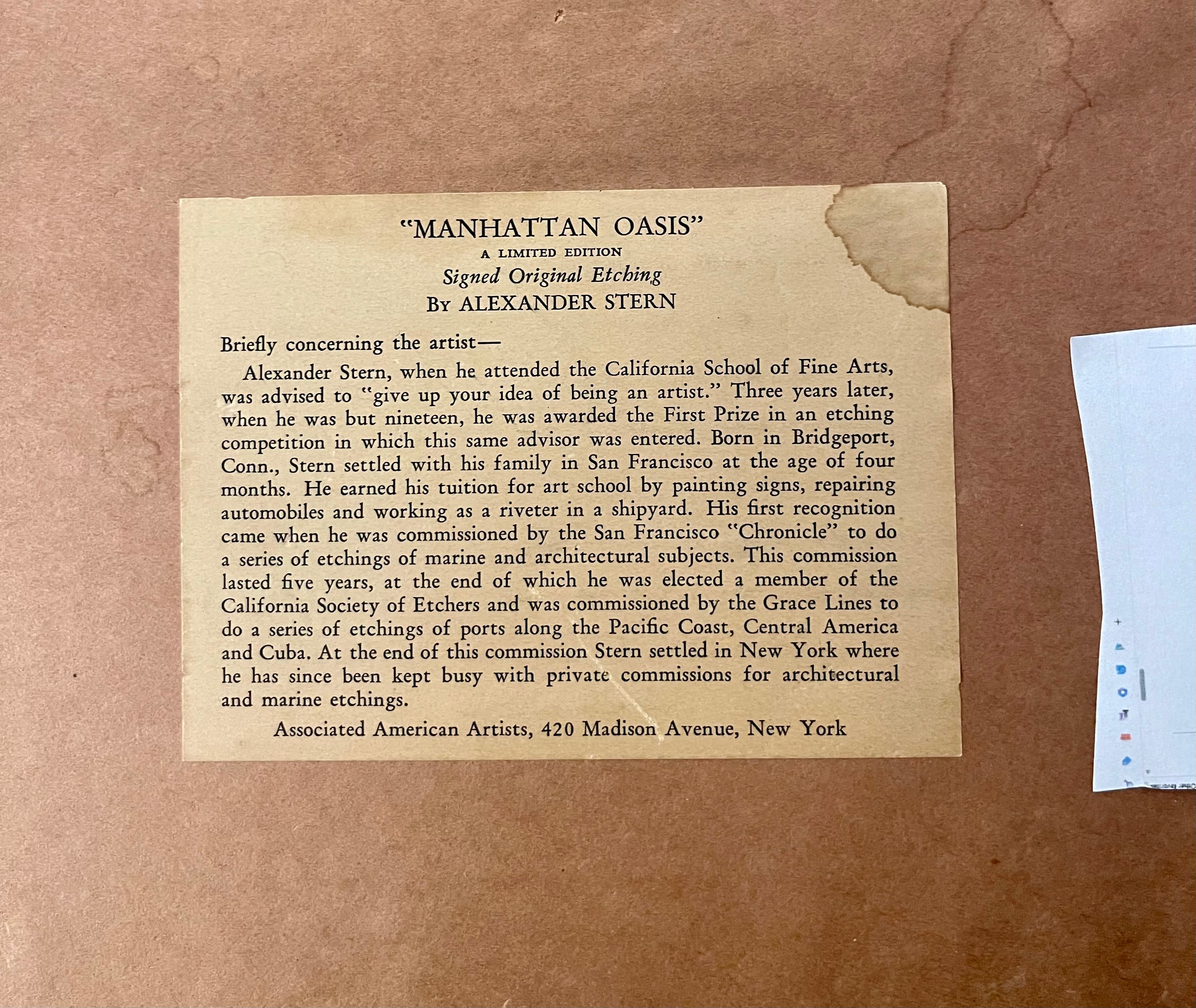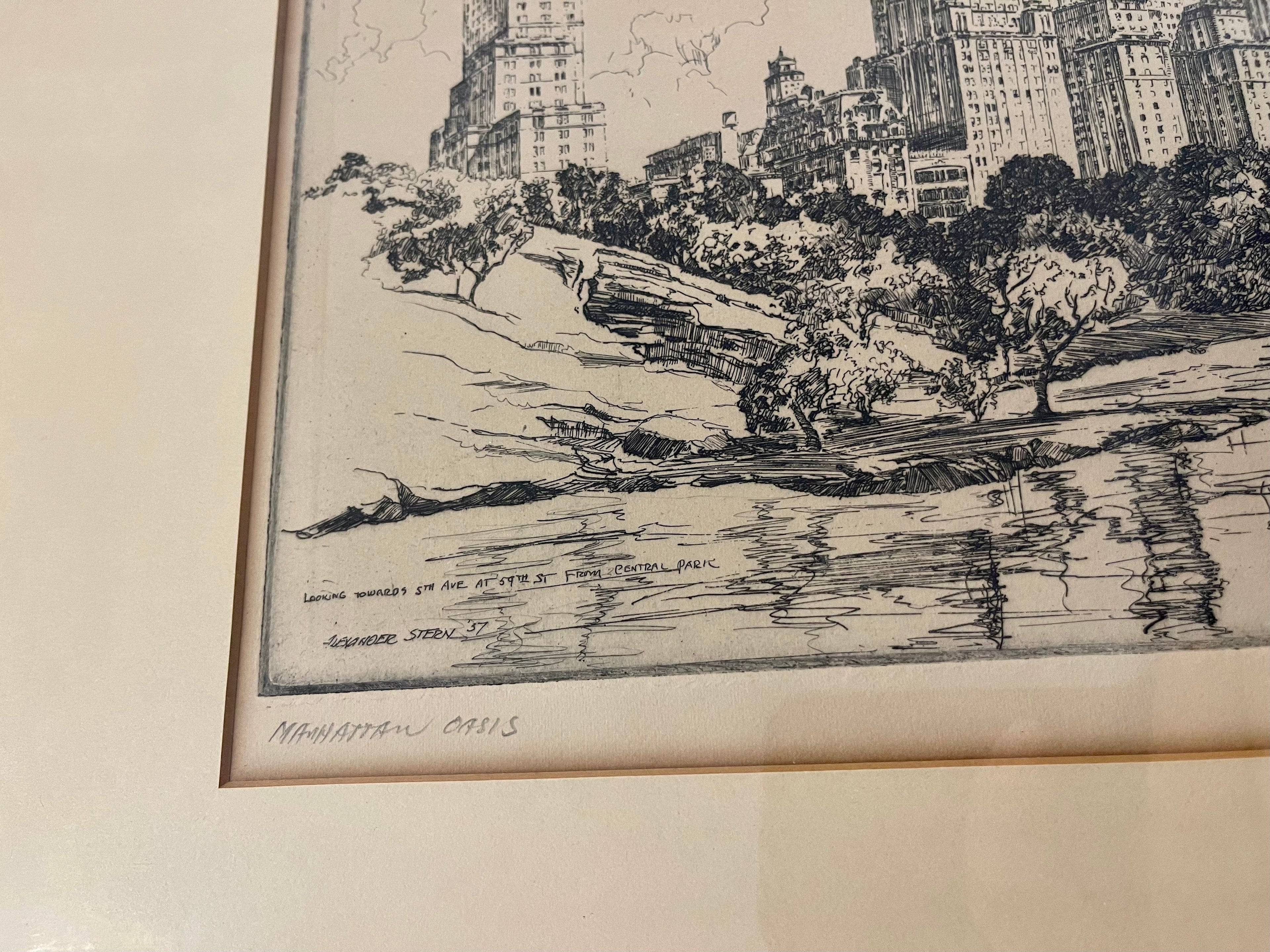 “Manhattan Oasis” Signed Original Etching by Alexander Stern