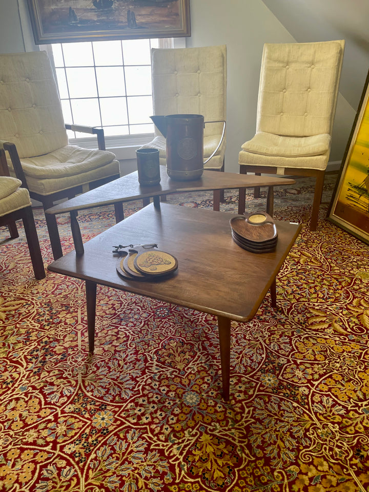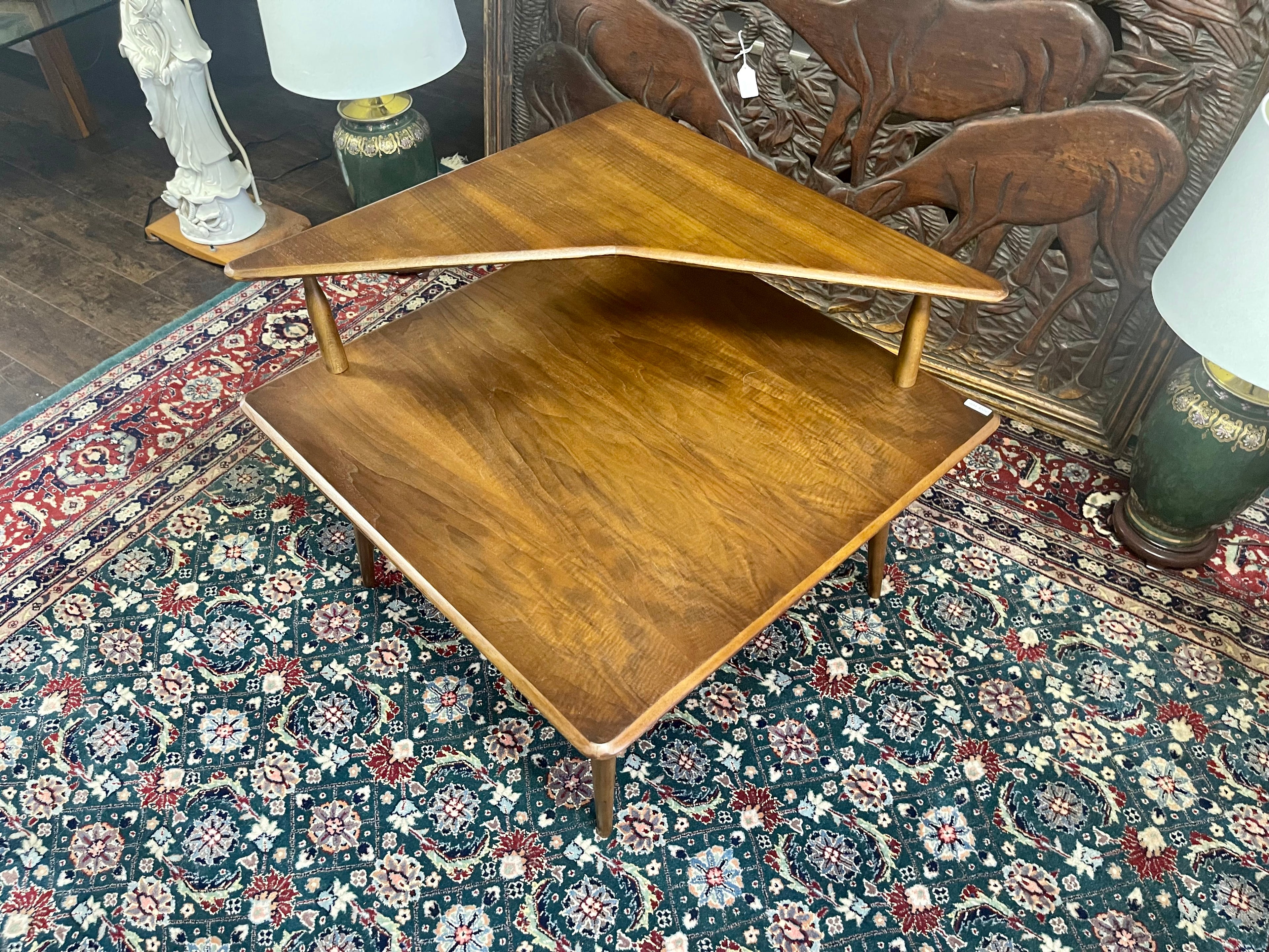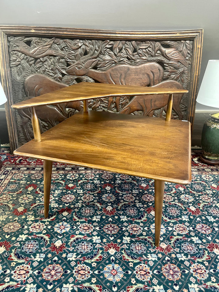 Fully restored piece of Midcentury modern furniture. This little black walnut table has all the charisma. The chatoyancy (shimmer) in the walnut is striking. Perfect for that corner in the living room or bedroom you just can’t quite figure out.