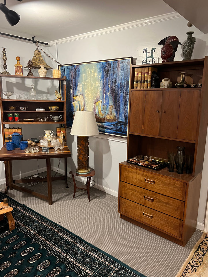 Rare shelving unit from the Lane Acclaim line. This piece features a chest with three spacious drawers, and a hutch with shelving and cabinet. Warm walnut with fruitwood accents. This functional piece would make a great kitchen or dining room piece. It could even be used in an office or bedroom depending on the need.