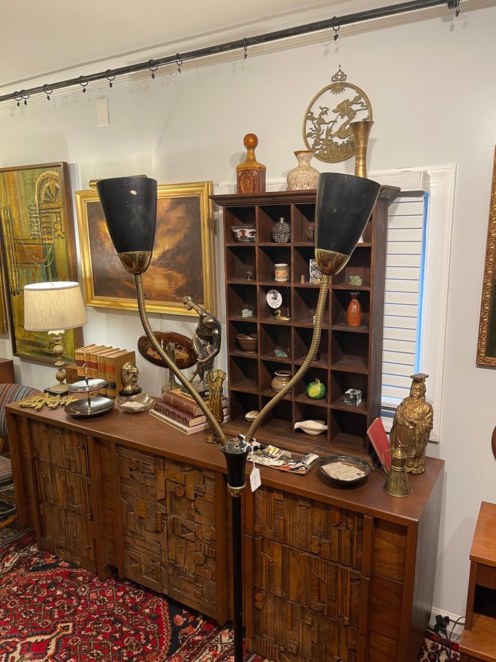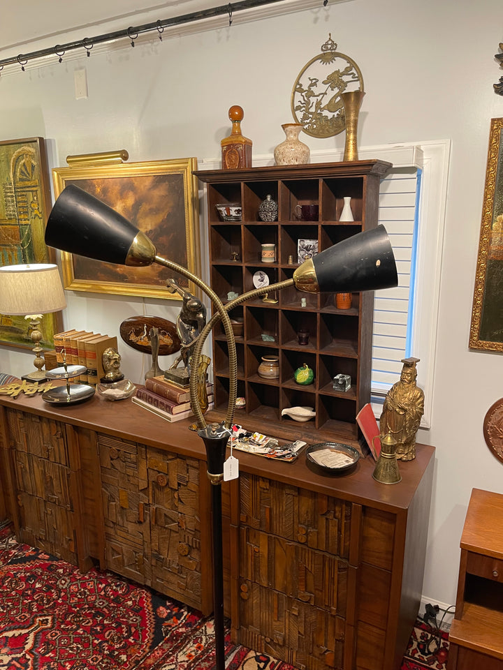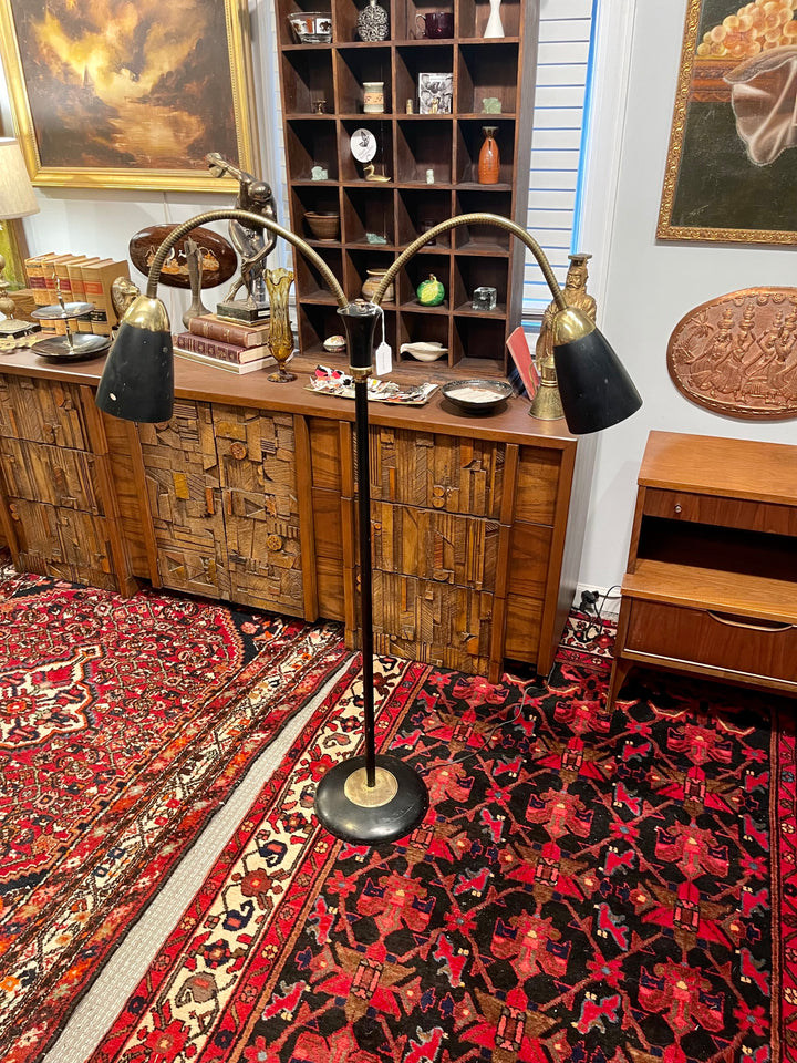 Mid Century Lightolier 2 Arm Goose-neck Floor Lamp, Gerald Thurston Atomic Lamp