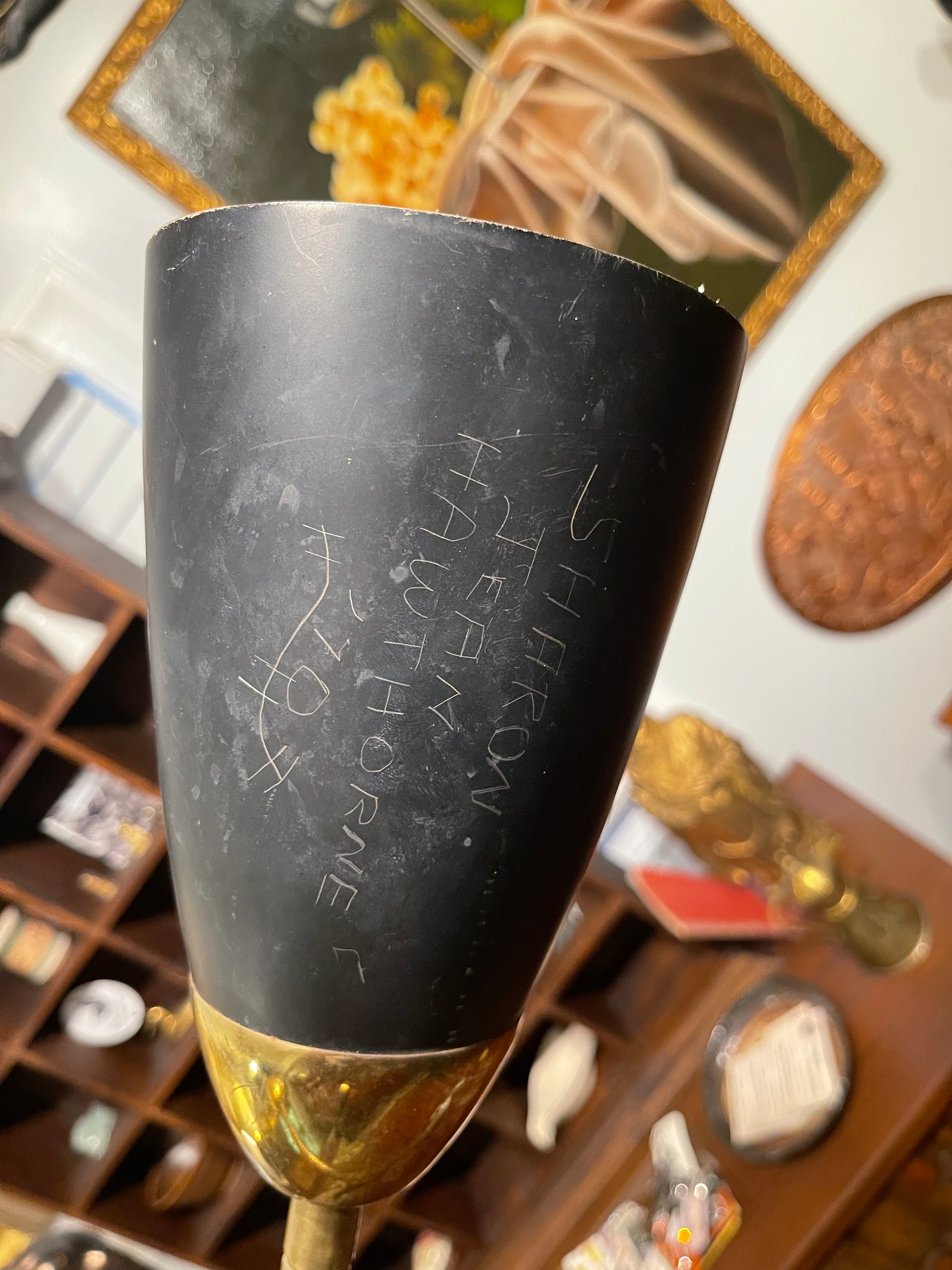 Midcentury modern Lightolier 2 Arm Goose-neck Atomic Floor Lamp. This Gerald Thurston inspired lamp, features a 3-way twist switch, allowing each light bulb to be turned on separately, or together. Accepts standard size light bulbs up to 100 watts. Arms are fully adjustable. Original owner signed in 1970 (lamp can be adjusted so this doesn’t show but it adds a unique historical dimension to the piece nonetheless).