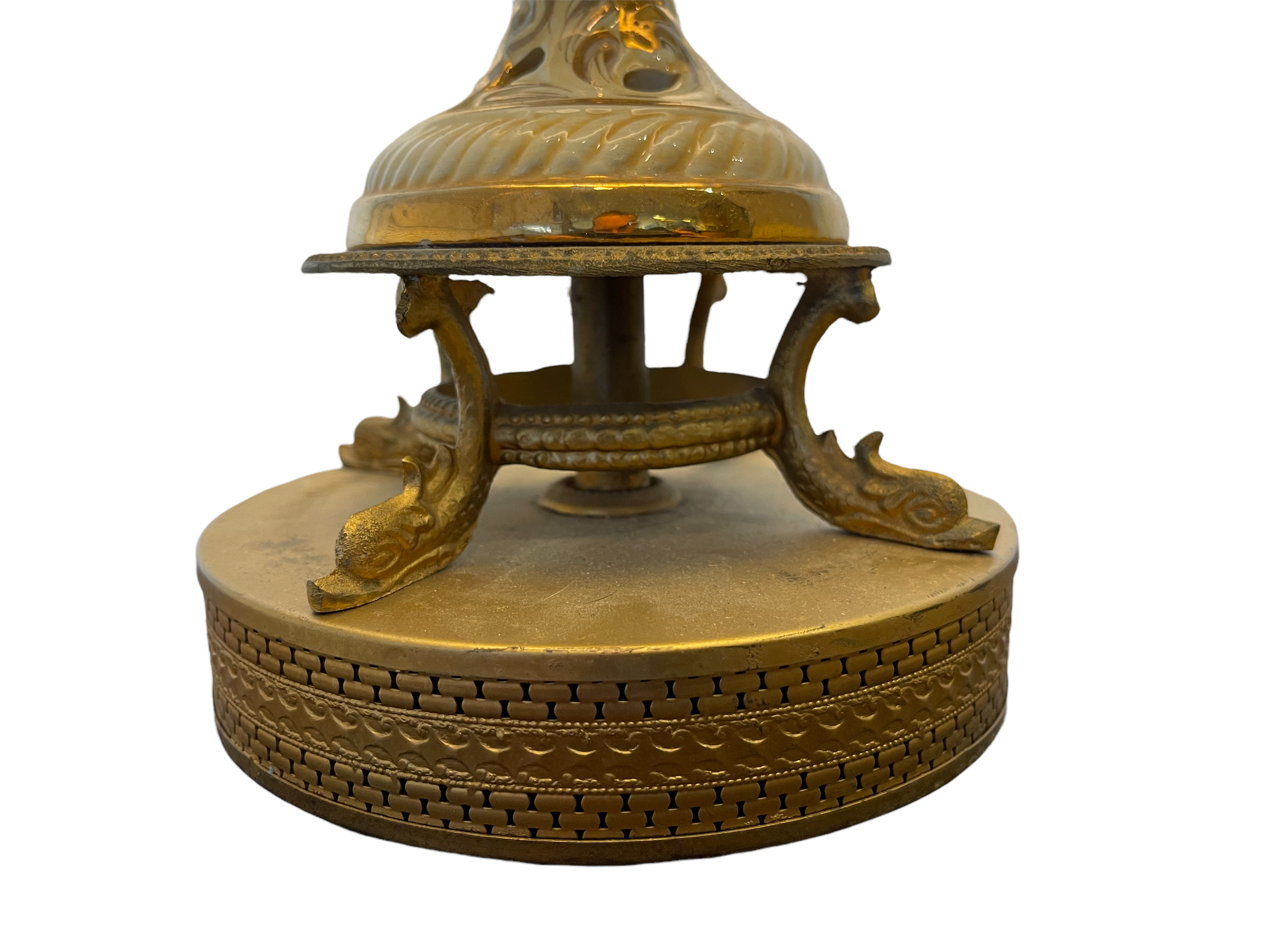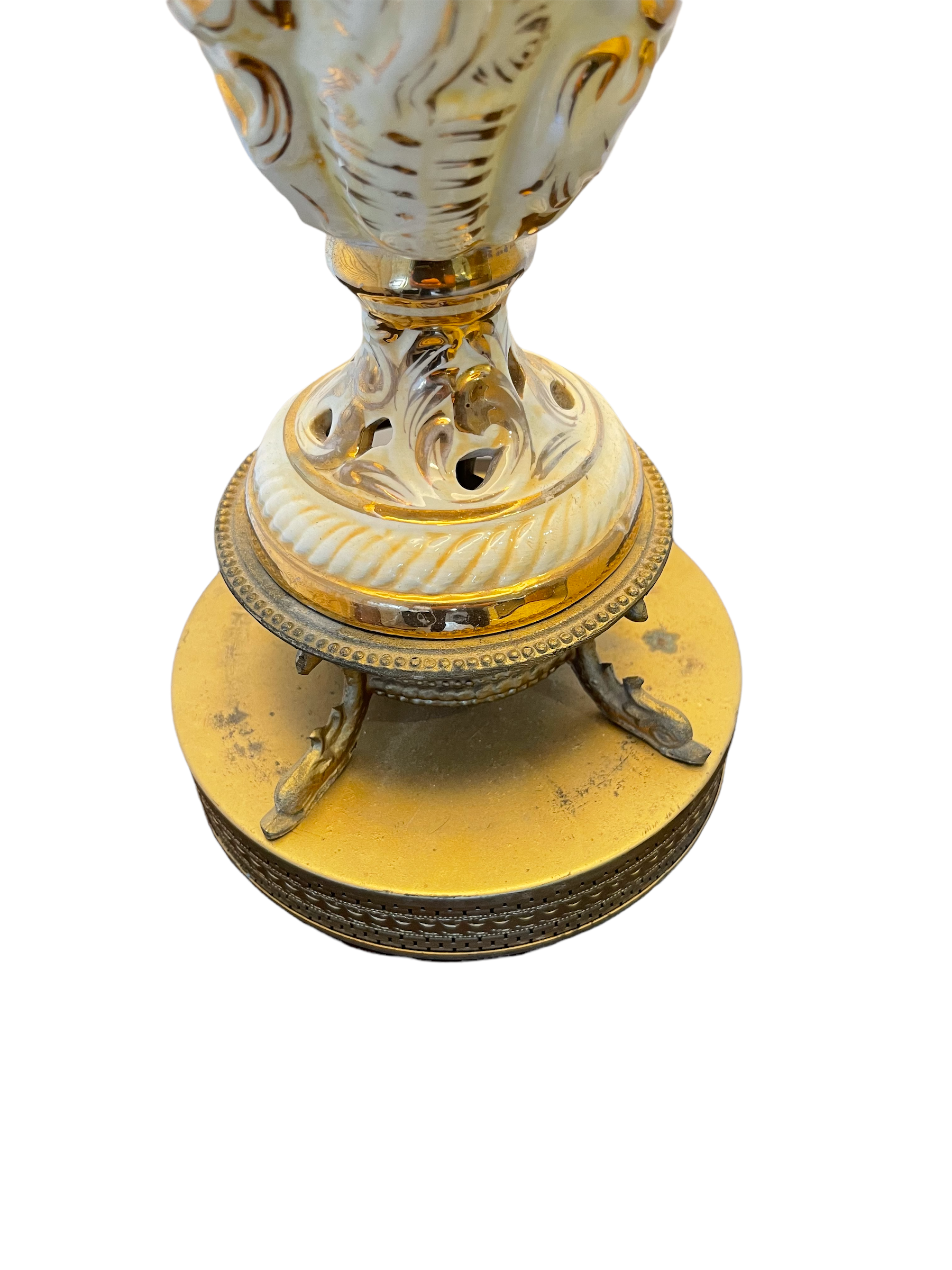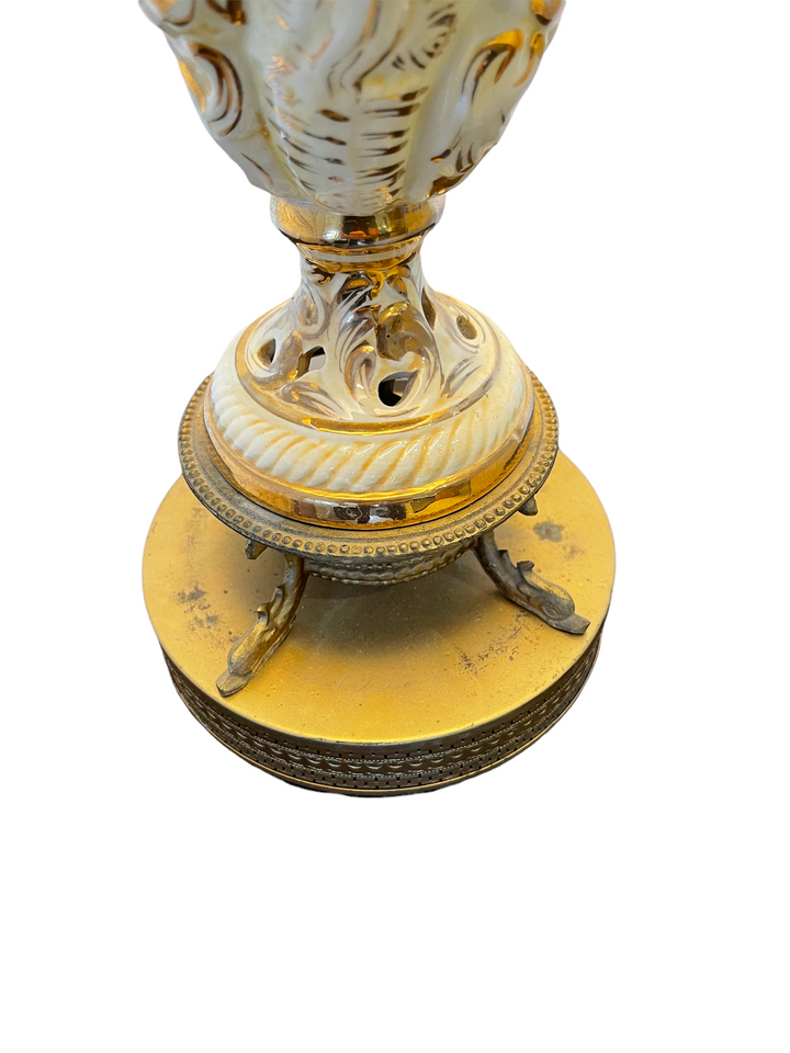 Midcentury Italian Handpainted Capodimonte Lamp. Signed on the interior of the base. Stunning white and gold porcelains expiring cherubs and swirls. Classical Italian brass base. Original wiring still intact and working.