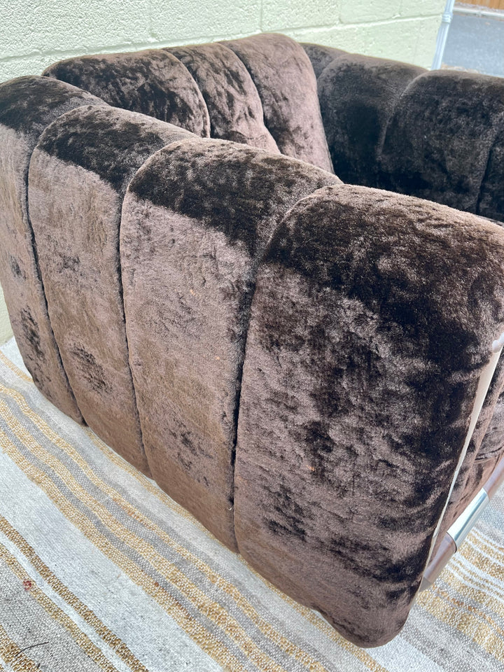 Milo Baughman Style Dark Brown Fuzzy Armchair