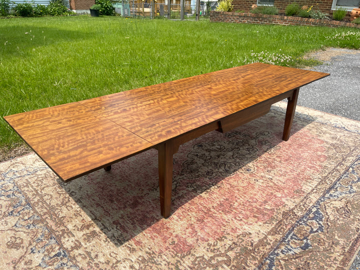 Rare and desirable midcentury modern coffee table designed by Milo Baughman. This table comes from the Drexel Perspective line, which used a beautiful Mindoro wood veneer. The central drawer opens from both sides of the table, and the two leaves add a dimension of flexibility to the piece. Carefully restored by our team at Magpie and ready for another 60 years!