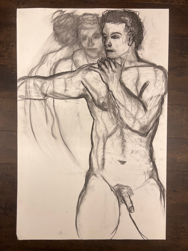 This piece is charcoal on paper, unframed. Shipping available.