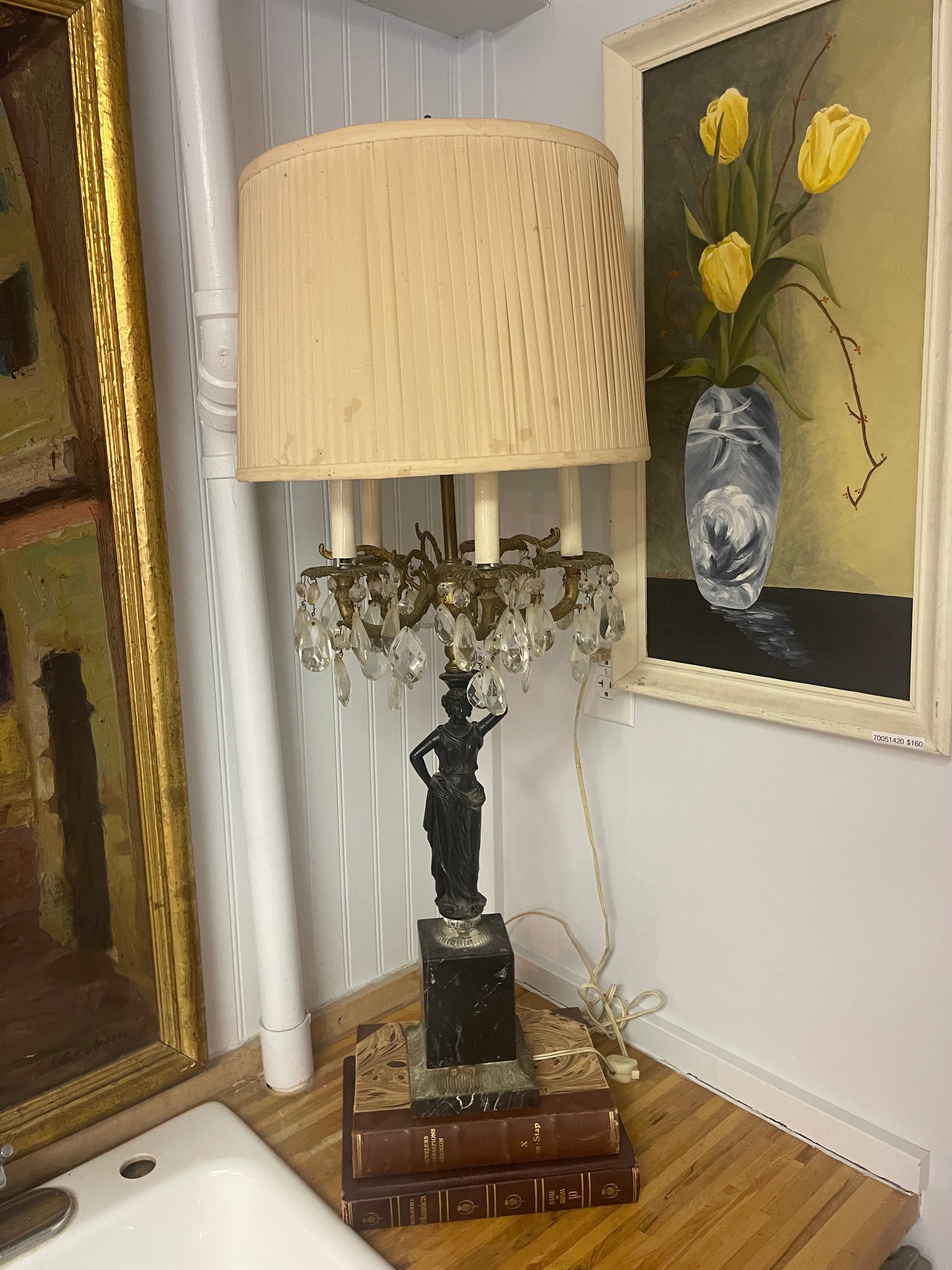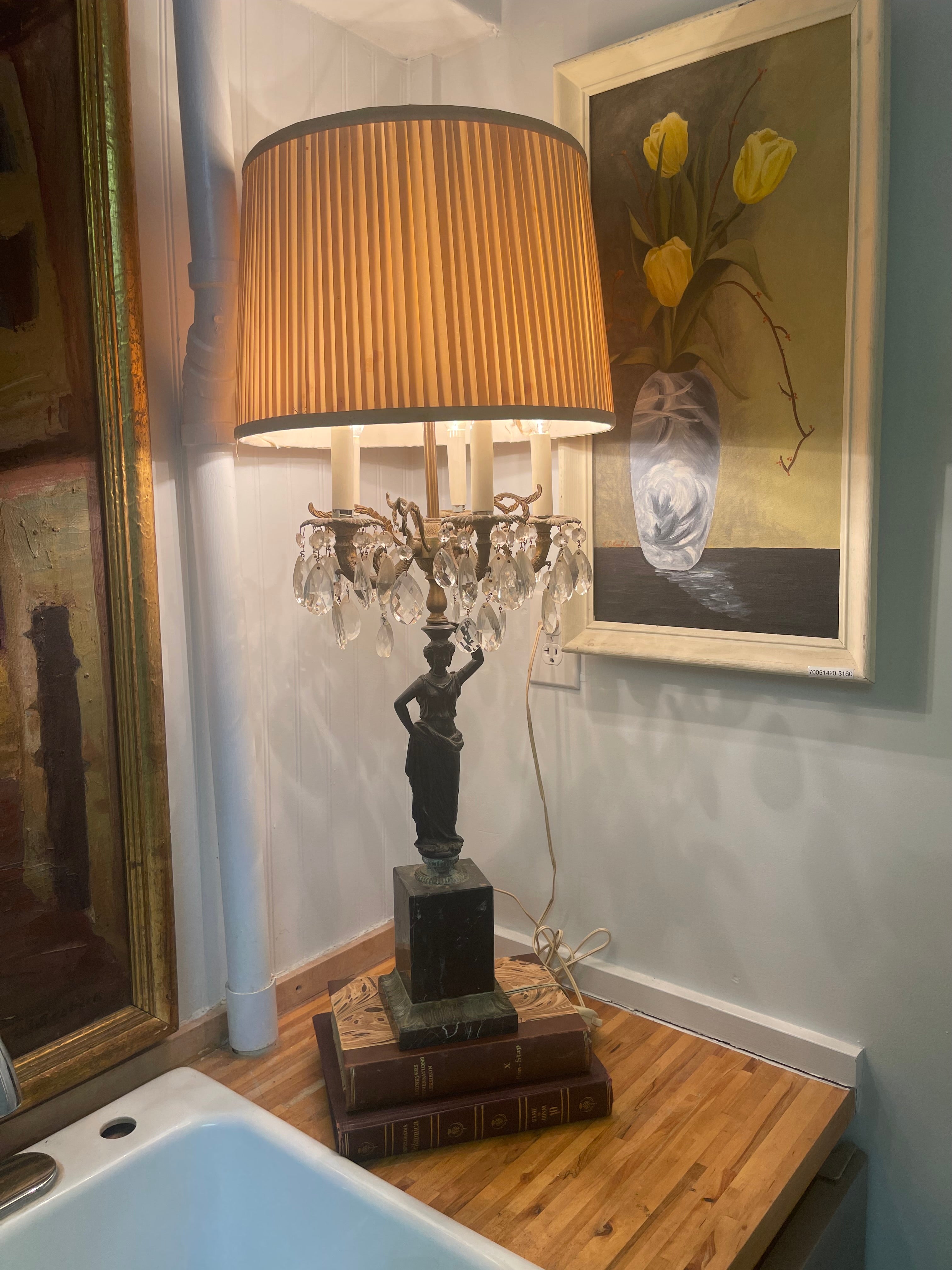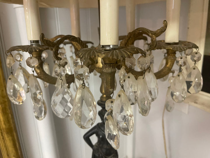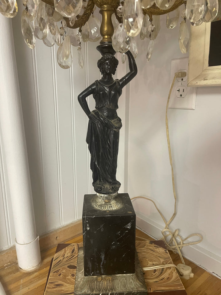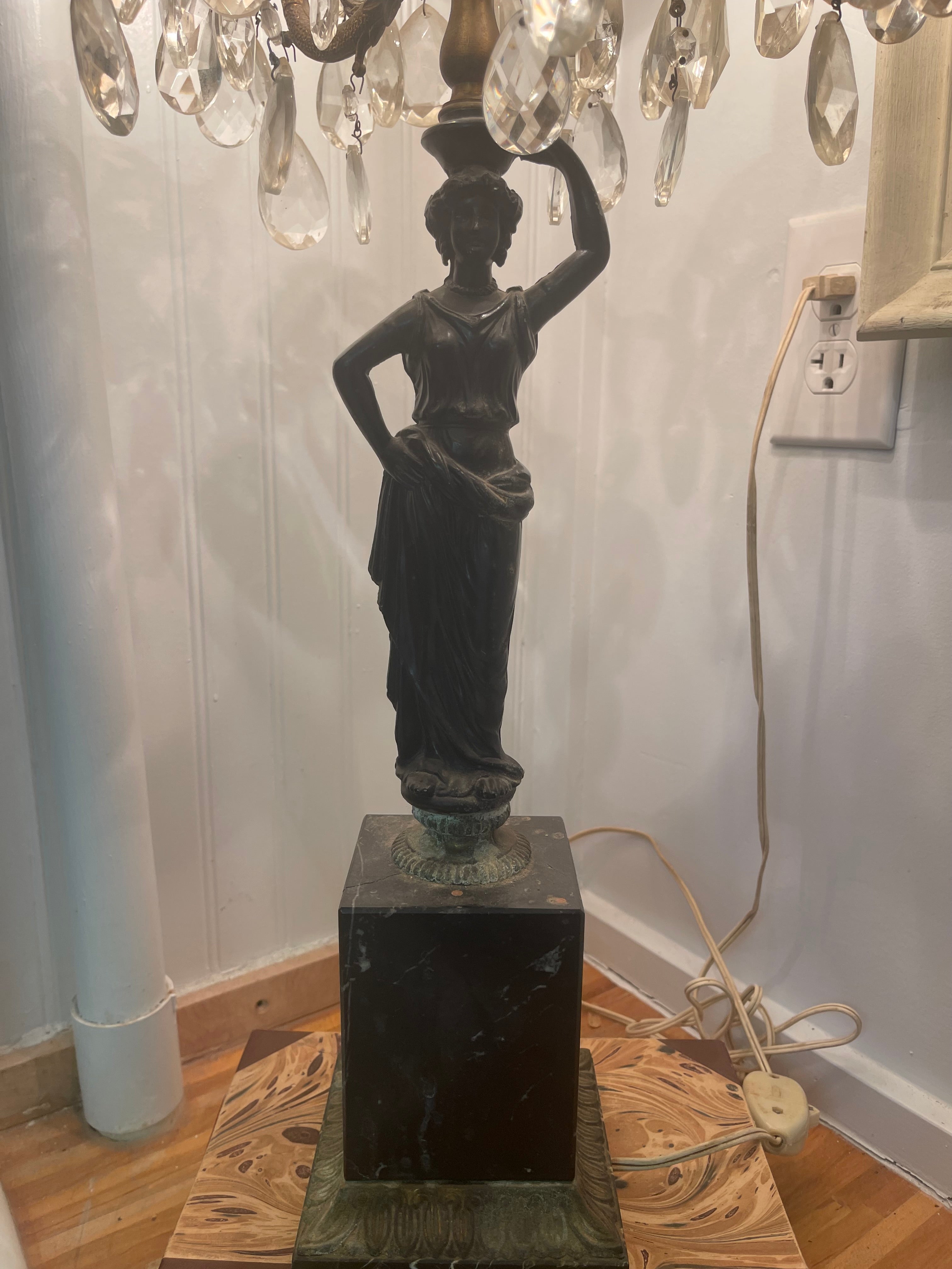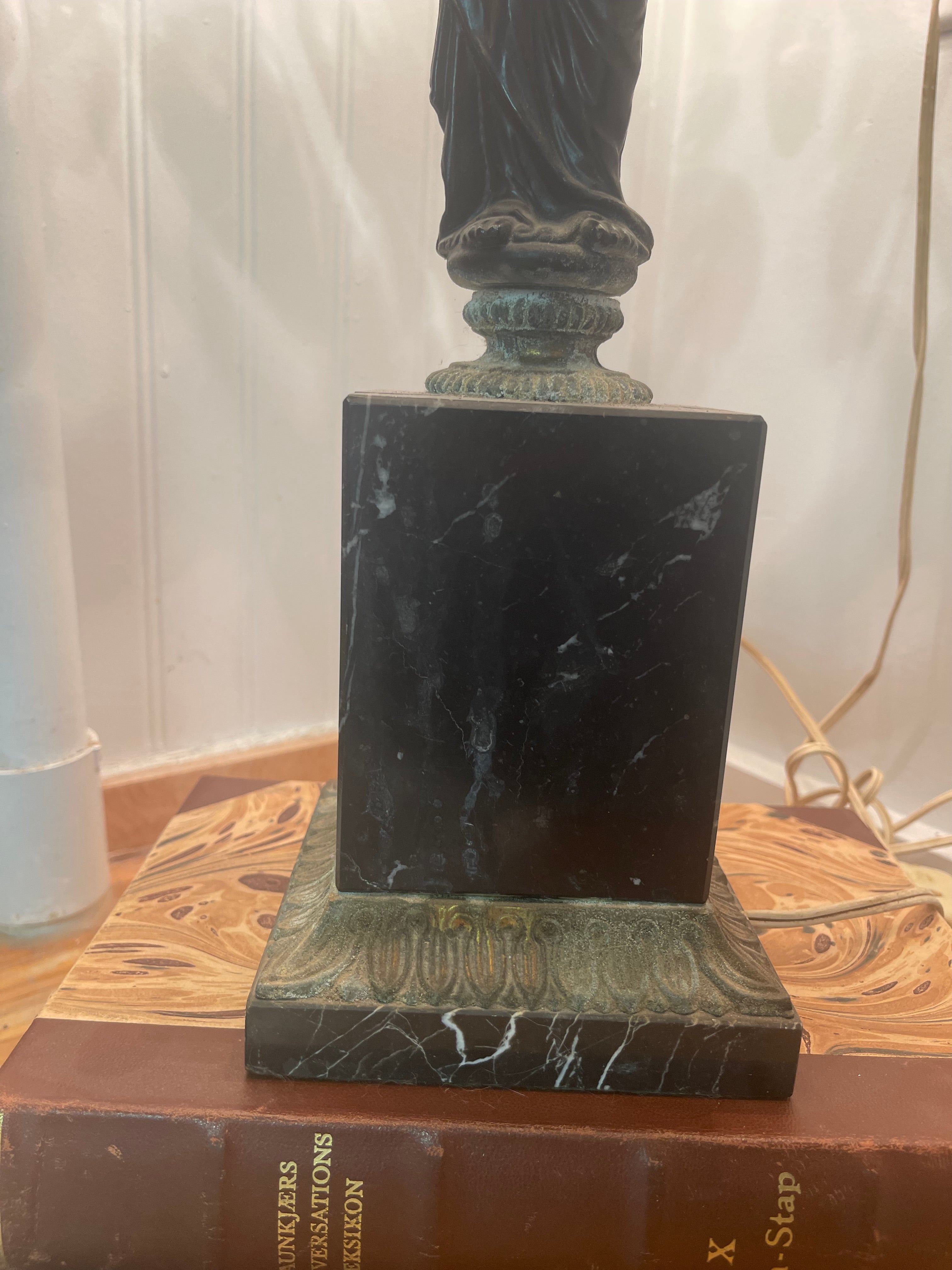 Hollywood Regency Antique Marble Lamp with Bronze Statue