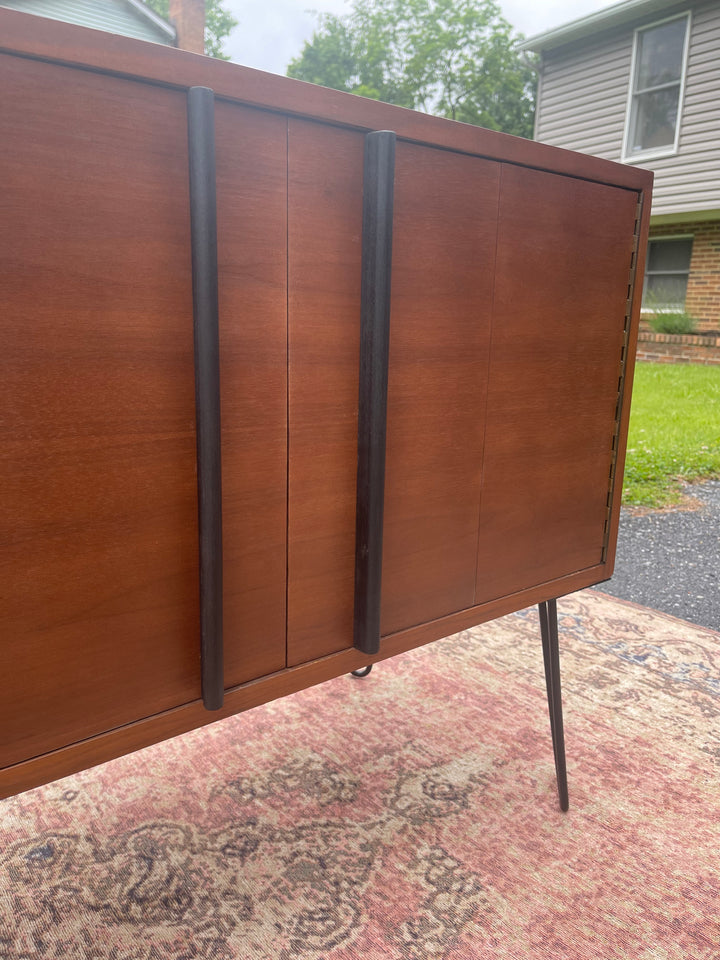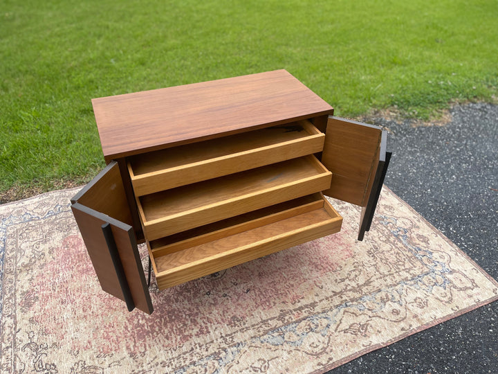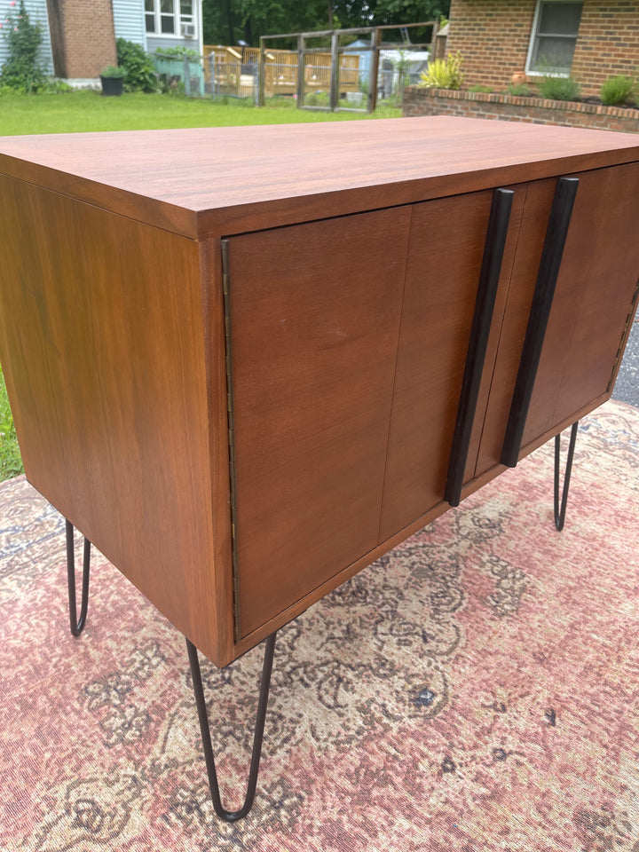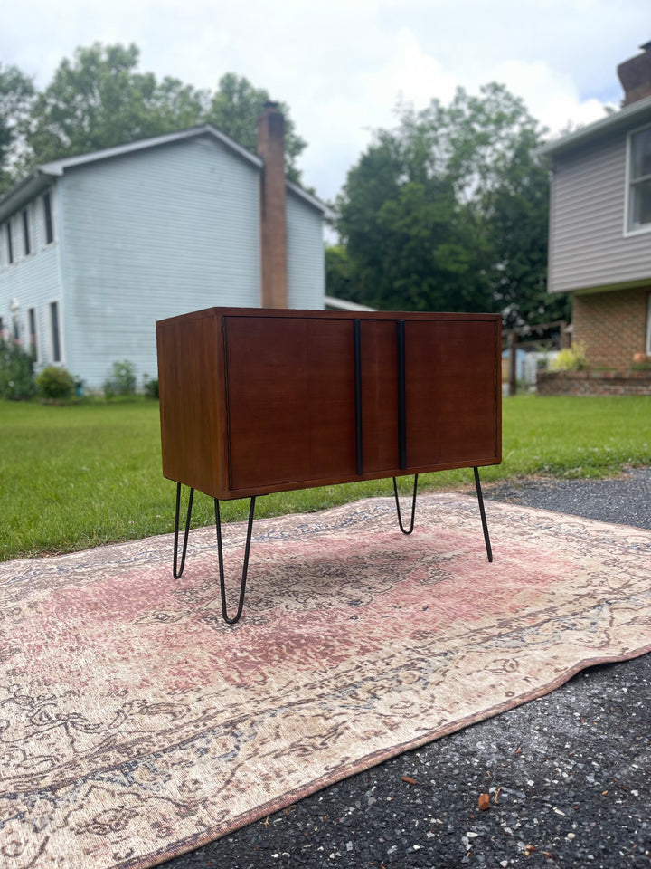 Fully reclaimed and restored MCM Walnut petite cabinet! Possibilities are endless with this piece… console table, office organization, tv stand, record player set up, and so much more!