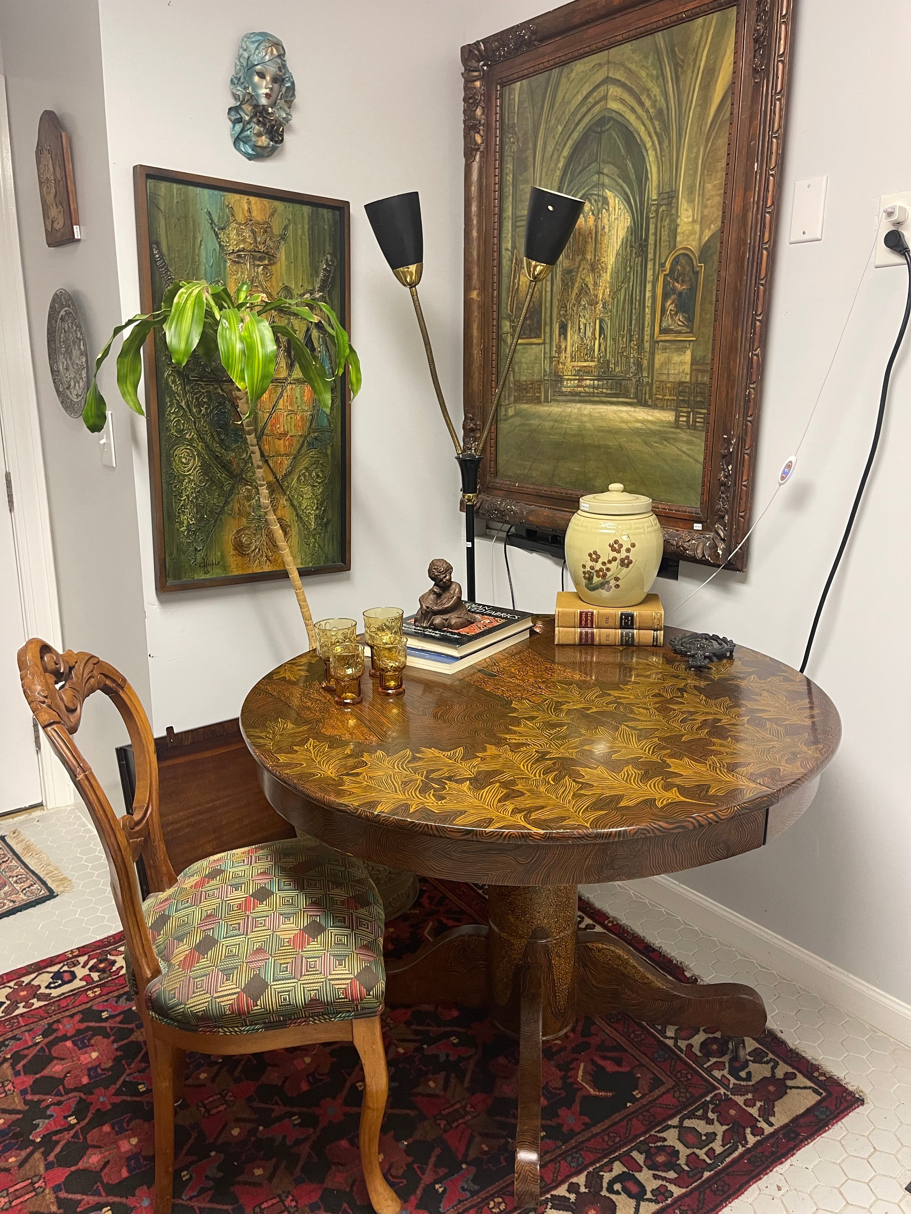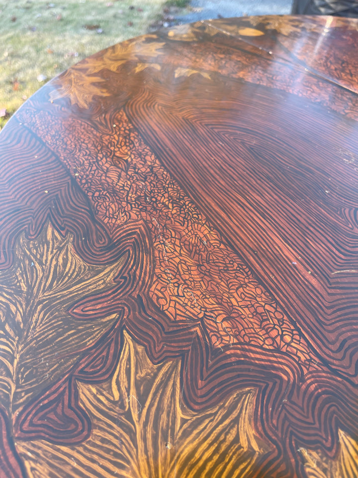 Rosewood Dining Table with Forestry Detail Painting by TL Moore