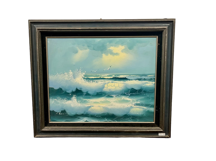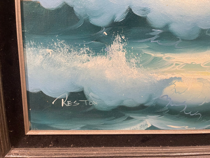 Oil on Canvas Framed Ocean Painting Signed Reston
