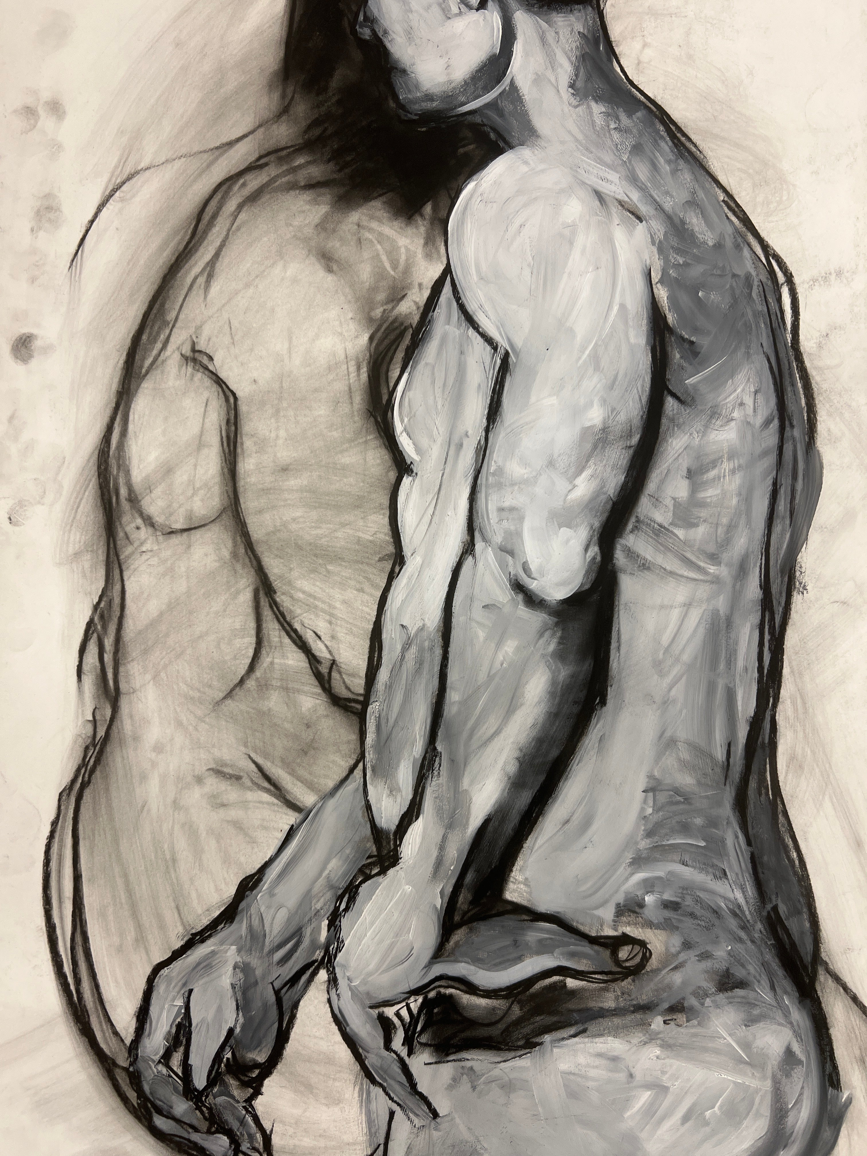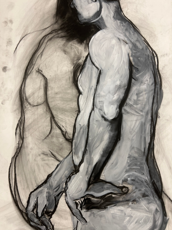 This piece is charcoal and acrylic on paper, unframed. Shipping available.