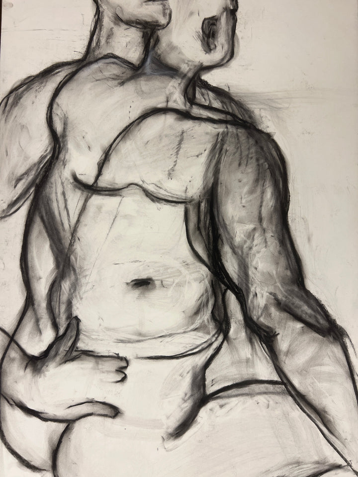 This piece is charcoal on paper, unframed. Shipping available.