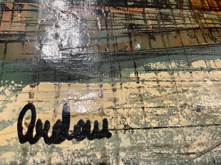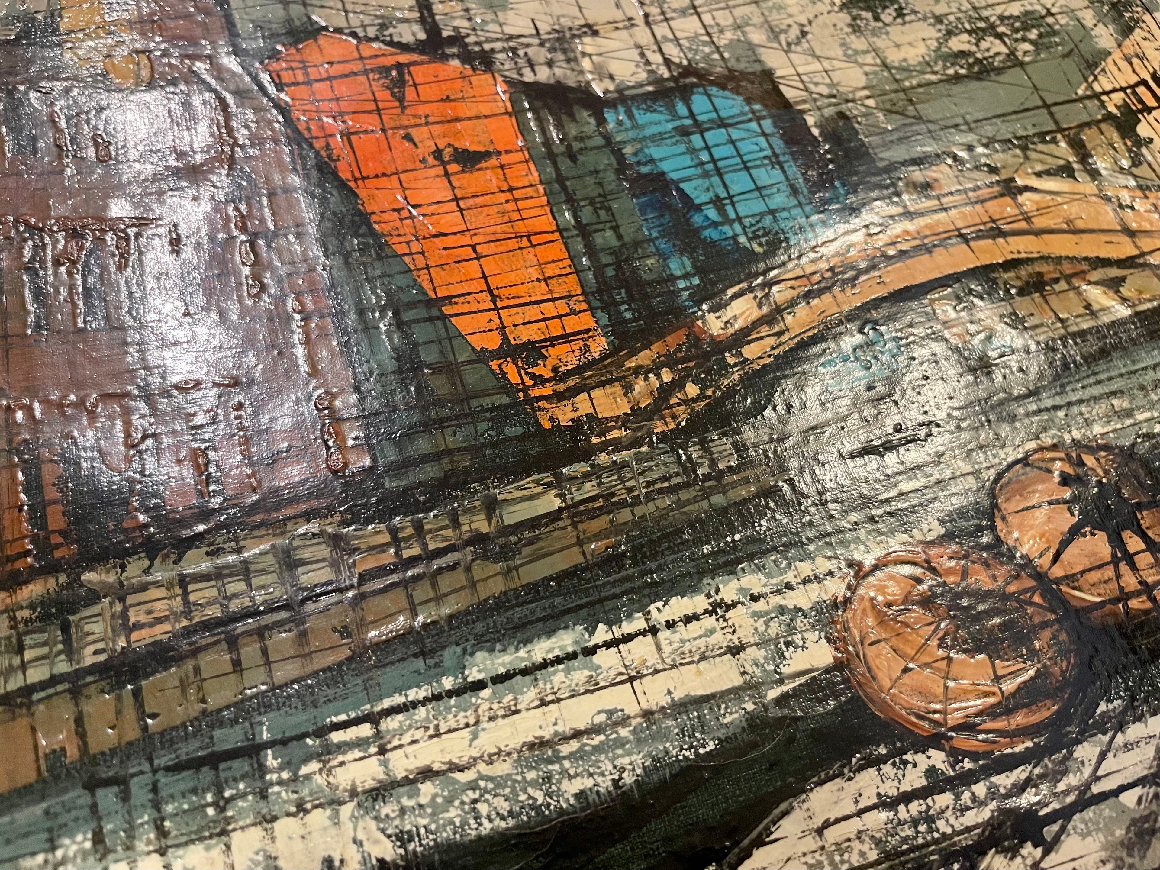 Midcentury Expressionist Signed Oil on Canvas Cityscape Painting