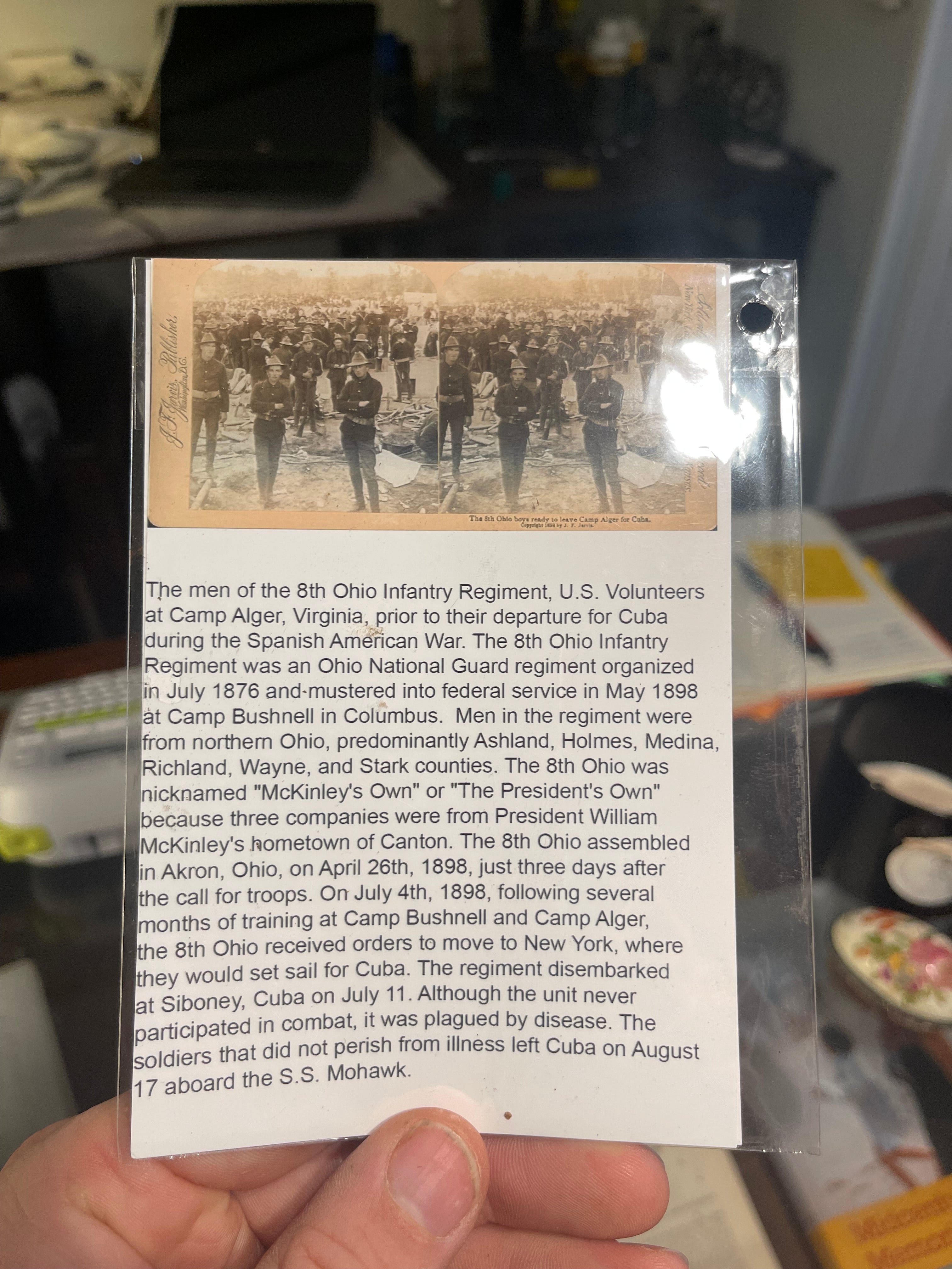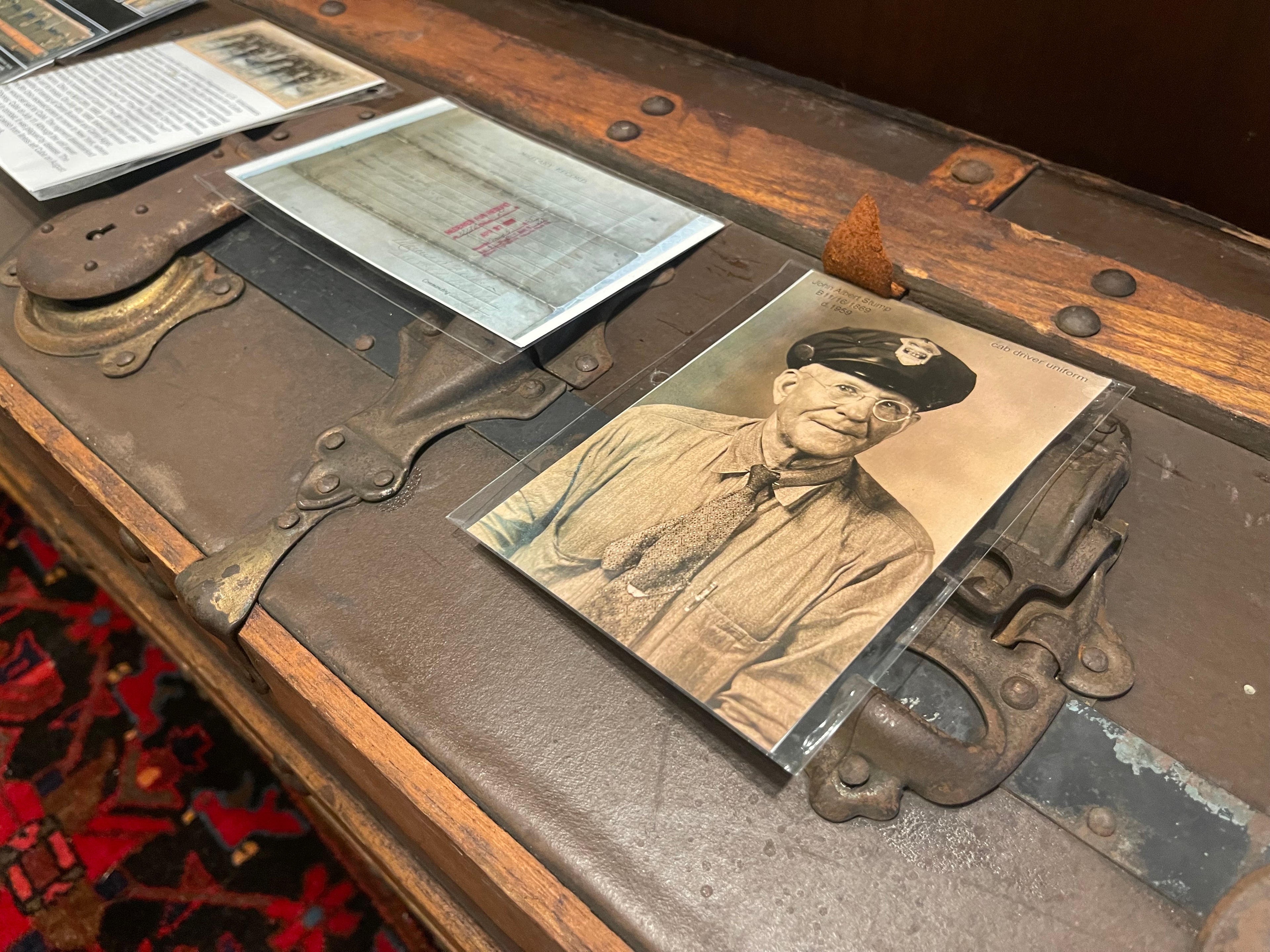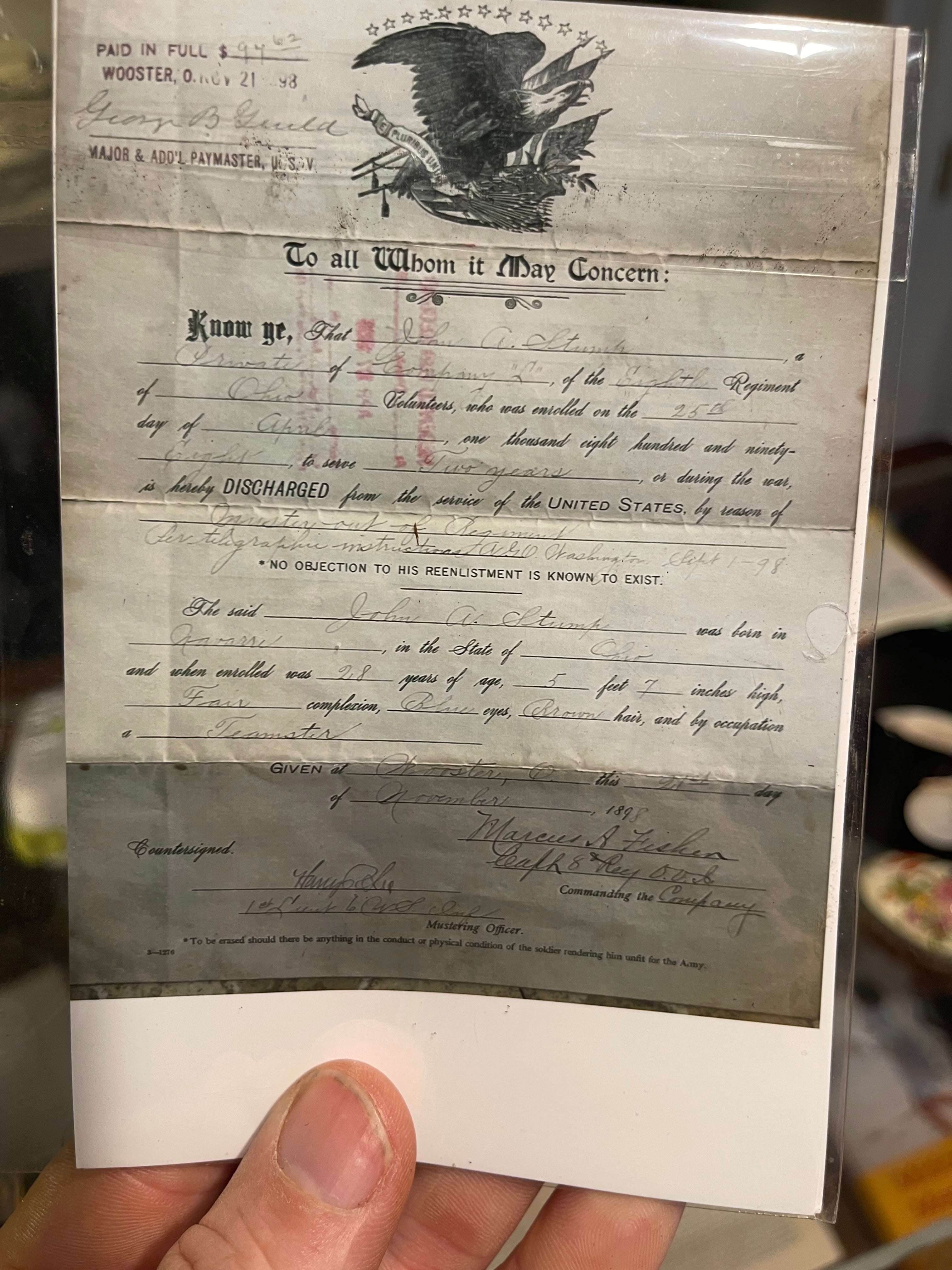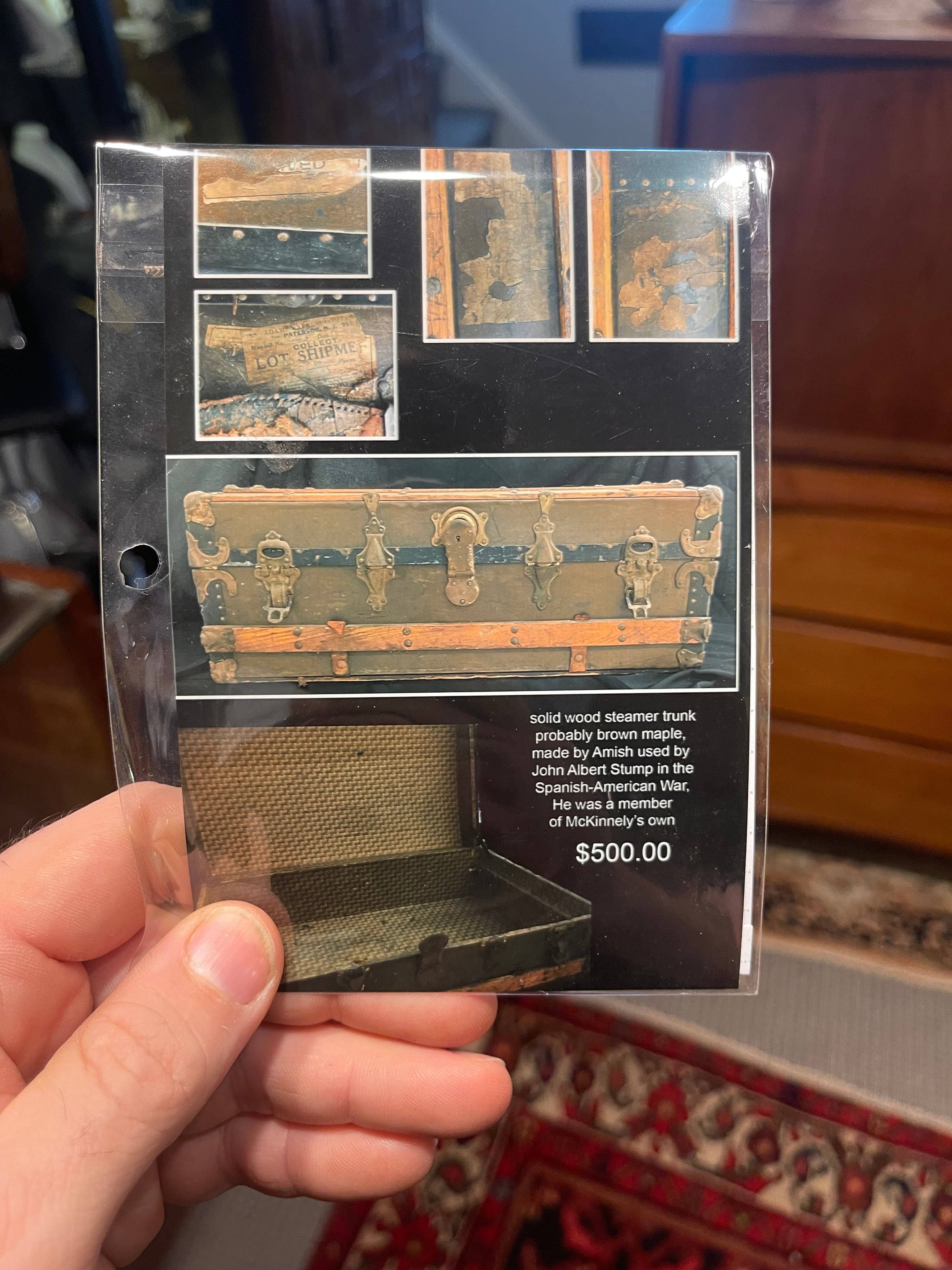 A beautiful piece of American history, this late 19th century steamer trunk has been on a journey. Former owner John A. Stump used this trunk when he served in the U.S. Military during the Spanish-American War (1898). This incredible piece of history came with extensive records, including Mr. Stumps discharge papers and death certificate, as well as background on the McKinley Regiment and an appraisal.