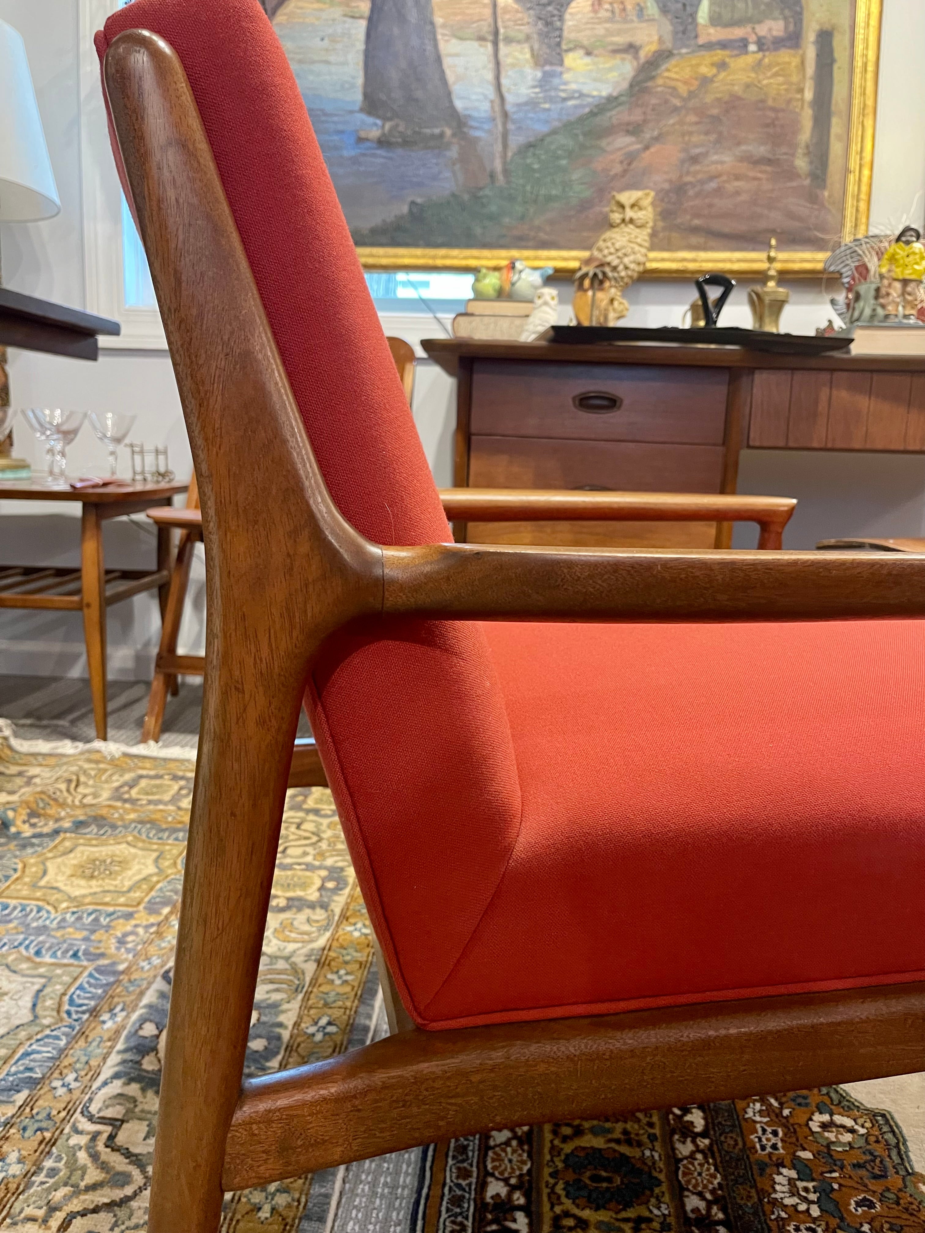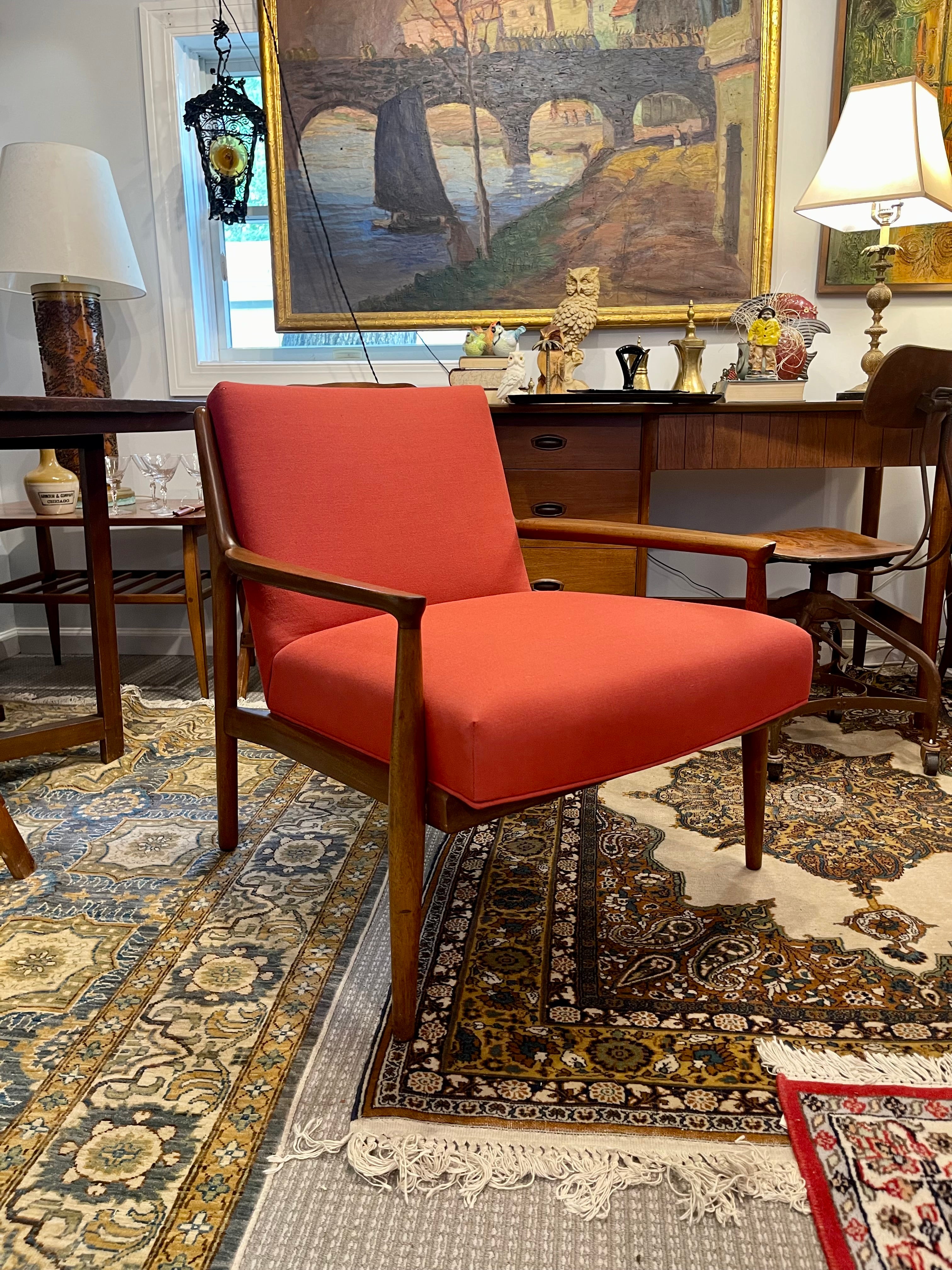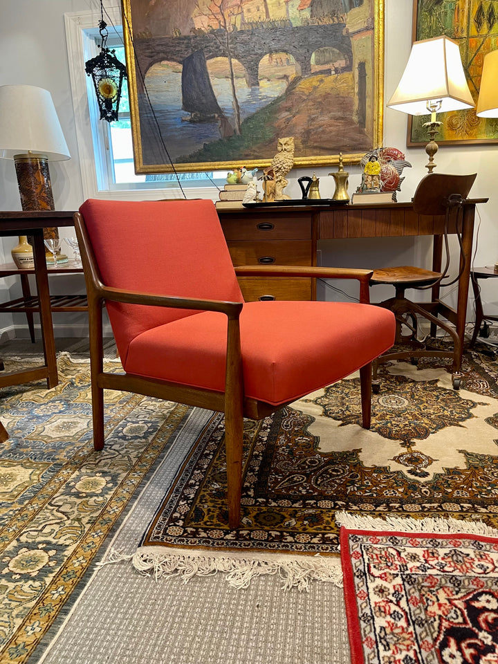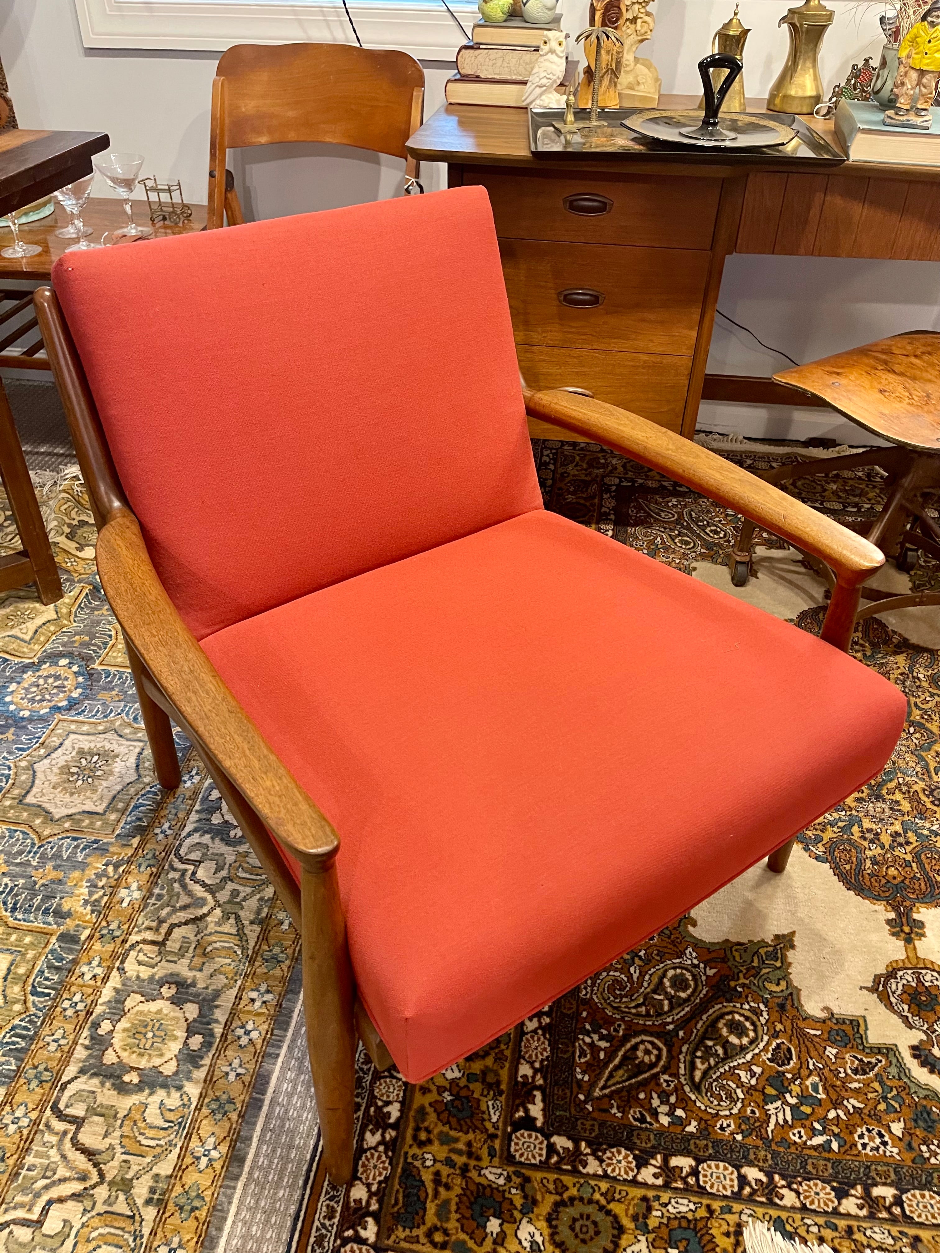 Scandinavian Modern Teak Armchair with Red Upholstery