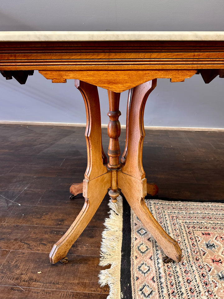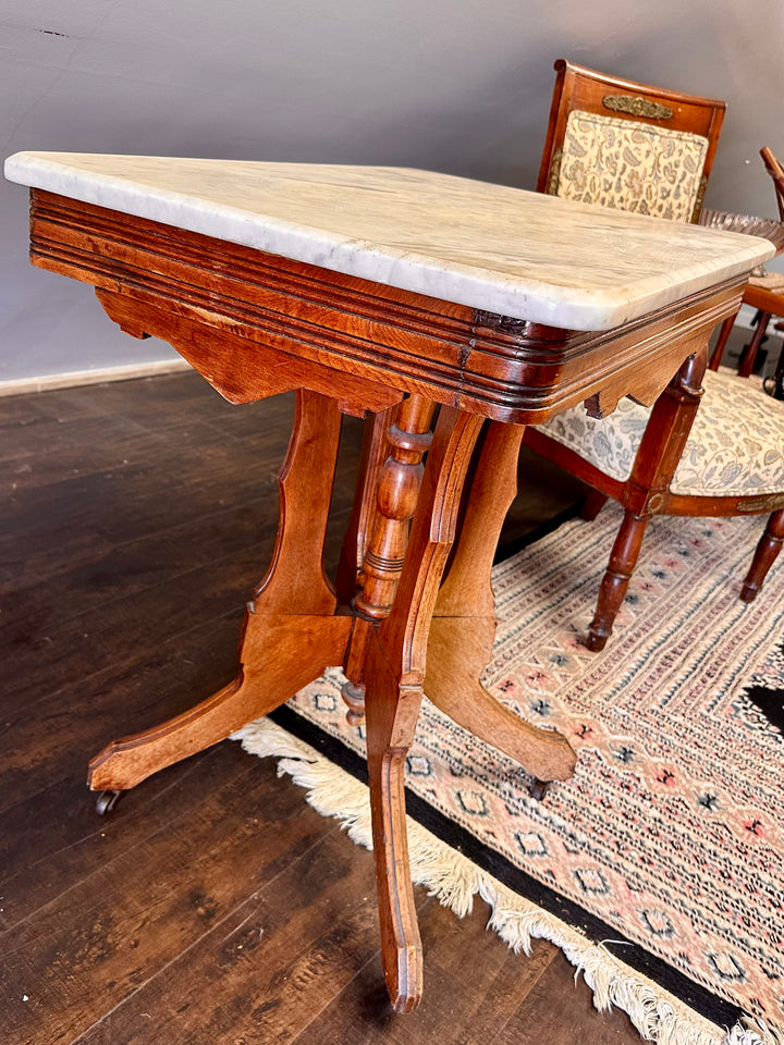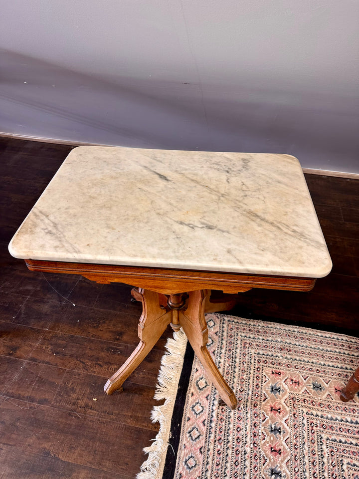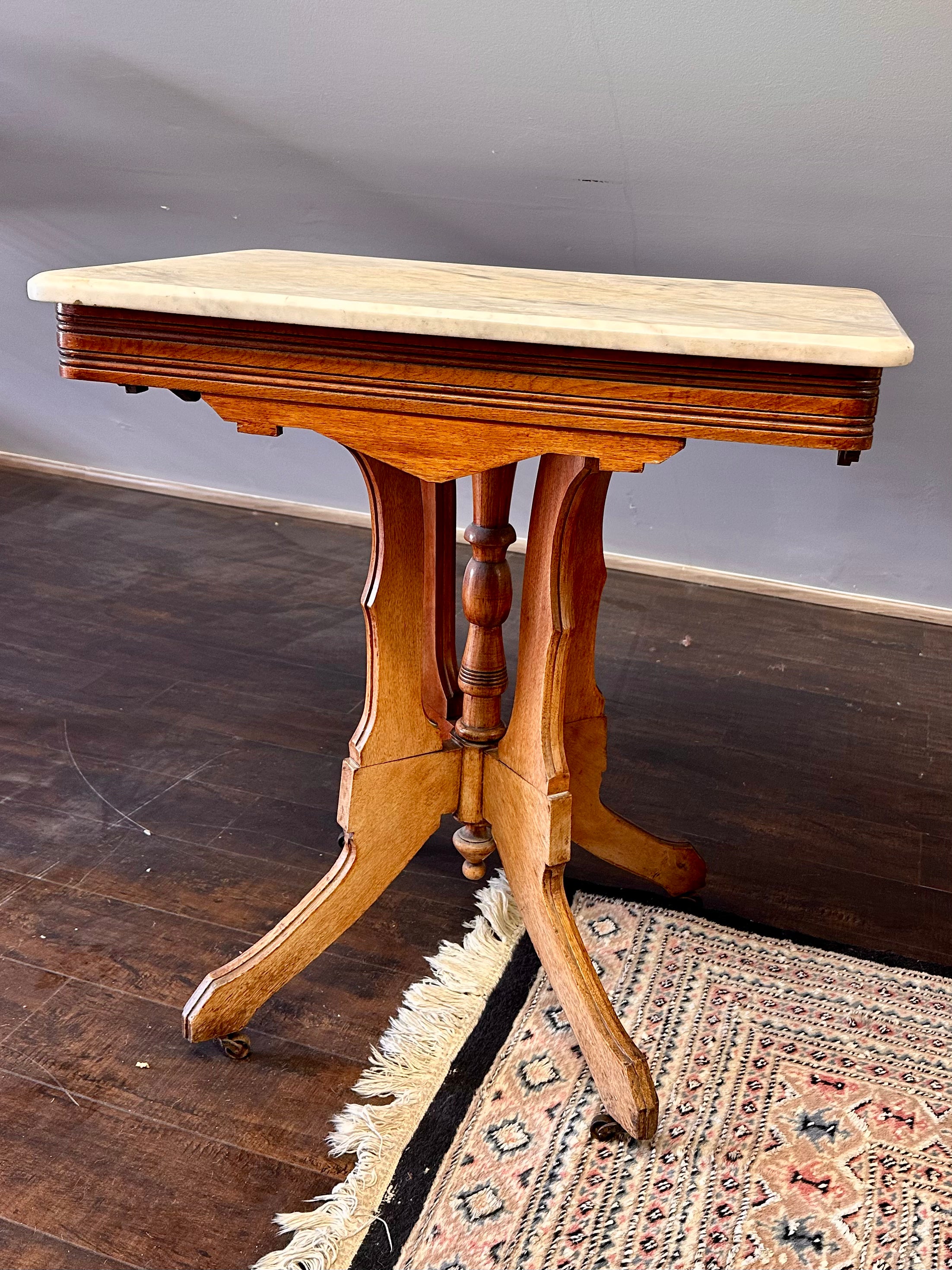 Victorian Eastlake Marble Top Side Table with classy carved details. Marble in great condition!