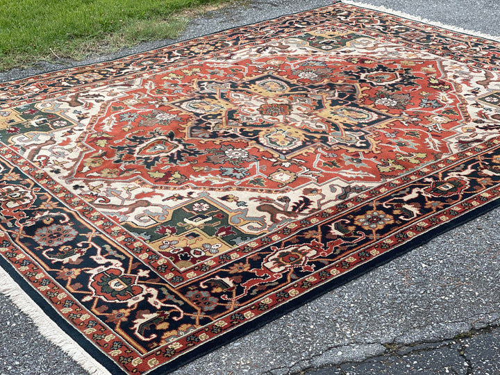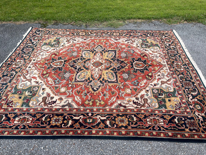 Vintage Persian Heriz Hand-knotted 100% Wool Rug