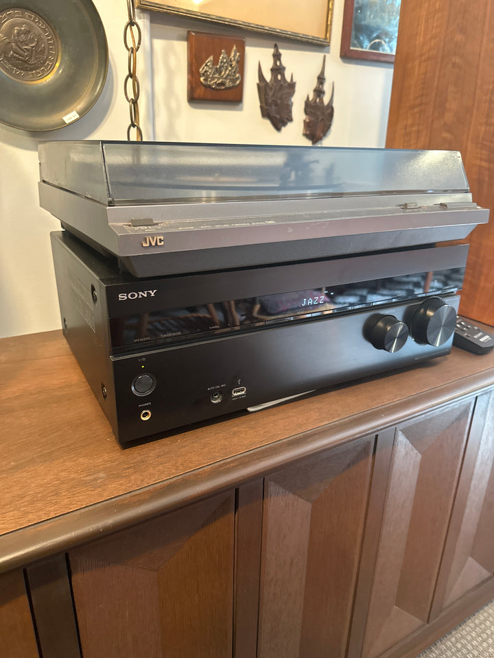 Includes turner, amp, and two speakers.