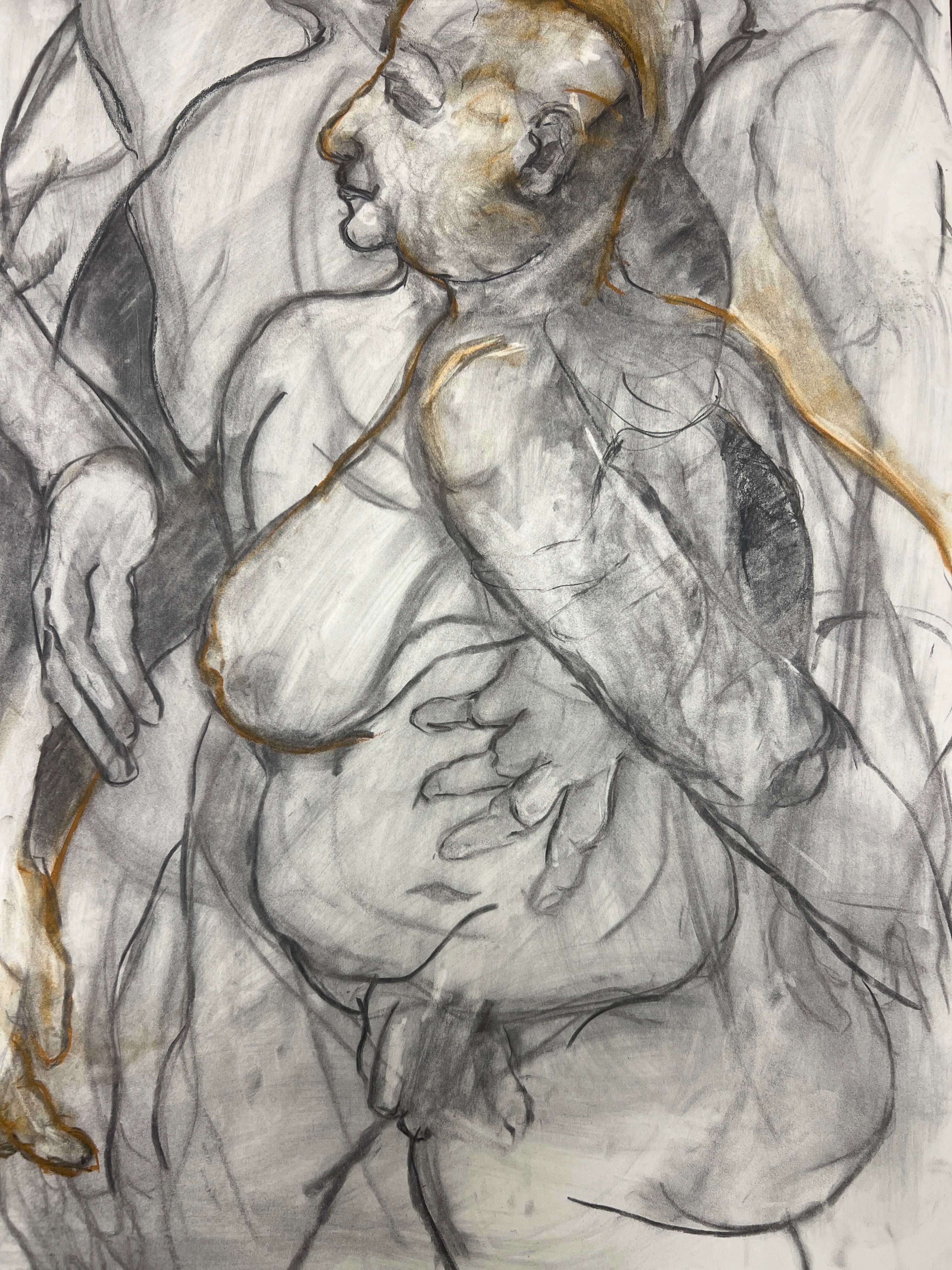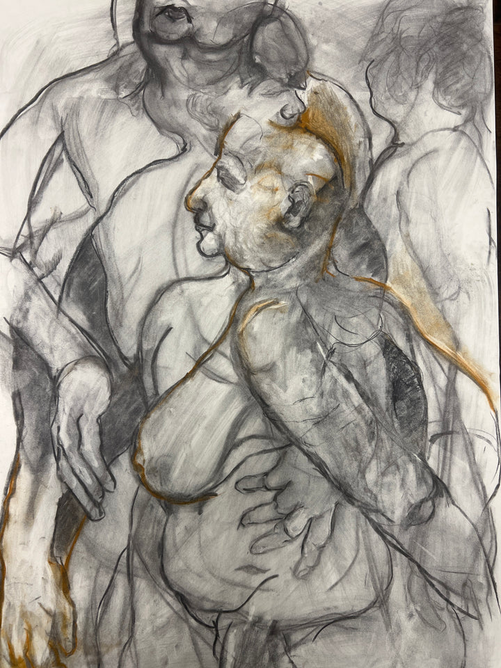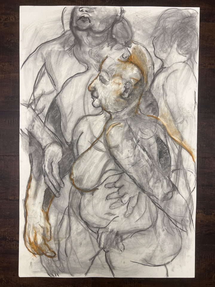 This piece is charcoal and mixed media on paper, unframed. Shipping available.