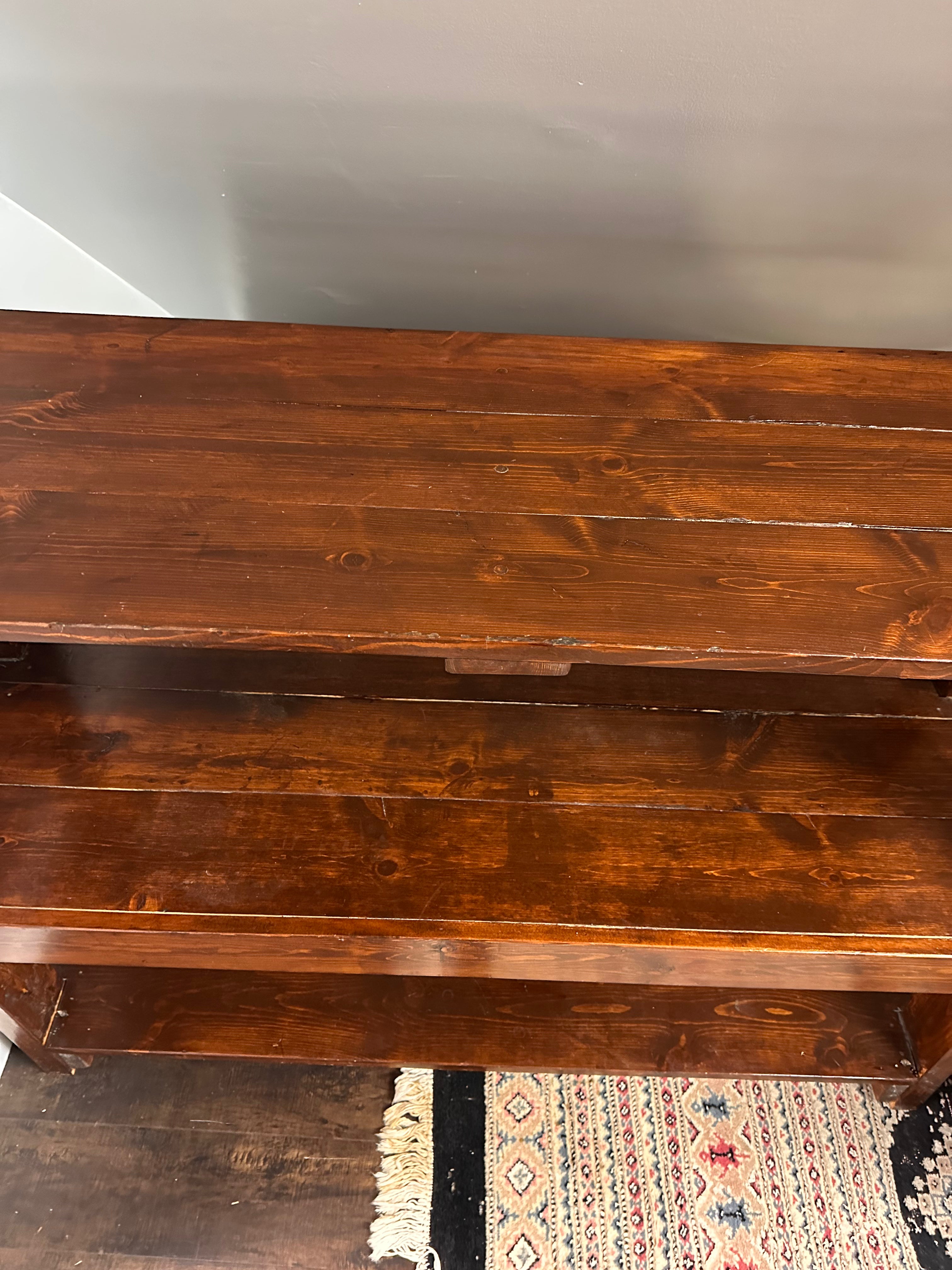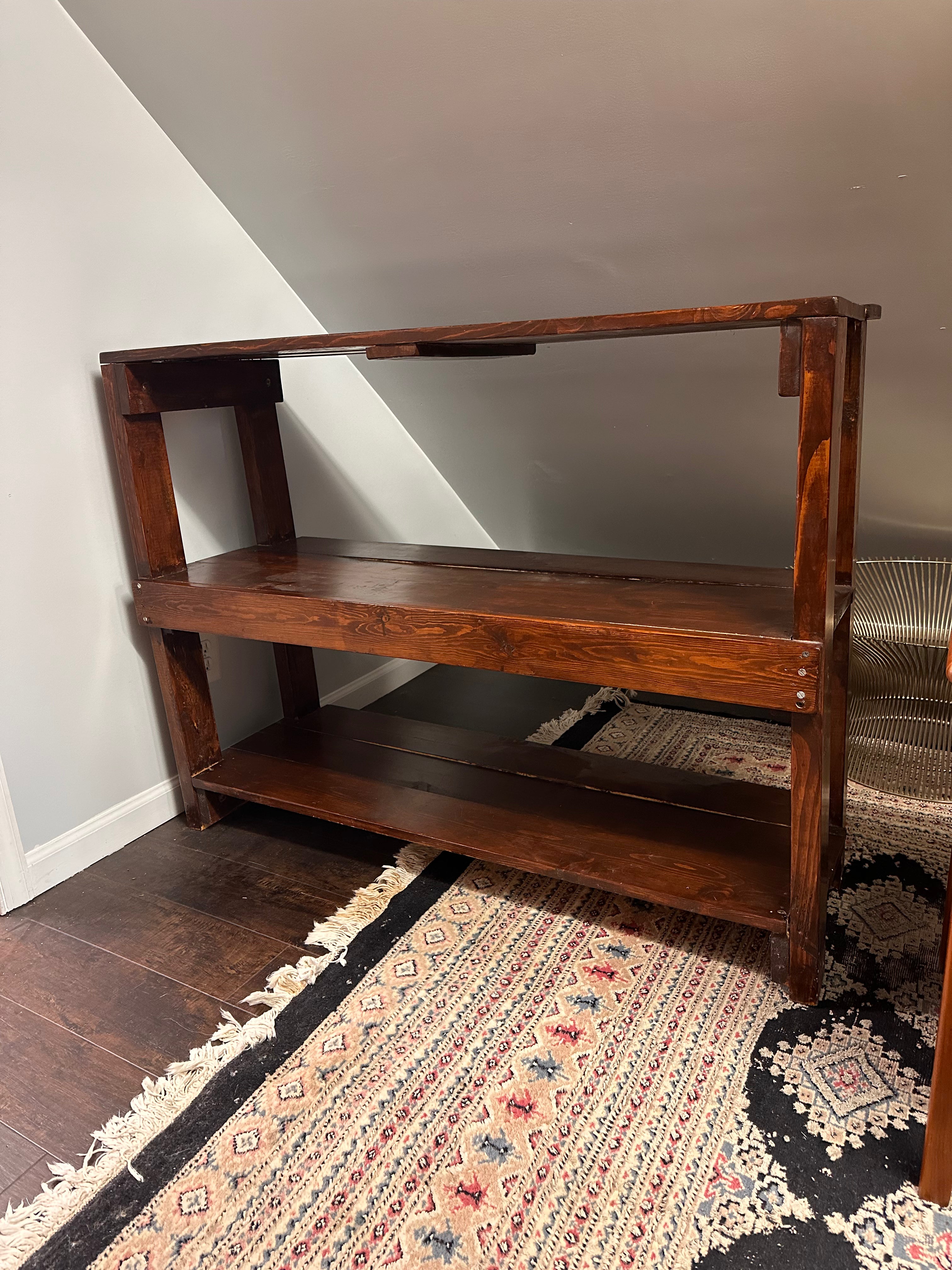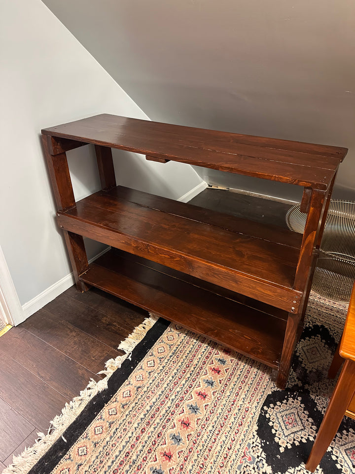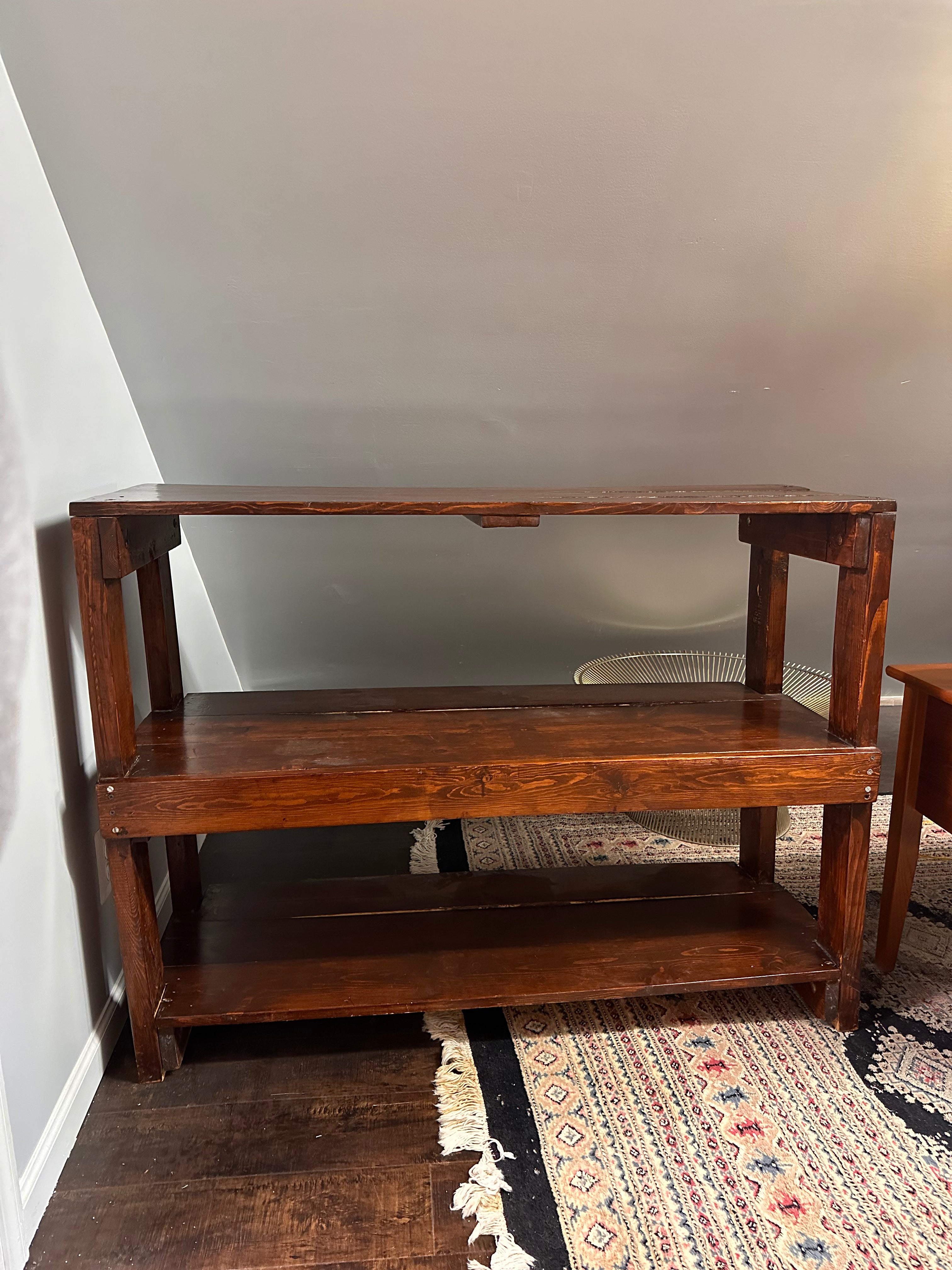 Sturdy workbench shelf with three pine shelves.