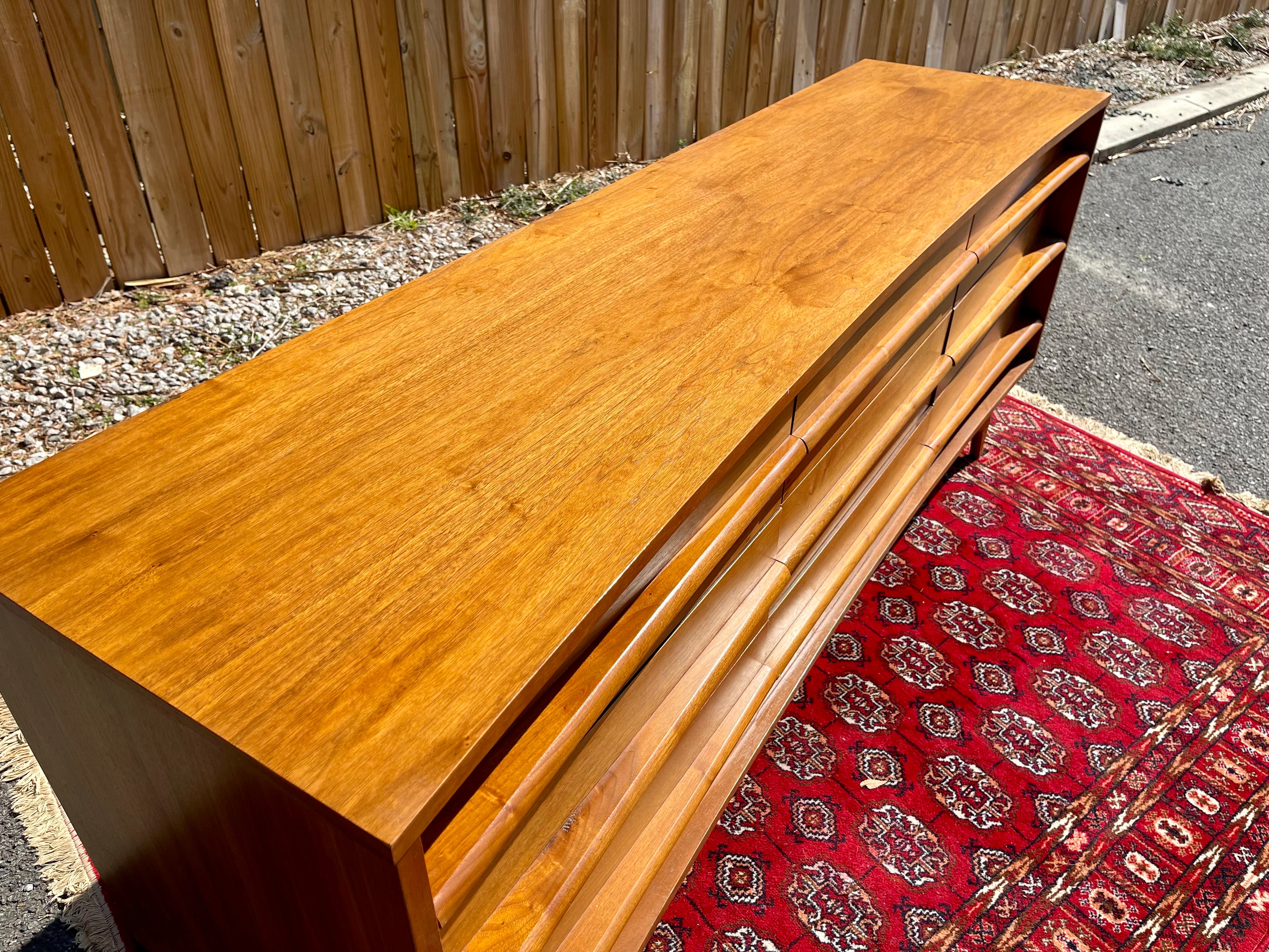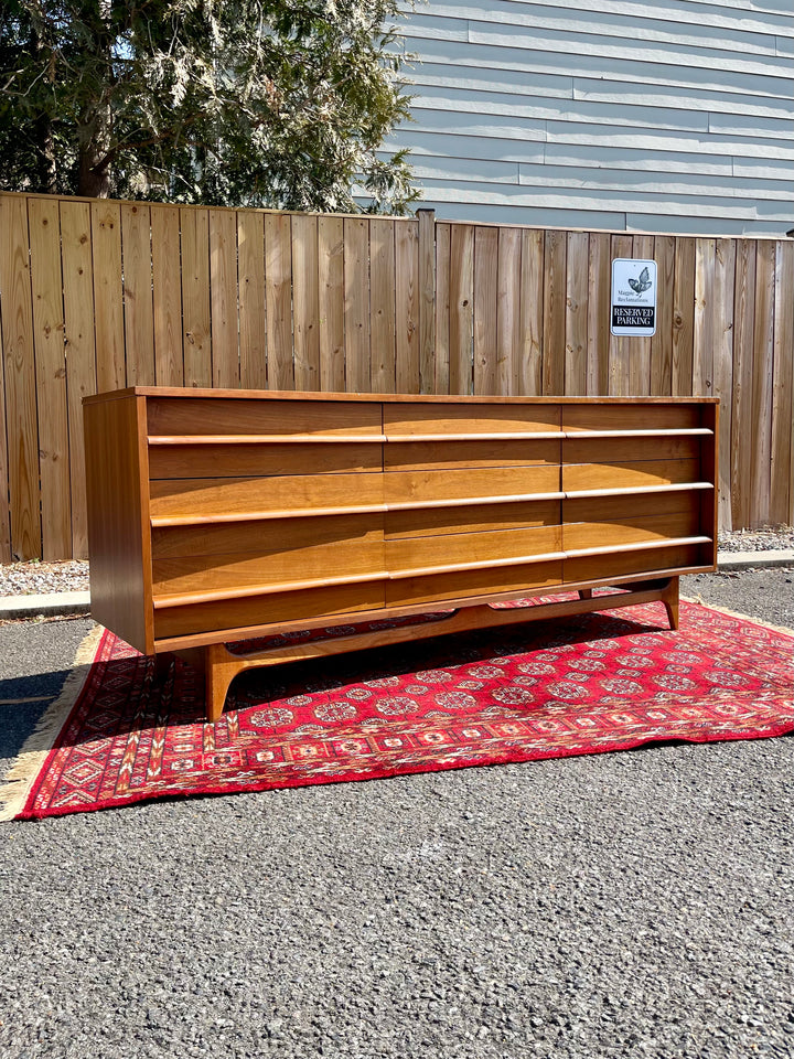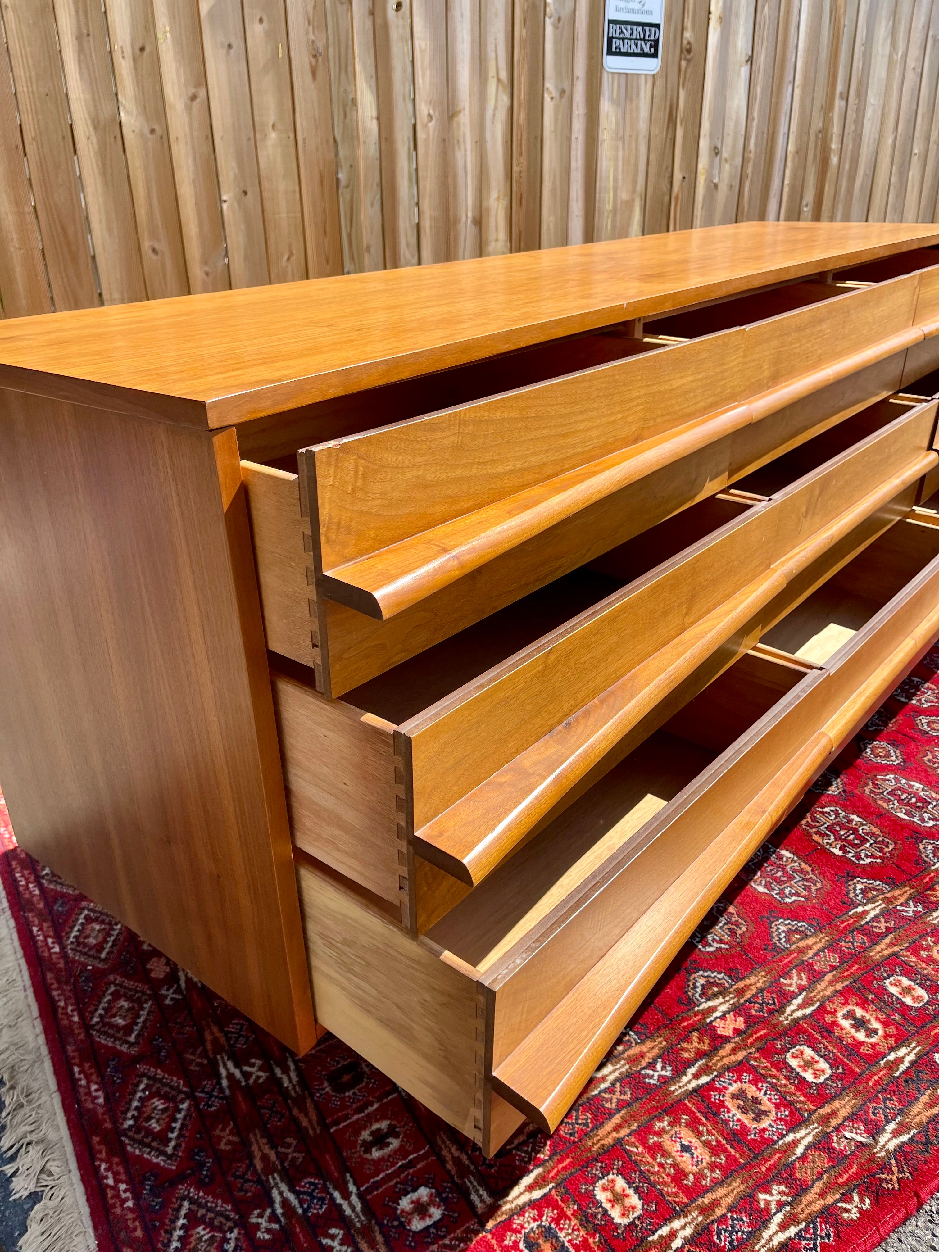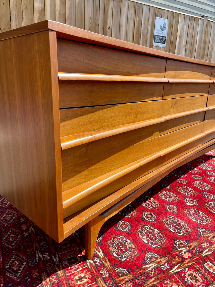 Young Mfg Co Midcentury Modern Nine Drawer Walnut Dresser